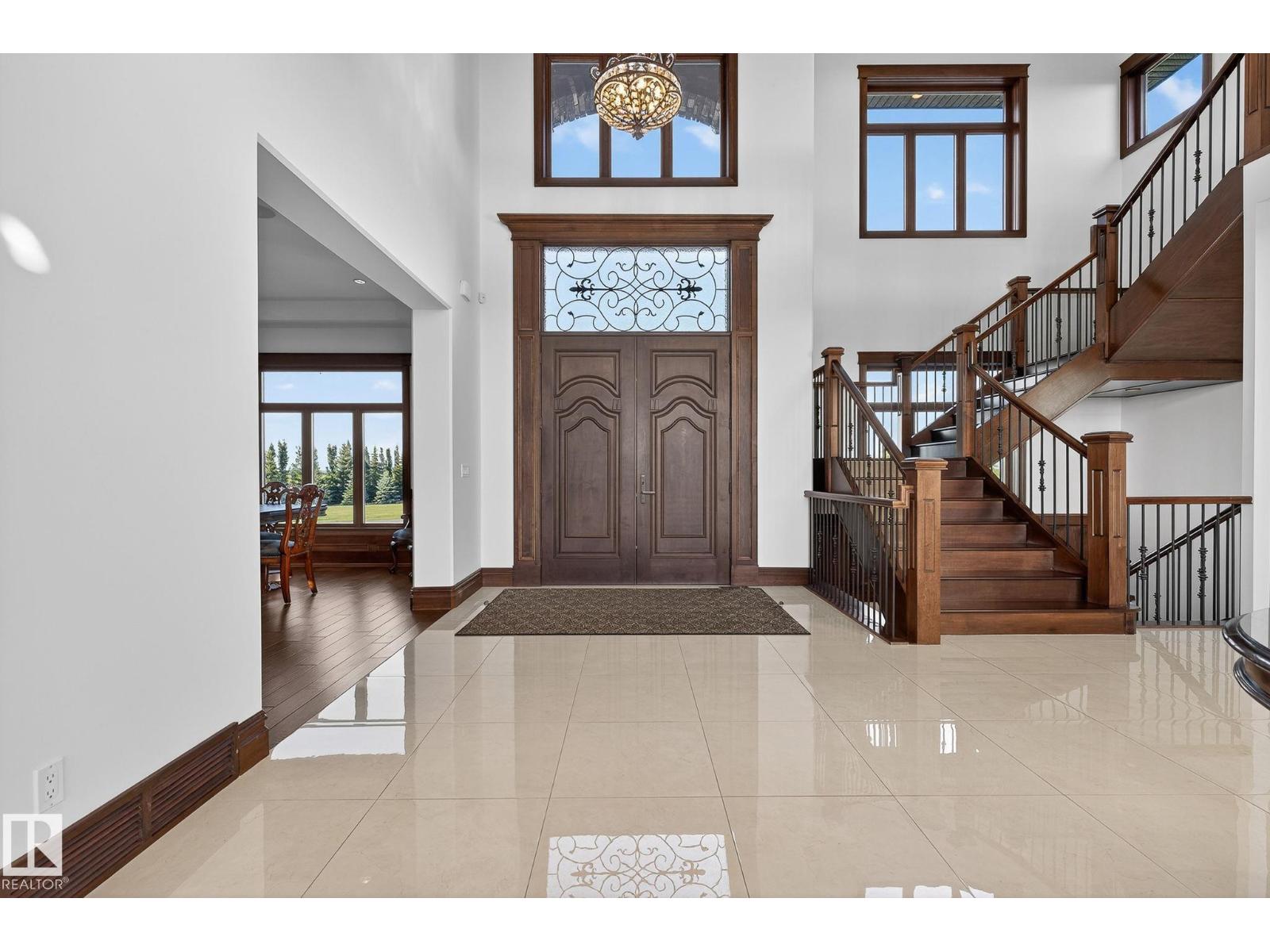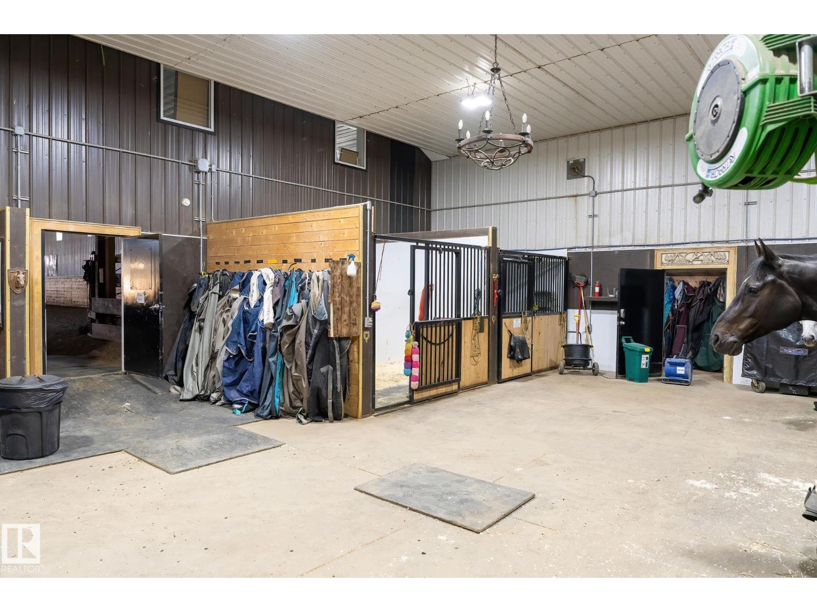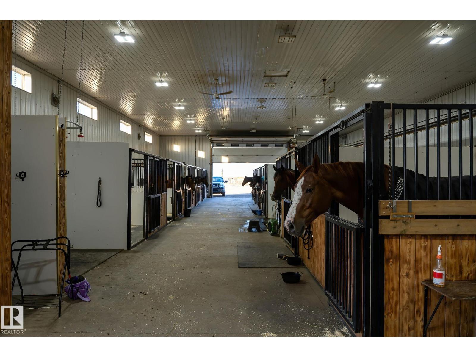 This is a rare opportunity to own a property that truly has it all. Situated on 146 beautifully rolling acres, this estate blends luxury living with premier equestrian amenities, just minutes from St. Albert and Edmonton. The custom-built 5680 sqft home wows you from the second you drive up. Soaring ceilings, expansive windows and breathtaking views from every angle. The gourmet kitchen, grand living areas and multiple fireplaces create an inviting atmosphere for both everyday living as well as entertainment. The walkout basement offers additional living space, a games room and direct access to your stunning yard. Equestrian enthusiasts will be impressed with the world-famous Golden Oaks horse barn, indoor riding arena, and multiple corrals. Whether you're training, boarding, or simply enjoying your passion for horses, it doesn't get better than this. The land features a blend of pasture, treed areas, and open spaces, offering endless possibilities for recreation, agriculture, or future development. (id:63190)