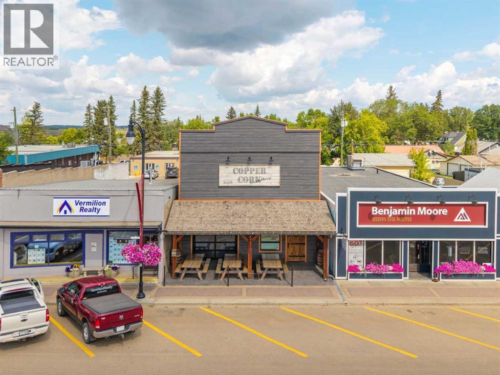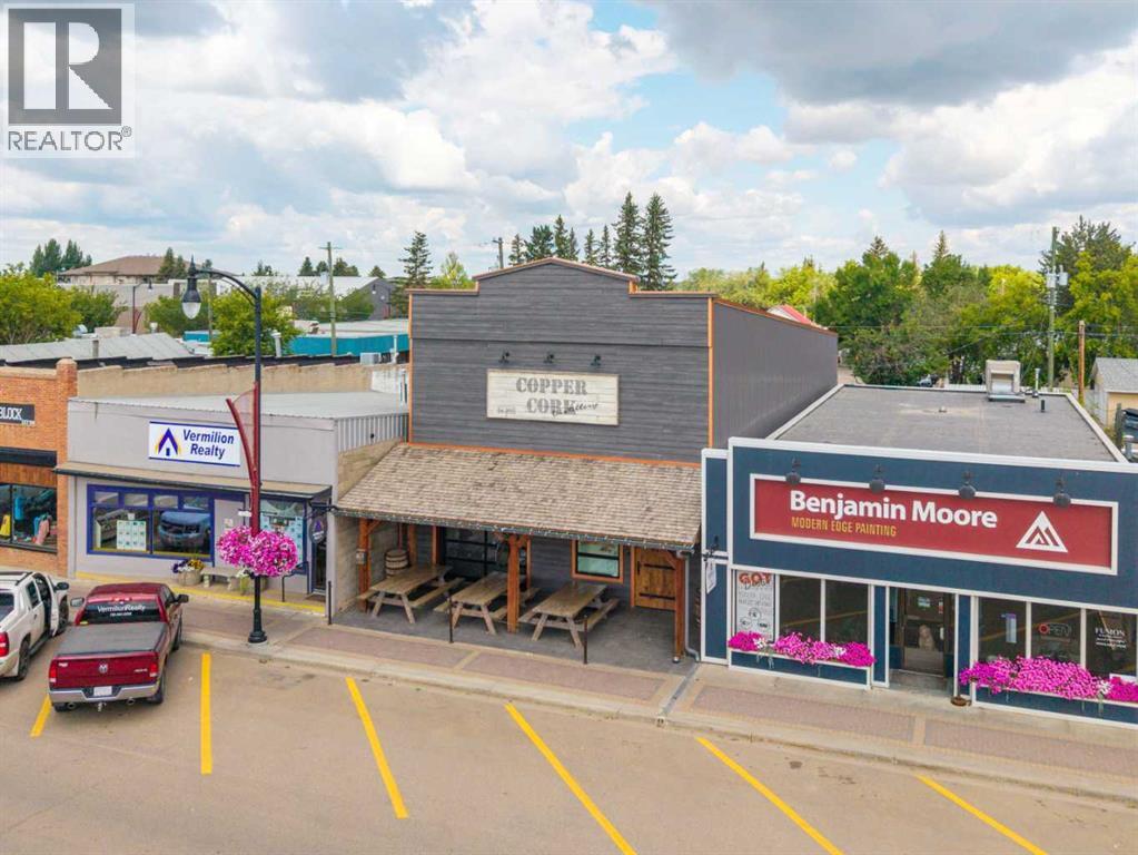 Incredible Business Opportunity. The Copper Cork Distillery situated in the Heart of Vermilion, AB. Built in 2018, the company has since attained a highly recognizable business with a strong brand identity. Lock, Stock, and Barrel; a completely turn-key operation with all inventory and assets included within list price. List Available: 800L Copper Still, delivery truck, all equipment etc. No expenses spared upon building; stamped concrete, rooftop HVAC unit, in-floor heat, PRIME location choice, oversized doors, as well as heavy-duty tables/chairs etc. Top of the line. The 2,240 SQ FT building has a capacity of 87 patrons (with patio included.) A gem of a building and the only distillery in-town. (id:63190)