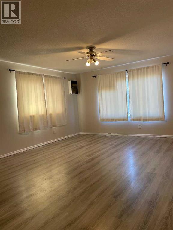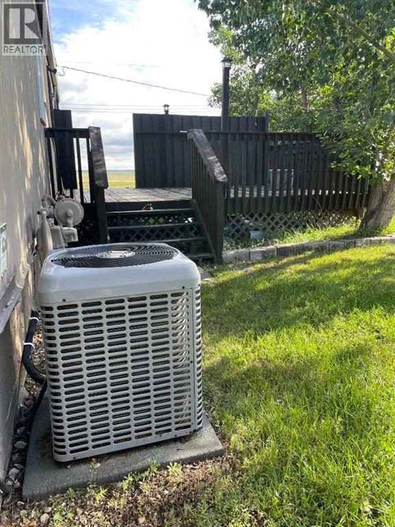 Enjoy quiet living in the community of Veteran. 1hr(+/-) from Stettler and Wainwright. Escape the city and visit East Central Alberta where you can experience affordable living, lower taxes, and less crime. This listing is setup with a large landscaped lot backing onto open fields, extensively renovated manufactured home with large addition, two decks, air conditioning and more. Coming into the home you are greeted in the large entryway, with plenty of closet space and room that wraps around to the full laundry area with newer flooring, paint and fixtures. The living area is open concept flowing seamlessly through the dining room/kitchen with newer laminate flooring throughout, updated cabinetry, backsplash and large eat-in island. Moving towards the bedrooms there is a second living room space with built in storage and the East entryway. The 4pc bathroom has been fully renovated with new vanity, fixtures, paint and flooring. This home is almost 1500sqft with 2 walk-in closets in the master-bedroom, and 2 additional bedrooms over 120sqft each. (id:63190)
