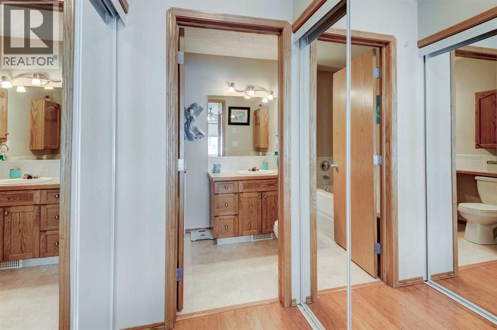 Welcome to 3 Strathmore Lakes Bay – a beautifully maintained half-duplex bungalow in Strathmore’s sought-after adult community. Offering 1,115 sq. ft. above grade with a fully developed basement, this home blends comfort, style, and functionality. Step inside to find stunning hardwood flooring, a vaulted ceiling, and an open-concept layout filled with natural light. The kitchen and living area feature updated lighting and flow seamlessly to both a front patio and a rear patio with peaceful views of the green space. The main floor offers a spacious primary bedroom with ensuite, a 3-piece main bath, a versatile office/den, and the convenience of mudroom & laundry just off the double attached garage. The fully finished basement includes another generous bedroom, a large rec room, a full bathroom, and a substantial storage room. Immaculately cared for and move-in ready, this home has been updated with the following: new furnace 2019, new hot water on demand system 2021, new water softener 2021, new storm doors 2023, main level professionally painted 2020, main level bathroom renovated 2024, new blinds in kitchen/living room 2024, new kitchen flooring 2025, new kitchen lighting 2025, new garage door opener 2024, new concrete pad 2025, new railing at front of house 2025, new kitchen faucet 2025. All of the major, important upgrades have been done! Perfect for those seeking a relaxed, low-maintenance lifestyle in a welcoming community. Book a showing with your awesome Realtor today! (id:63190)