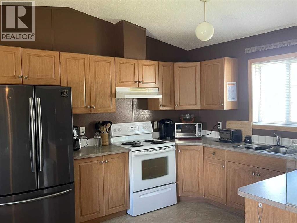 Welcome to this well maintained manufactured home built in 2007, offering comfort & convenience in a peaceful setting. 1,152 sq.ft. residence features a bright & open-concept layout that seamlessly connects living room, dining area & kitchen making it ideal for both family living & entertaining. The home offers 3 spacious bedrooms & 2 full bathrooms. The kitchen comes equipped with all the essentials: fridge, stove, dishwasher with the added bonus of a washer, dryer & deep freezer in the separate laundry room. For those looking for a move-in ready option, some furnishings such as beds, a leather couch & loveseat, TV's & dining furniture may also be included. Step outside to enjoy two decks, a large front deck perfect for gatherings & a cozy back deck well suited for a bistro set. The yard includes two handy sheds for extra storage & a front concrete driveway with space for two vehicles. Situated in a quiet, mature cul-de-sac close to splash park, this property offers a wonderful blend of tranquility & convenience. Listed at an attractive price, this home presents an excellent opportunity for first-time home buyers, downsizers or anyone looking for a welcoming space in a family-friendly neighborhood. (id:63190)