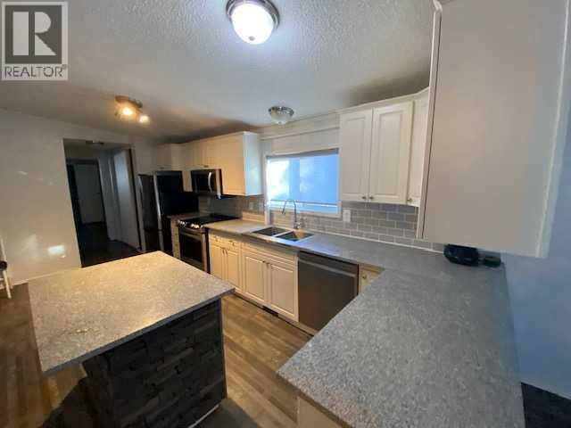 This is a home with options for all - the home is a 2004 1520 sq ft home with 3 bedrooms and 2 full bathroom, laminate floor, kitchen with granite counter tops, large island with storage or breakfast bar, newer appliances plus an abundance of storage. Open floor plan with the kitchen and living room having great flow and room to maneuver and one of the 4 piece bathrooms gives great access for the 2 bedrooms. There is a large veranda style deck - covered and private for your evening family and friends visits, AC for the occasional hot summer night and a large powered and insulated 24 X 14 man cave with a small wood burning stove and small electric heater for the cooler winter nights making it a great poker room any time of year. In addition to all this you also have a 10 X 12 insulated shed that will be great for general storage. The home is close to all the big box stores and other business located on the west hill so vehicle access isn't critical. Another option is for those who are looking for a home on a lot or an acreage but due to the high cost to build haven't been able to find anything. This home can be moved out of the park (with proper notice ) and be ready to set up on your own land quite easily!!! And it will come with everything you see with it now - deck, sheds, mobile home!!! Its a pretty inexpensive way to have your own home - the sign is up!!! Call today!! (id:63190)