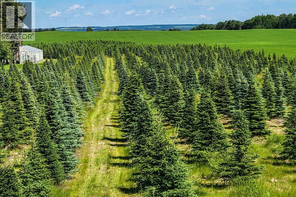Experience your own private paradise on 80 acres in the sought-after Sylvan Lake area. This exceptional estate features a main residence, an approved secondary residence, and a charming guest garden suite offering unparalleled privacy and versatility. Ideally situated just five minutes from Sylvan Lake and twenty minutes from Red Deer, this property is one of the region’s most captivating havens.The main home is constructed with ICF walls, concrete floor joists, and in-floor hot water heating on both levels. Designed for comfort and accessibility, it boasts an elevator and an open-concept layout flooded with natural light. The residence includes five spacious bedrooms, three bathrooms, two kitchens with a walk-in pantry and granite countertops, a sunroom, a generous main-floor laundry with sink and closet, and a walkout basement leading to a southwest-facing patio. Additional features include a double-attached garage for convenience and security.Outdoor living is elevated with a covered deck overlooking picturesque grain fields and forests, a water fountain, a private gazebo with surround sound and fire pit, and a 12’x50’ greenhouse with ICF frost wall for organic growing. The estate is also home to the R FAMILY CHRISTMAS TREE FARM, which includes a 2019 office with forced air heat, 220V power, and modern amenities. The farm boasts an ice-skating rink, picnic shelter, and 14 acres of Christmas trees—approximately 400 sold in 2023.Additional income opportunities abound: a fully upgraded 1976 mobile home rents for $1,500/month plus utilities; a 2017 60’x120’ warehouse, divided into two finished 60’x60’ bays with in-floor heating, 220V power, two three-piece baths, and mezzanines, rents for $2,800/month per bay plus utilities and GST. There are also 43 acres of cropland leased on a share basis.Support buildings include a 1992 60’x60’ shop with two finished bays (in-floor heating on one side, roughed-in on the other), 220V power, a two-piece bathroom, laundry, and a heated mezzanine “man cave.” A 1986 24’x26’ attached garage is fully finished with forced air heat. Multiple storage sheds are available, including a pet-friendly unit with in-floor heat, running water, and power. Solar power installation at the main building site will be installed in fall 2025.Enjoy year-round recreation with convenient lake access for swimming, boating, water skiing, ice fishing, snowmobiling, and cross-country skiing—all while remaining close to local amenities. This extraordinary estate offers unmatched beauty, versatility, and potential. Book your private tour today to experience everything this remarkable property has to offer. (id:63190)