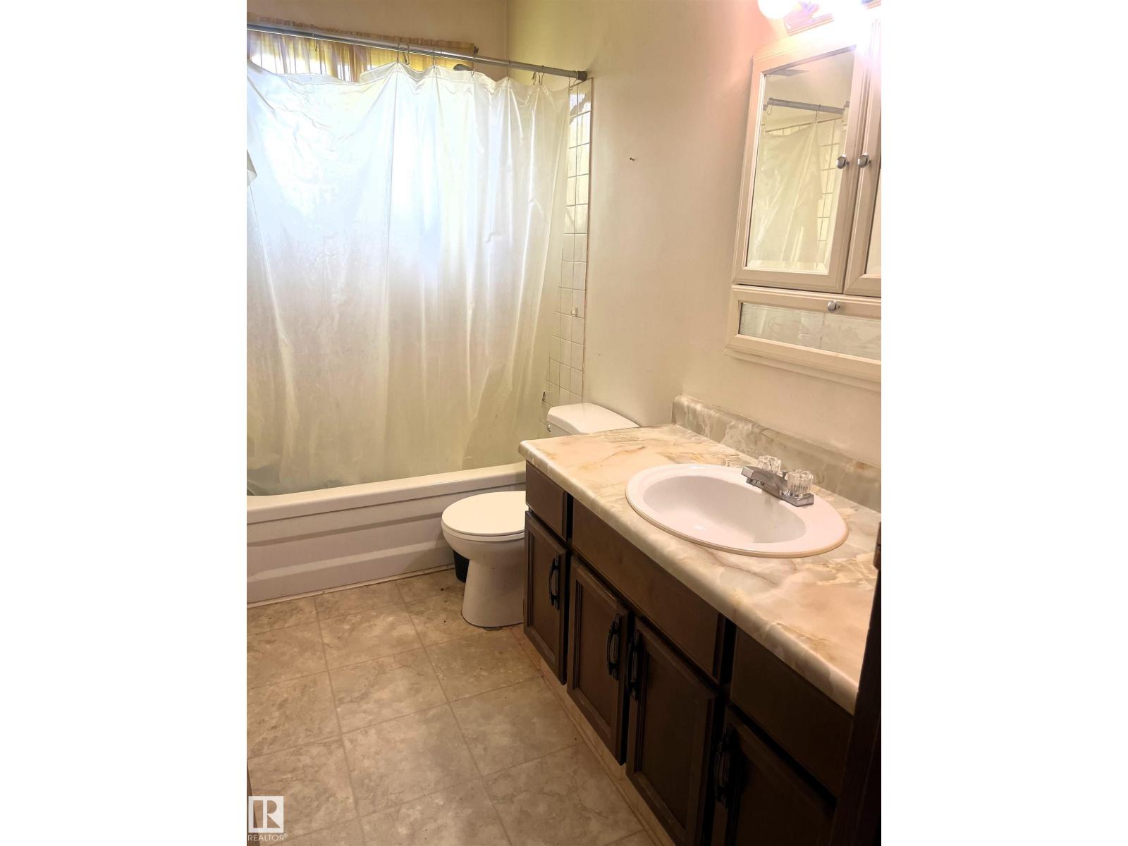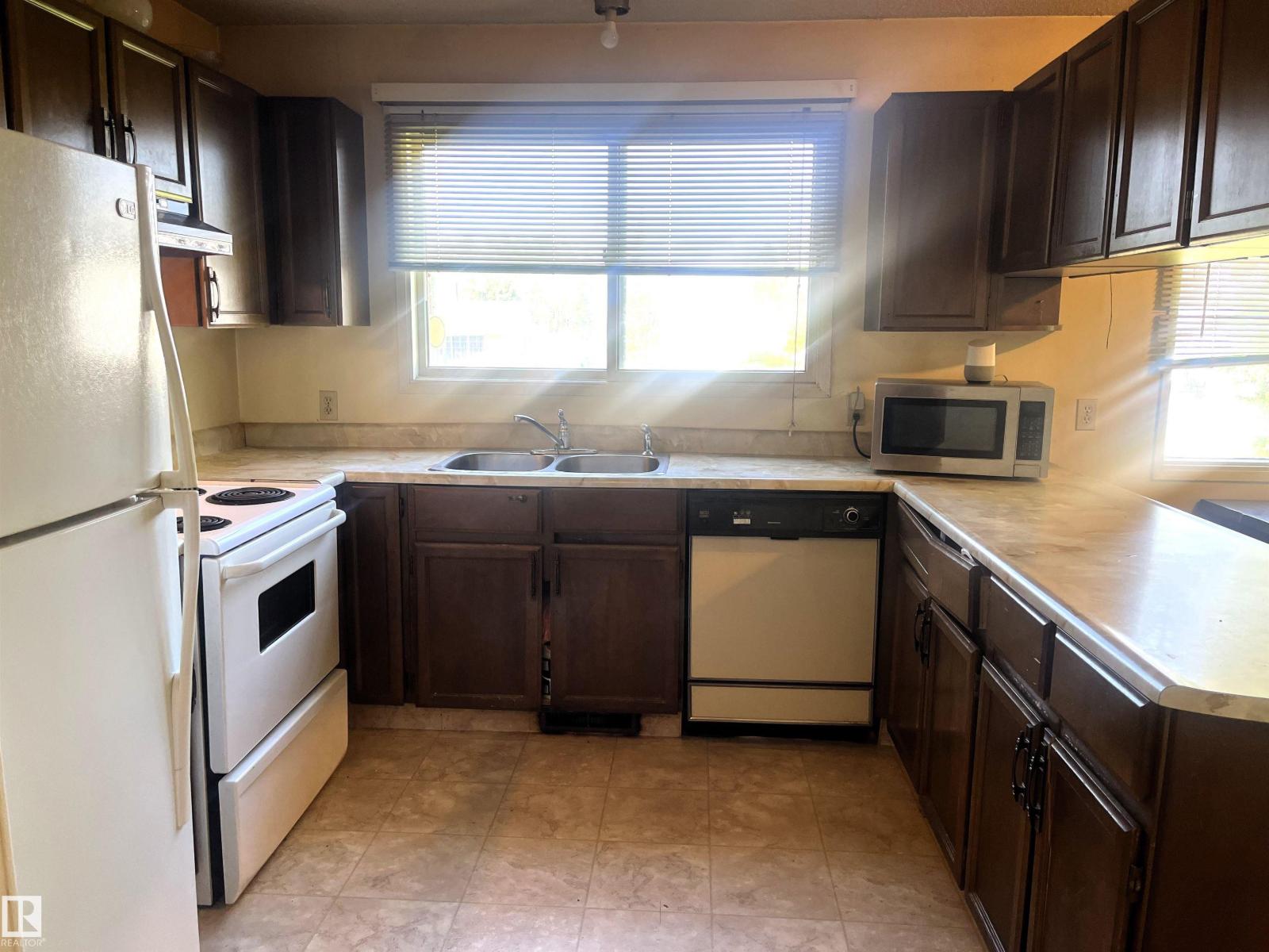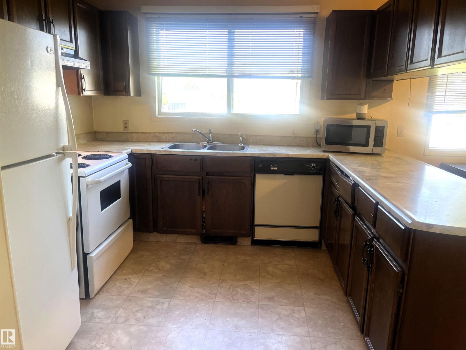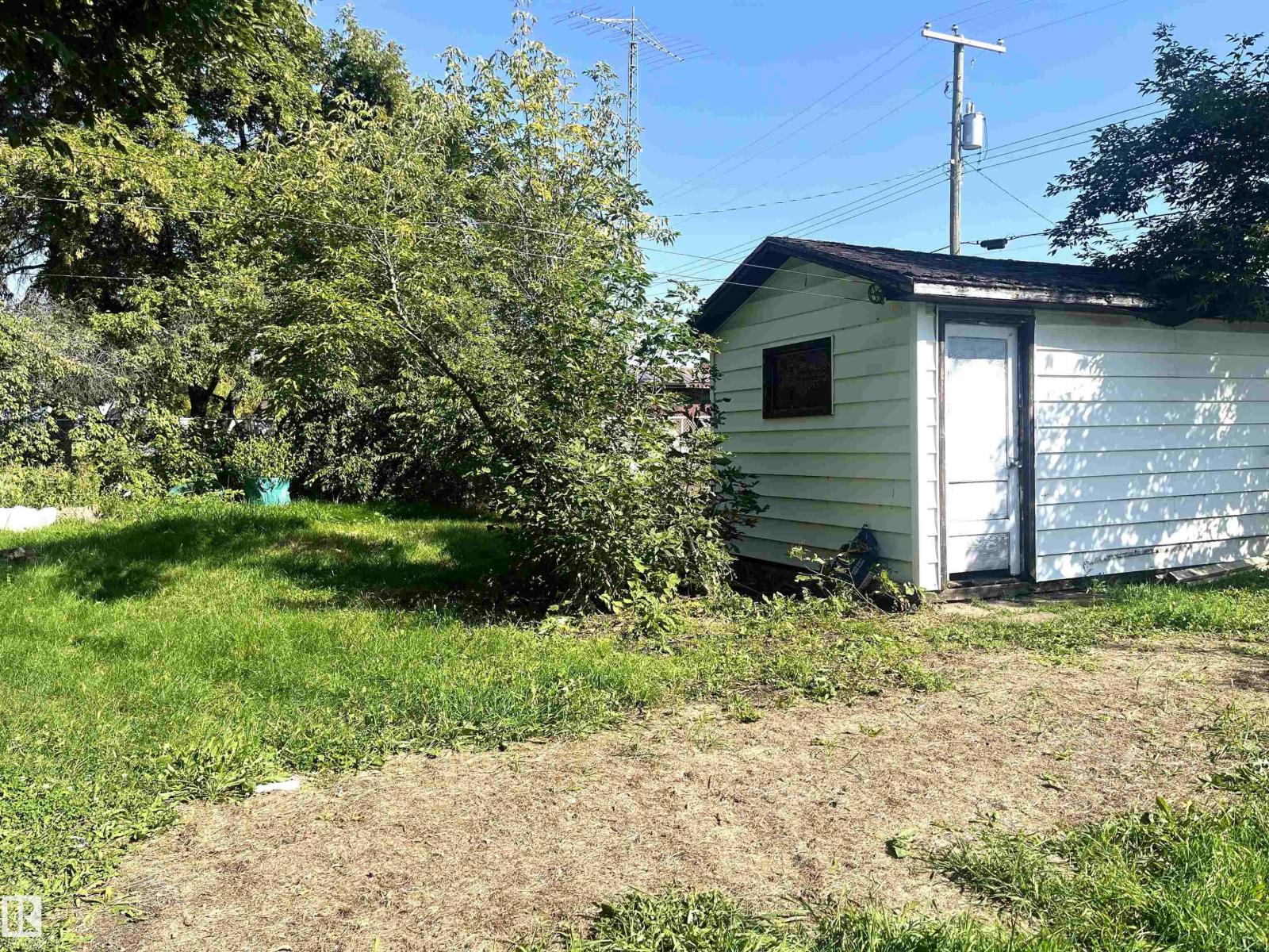 This one needs a little love. Here is a 3 bedroom, 2 bathroom, 1128 +/- sq ft home located in Wildwood on a triple lot! Upstairs has 2 bedrooms, 1-4pc bathroom, living room, dining room, kitchen and laundry area. Downstairs has a family room, 1 bedroom, 1-3pc bathroom, utility room and a storage/cold room. Upgrades include a new roof, HWT, master bedroom window, flooring in the living room & hallway and a Chain Link fence on the South & West side with a double open gate.Outside has a huge yard on 3 lots, covered deck (levelled in 2022), ramp on the west side of home, plum trees, choke cherry trees, rhubarb, sm raised box garden bed, shed and lots of room for whatever you please. (id:63190)