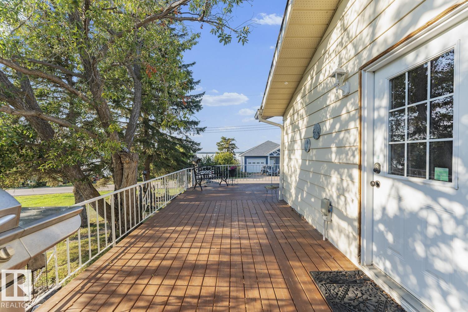 Embrace the Lake Life at Vezeau Beach- Moose Lake! Cute and cozy bungalow features an inviting open-concept layout. A spacious mudroom with main floor laundry, countertop space and sink. Bright living room offers large lake-facing windows and a faux stone-faced wood fireplace, perfect for chilly evenings. Good-sized dining area, custom rod iron railings and updated kitchen is ready for your culinary creations. 2 Bedrooms and a full 4-piece bath. The partially developed basement includes a large rec room, 2 other rooms previously used as bedrooms and ample storage. Outside enjoy a wrap-around deck with lake views and a gas BBQ hookup, ideal for entertaining. Nicely landscaped yard includes flower beds, firepit area, a powered shed and a detached heated garage with 220 power. Located just steps away from the golf course, park, picnic area, public lake access, beach and walking/biking trails. Golf, Swim, Fish, Boat, Relax and Repeat! (id:63190)
