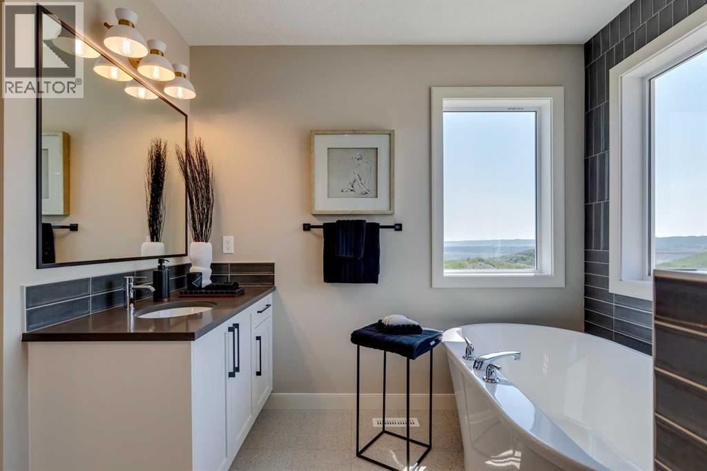 Four Bedrooms with a Walk-out Basement and a West Facing Backyard & A 22’ x 22’ Garage !!Welcome to a unique opportunity in today's competitive real estate market! This impeccable 4-bedroom home is brought to you by the renowned Douglas Homes Master Builder. Presenting the coveted Glendale Model, this sun-soaked residence boasts a west-facing backyard and is conveniently located just a short walk to the future community center in Sunset Ridge...Elegance Meets Practicality:Step inside and be captivated by the abundance of upgrades awaiting you and your family. The main floor welcomes you with an open layout, soaring 9-foot ceilings, and grand 8-foot tall doors. Natural light floods the space through large windows, highlighting the beautiful engineered hardwood flooring throughout...A Culinary Oasis:The heart of this home showcases a spacious dining area and a kitchen that will inspire your inner chef. Revel in the high-end builder's grade appliance package and the striking quartz countertops that adorn every surface. On chilly evenings, gather around the stylishly warm and cozy electric fireplace, creating cherished family memories...Serene Retreat:The deluxe primary suite offers a tranquil escape with a generously-sized walk-in closet and his and her's vanity & sinks - a true oasis of relaxation. An additional feature is the large flex room on the main floor with two 8-foot doors, ideal for those working from home or as a versatile space to suit your needs...Community Perks:For families, this location is a dream come true. Rancheview K-8 School is just a few blocks away, and St. Timothy High School is a short drive south. The future community center and a third school, in the pipeline, will be within walking distance...Convenience and Adventure Await:Escape into the mountains, just 40-45 minutes away on the scenic route. The city of Calgary is a quick 30-minute drive, as is to your nearest Costco, while the airport is an easy 45-minute commute...Yo ur Forever Home Awaits:If you've been searching for the perfect fit for your growing family, this exquisite and elegant home is the answer. But don't hesitate; opportunities like this are rare. A brand new 4-bedroom home at this price won't last long. Act now and make it yours today!Pictures from our Glendale Model Showhome. This listing has a slightly different exterior & interior finishing package than as shown in the pictures presented here...(Attention fellow agents: Please read the private remarks.) (id:63190)