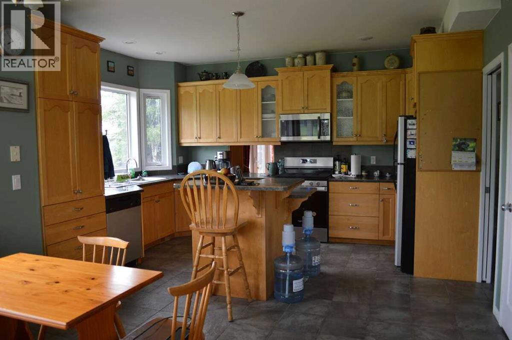 For more information, please click the "More Information" button. This stunning property is situated in the scenic James River Valley only 20 minutes North west of Sundre, under an hour from Red Deer and an hour and a half from Calgary. This property is very well set up as a hobby farm for horses or other livestock and also offers year round recreation as it has its own half mile of river frontage on the James River and also backs onto crown land. This unique property has 2 well kept homes and a lovely yard all well above the river floodplain. The main house is a 2874 Sq Ft, 2008 custom built one and a half storey with oversized double attached garage, ICF basement, and Hardieplank siding. Heating is by forced air natural gas furnace, there is a natural gas fireplace in the living room and a woodstove in the basement. Both the basement and garage have underfloor heat. The main floor has either maple hardwood or tile flooring. It has 9 ft. ceilings and lots of windows to let in an abundance of natural light and giving great views of the beautiful landscape. It has a covered deck on the South and West sides. The good sized kitchen has a 2 tier island, built in dishwasher, and microwave, newer gas stove and an eating nook. There is a brand New Reverse Osmosis system (April 2026). The living room is bright and airy with a vaulted ceiling. There is a a formal dining room with a pass through hatch from the kitchen. Completing the main floor are 2 bedrooms, a 3 piece bathroom and a good size boot/laundry room. The washer and drier were both new in 2025. The upstairs has a good sized primary bedroom with its own balcony, a walk in closet and full 4 piece ensuite with soaker tub. The second upstairs bedroom also has its own 4 piece ensuite. The 1484 sq ft basement is partially finished and has a large legal bedroom, full 4 piece bathroom, a cold storage room and recreation and storage areas. The garage has a large bonus room above it. The second house on the property is a 1 965 built 1137 Sq Ft bungalow, currently rented. There is a 26 x40 ft heated and insulated shop, a 16 x32 ft open front storage shed, 2 garden sheds and a small greenhouse. There are approx. 45 acres of productive pasture and beautiful gardens including a large fenced vegetable garden and 45 acres of recreational land near the river. It has good corrals, 5 smaller paddocks, pumphouse with 3 livestock waterers, good livestock shelters, and good fencing. The property has a series of managed trails near the river for recreation - walking, fishing, swimming, camping and riding. Sundre is a welcoming vibrant small town with a hospital, unique stores and coffee shops and lots of amenities for sports and recreation. This is a wonderful opportunity to own a beautiful small farm with 2 well kept homes and prime pasture and recreation land in the foothills of central Alberta. (id:63190)