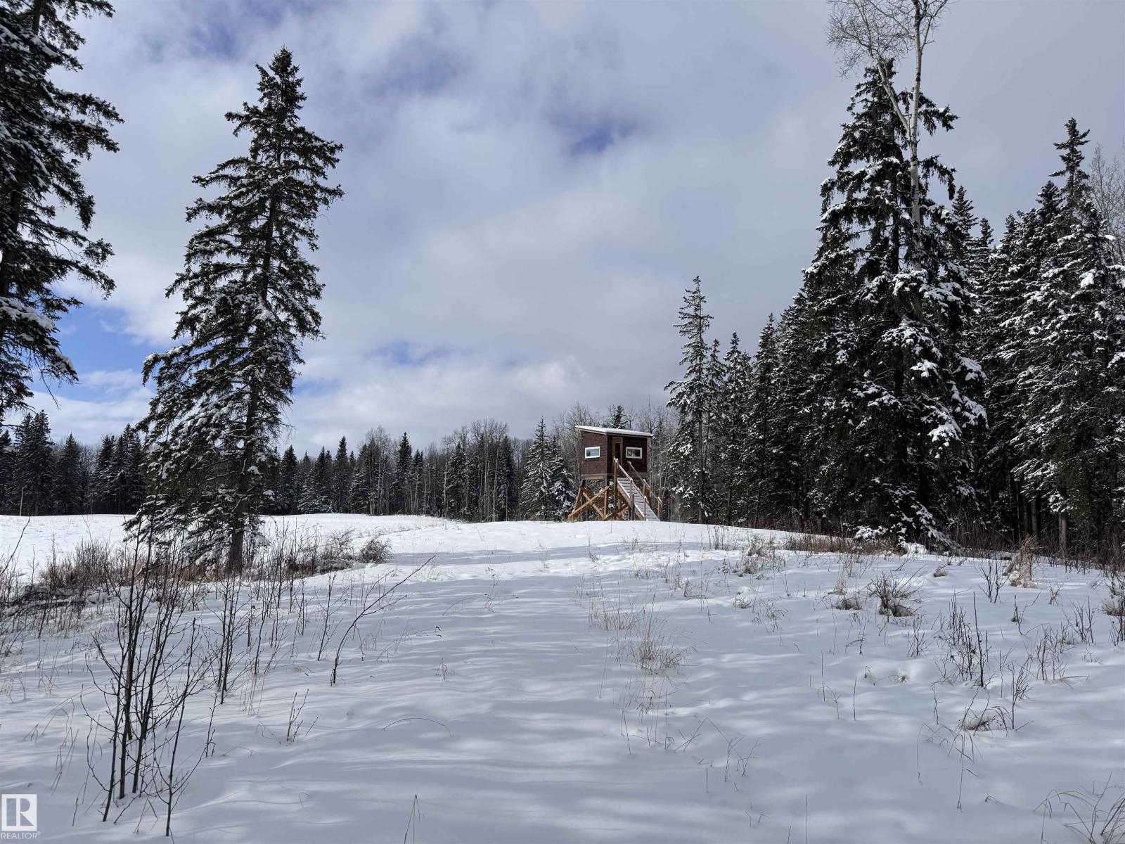 Wild creatures galore. Experience the wilderness at this beautiful quarter (141.86 acres) of land near Larkspur, Alberta. Original growth and some bush is almost 100 years old. Marketable timber. Large dugout retains a high level of water all the time. 2 well-built (cost $5000 each) hunting blinds and a sea can are included. Nice long driveway into the property takes you into seclusion. Hunter's paradise. Close to world-famous Long Island Lake. Close to crown land, quad / snowmobile trails, watersports, fishing, camping, horse-back riding, whatever is your thing. Birch, spruce, poplar. 30 acres cleared in 2 -15 acre openings. Property is fenced. (id:63190)