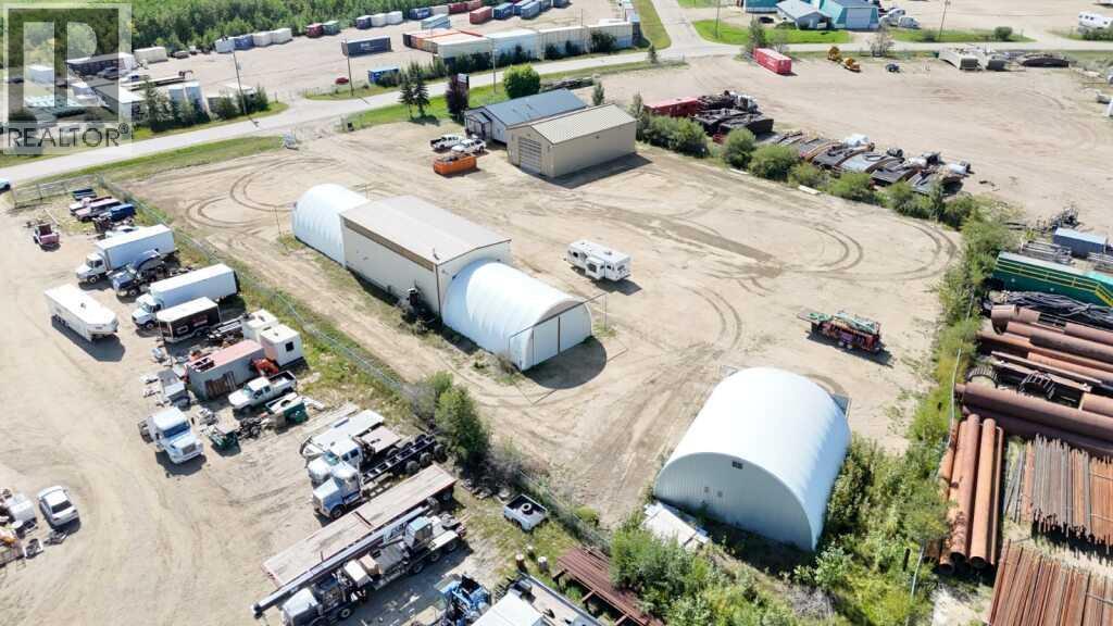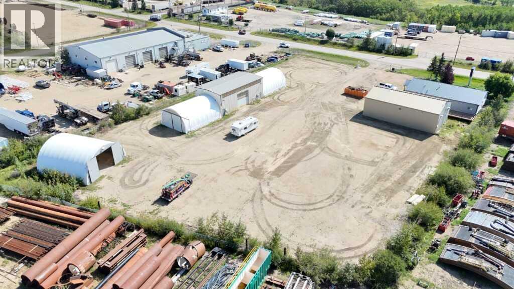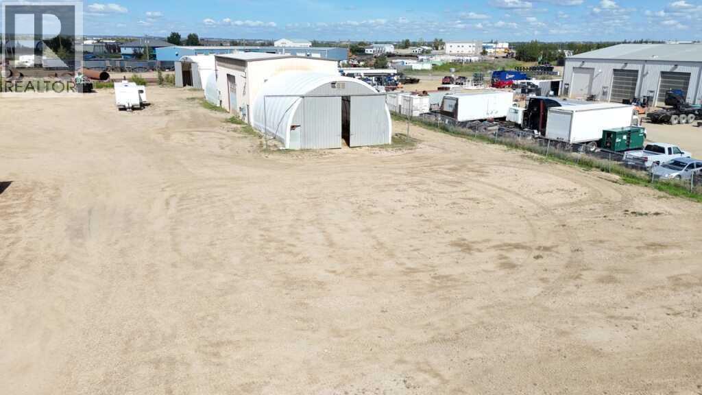 Exceptional industrial property on 2.04 acres with a total of 9,967 SF across four buildings. The site includes a modernized 2,187.93 SF office trailer with six offices, a boardroom, reception, and washrooms. A 2,040 SF main shop is equipped with radiant heat, exhaust fans, and 225A, 3-phase power. The 1,800 SF fabrication shop offers trench drains, radiant tube heat, and 400A, 600V 3-phase service, plus two 1,200 SF heated Quonset shelters for storage and overflow. An additional 1,520 SF powered Quonset with a concrete floor provides cold storage space. The yard is fully fenced, graveled, and designed for easy truck access, with remote gate entry and security cameras in place. Recent improvements include office and yard cleanup. A well-equipped and versatile property in Blindman Industrial Park. (id:63190)
