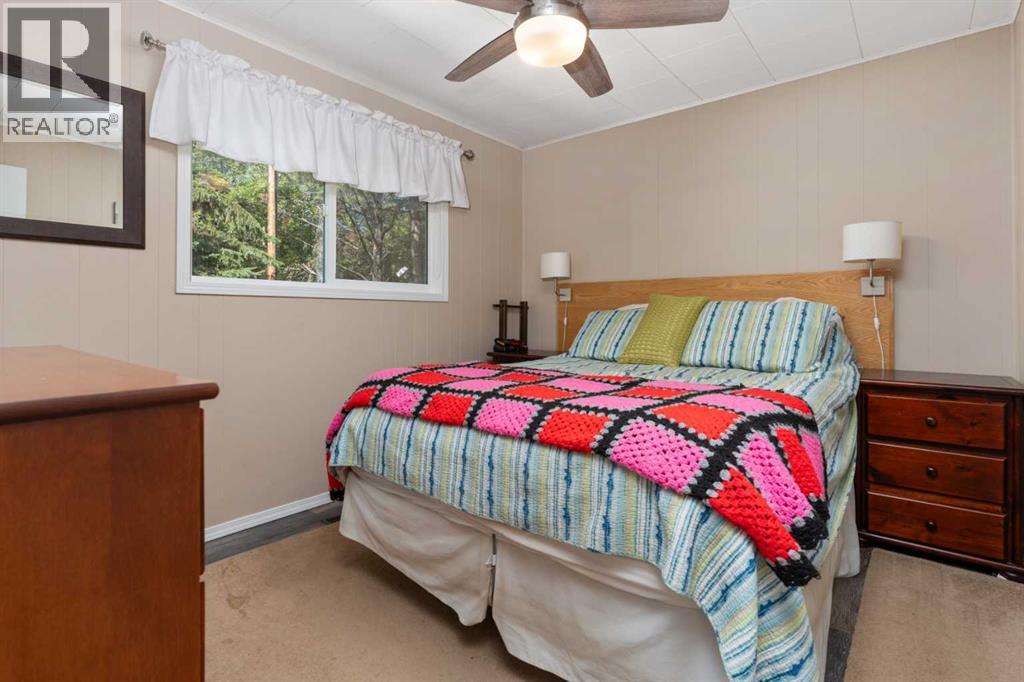 Discover your ultimate four-season retreat at the southern tip of Pigeon Lake in the summer village of Norris Beach. Nestled among towering spruce trees, this charming cabin offers privacy, comfort, and direct water access—all within a two-minute stroll to the shore. Interior Features; Two cozy bedrooms and a full four-piece bathroom. Open-concept living area with abundant natural light. Kitchen appointed with oak cabinets, subway tile backsplash, double sink, extra counter space, ceramic stove, fridge, and dishwasher. Cabin comes with newer vinyl siding, soffit, and fascia. Furnace approximately 5 years old. Big Bonus - the property is tied into municipal sewer for a way more convenient experience. Outdoor & Lot Highlights; Wrap-around deck ideal for lounging, morning coffee, or alfresco dining. Ample storage throughout to keep gear organized. Expansive front yard shaded by mature spruce for peaceful relaxation. Backyard designed for entertaining—fire pit area and room for lawn games. Bunkhouse with tin roof and air conditioning, perfect for guests or in the summer or winter. Property backs onto green space, providing a secluded feel and direct water access. Just two blocks from Black Bull Golf Course, Petro-Canada, and village amenities. RV parking with 220V plug right at the driveway. Easy walk to lakeside beaches, boat launches, and scenic trails. Large private beach area for the neighborhood residents to enjoy in the summer and store their boat docks in the winter. Ideal for year-round living, seasonal rentals, or a weekend getaway. Don’t miss the chance to own this very affordable lake retreat. (id:63190)