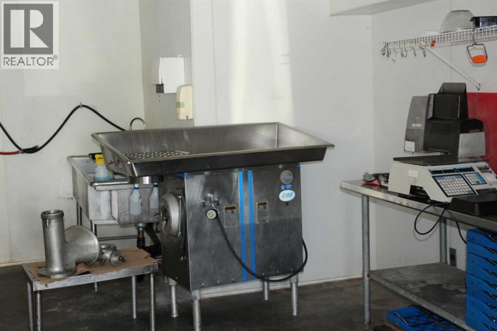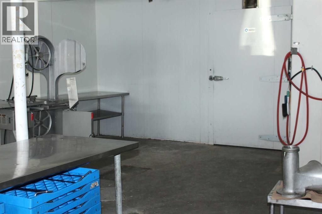 Excellent main street building in the town of Vulcan!!! Was formally operated as a custom cutting and mobile butcher shop but could be easily converted to what ever business you desired. This building is just shy of 2400 sqft and has numerous upgrades which include thickened concrete and upgraded electrical. Could easily be turned back into a butcher shop as the demand was huge in the area. The infrastructure is all there including a wash room, loads of cooler space for hanging the meat, a freezer and was all carefully designed to hang on a rail system to make moving the carcasses a breeze. The building is divided up into a 36x28 showroom area with loads of natural light and a 10x6 office. The cooler is 48x14.8 and the freezer is 11.4x8.6. This property can be sold with all the equipment (at an additional cost) or all the items can be removed. (id:63190)