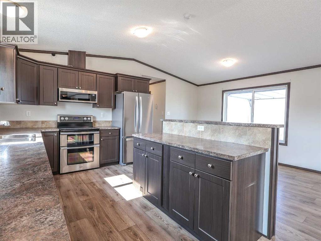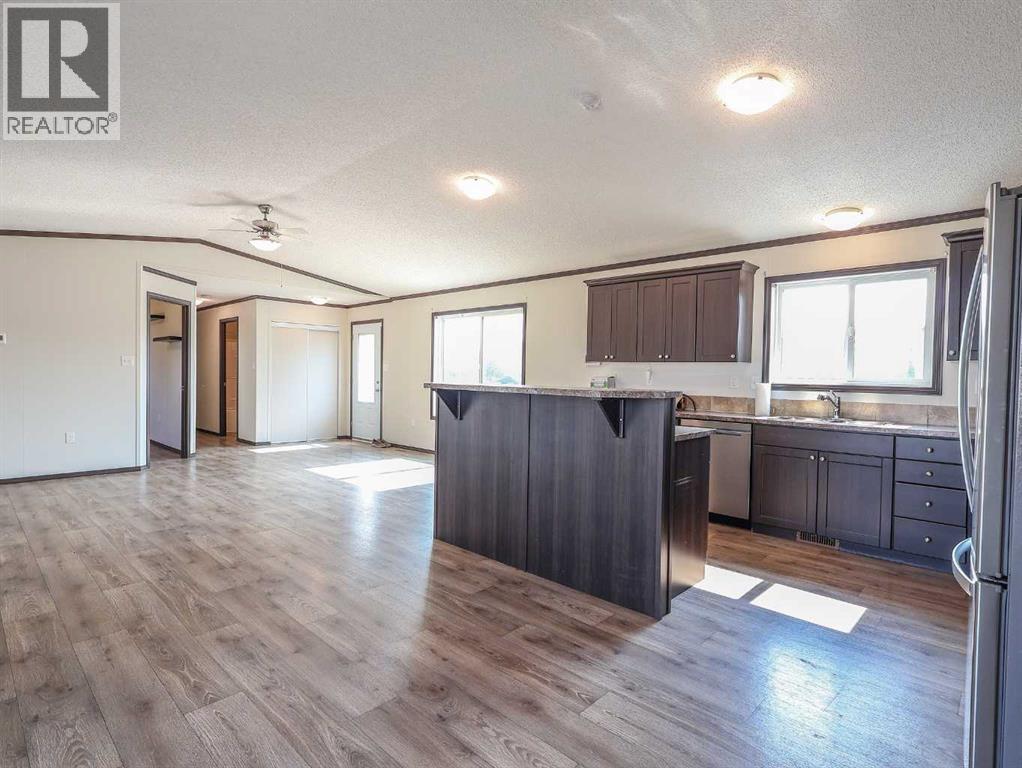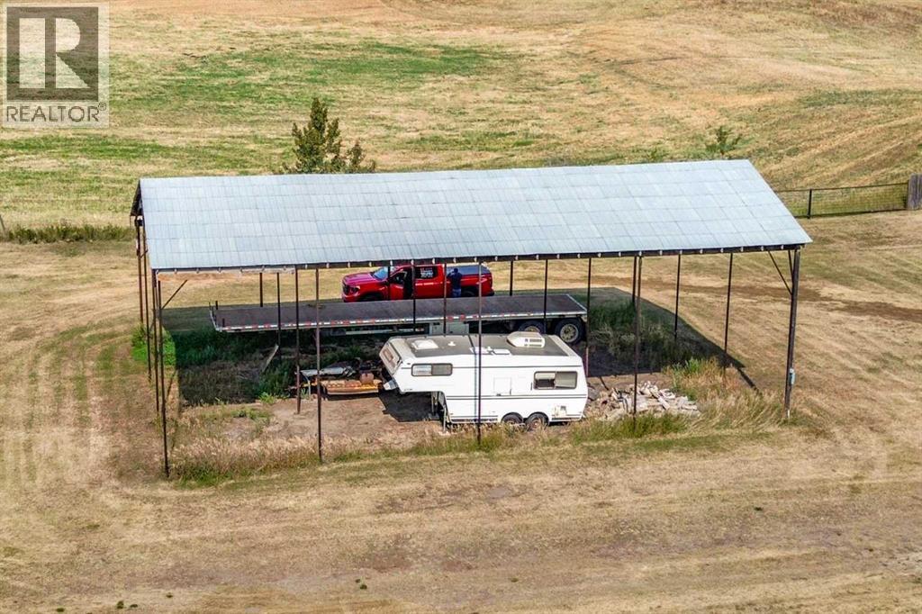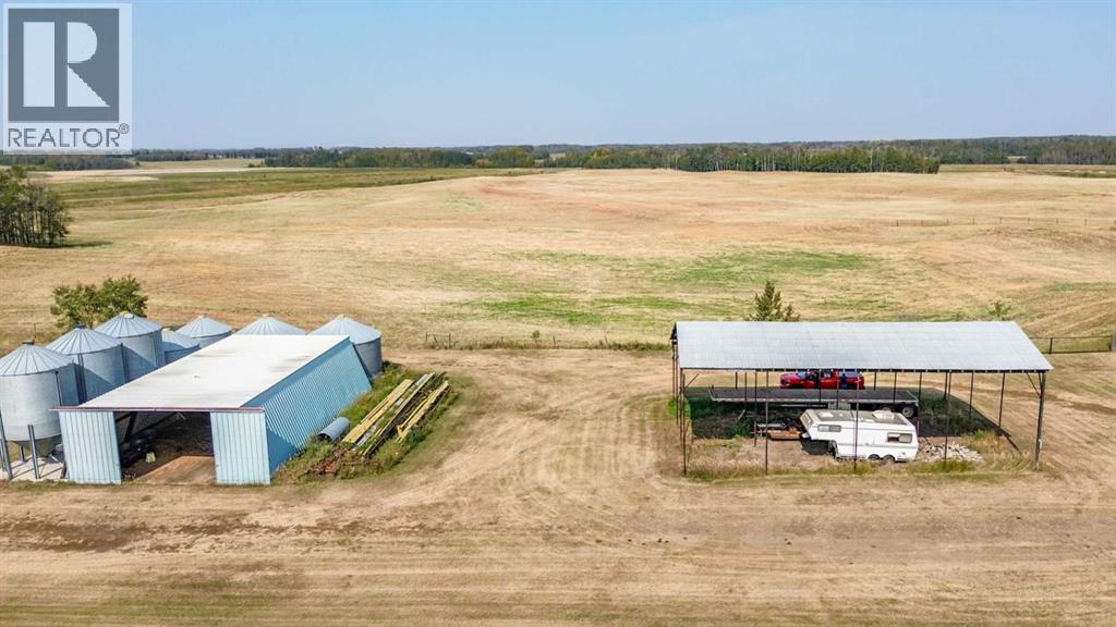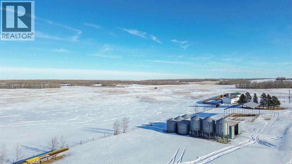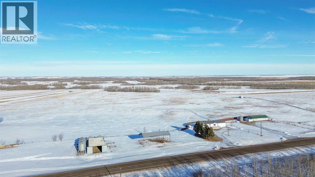 Located right on Highway 601, this well-cared-for farm consisting of 84.39 acres, combines a bright, 2013 home with a fully functional farmyard—ideal to add to your farming operation, great for hobby farmers, or anyone wanting extra space and flexibility. Wide open views of farmland and trees surround the property, offering peace and prairie charm from every angle. The home is in excellent condition, immaculately maintained, and filled with natural light. It features vaulted ceilings, large windows, wood-look flooring, and light-colored walls throughout. The spacious kitchen boasts plenty of cabinets, stainless steel appliances, and a tiered island, all open to the dining area and huge living room. The primary suite includes a walk-in closet and 3-piece ensuite with walk-in shower. Three additional bedrooms and a full 4-piece bathroom provide plenty of space for family or guests. The back entry offers convenient laundry hookups and storage. Outdoors, the yard is low-maintenance with lots of parking and plenty of grass. There are two large decks at the front and back entrances creating a variety of locations to unwind and enjoy the scenery. The backyard has expansive views of the farmland beyond. The farmyard on either side of the house offers excellent functionality and includes a 60’ x 38’ barn, 60’ x 42’ open bale shed, storage shed with metal siding, 3 stock waterers, and steel corrals, making it ideal for small livestock, equipment storage, or hobby farming ventures. The farmland is currently seeded down to hay. This property is conveniently located between Stettler and Alix, and is a short commute to Red Deer. This is a great property which blends modern living with practical farmyard infrastructure—an excellent opportunity for those seeking both comfort and versatility. (id:63190)
