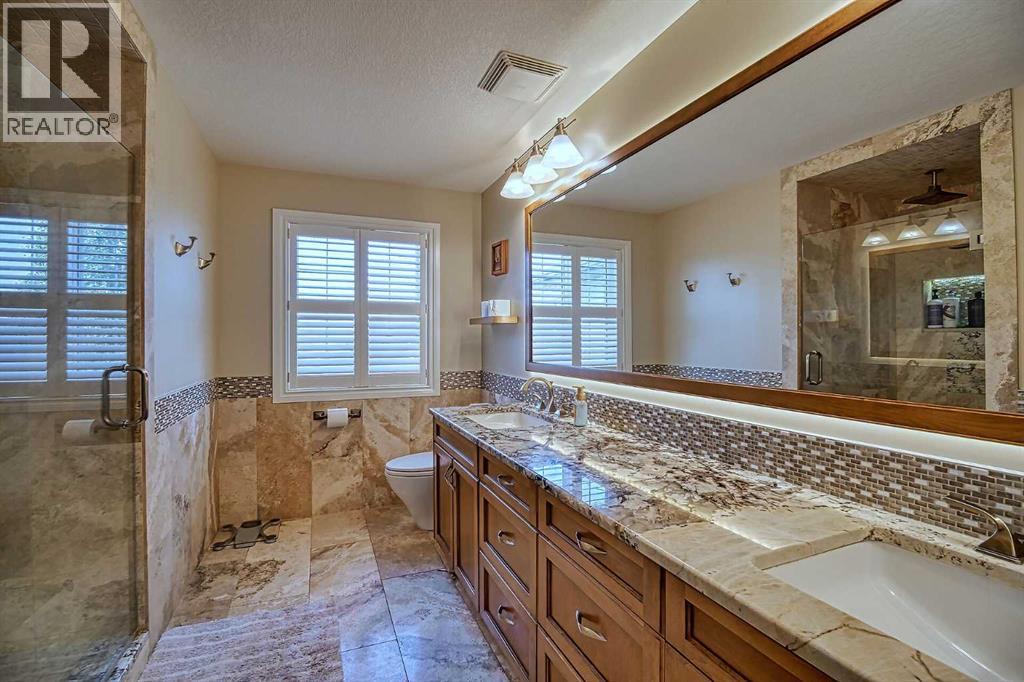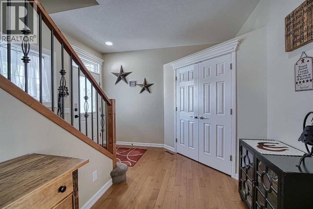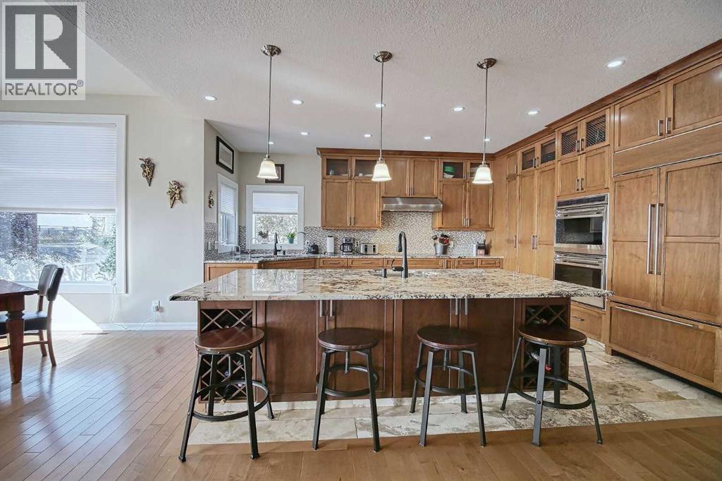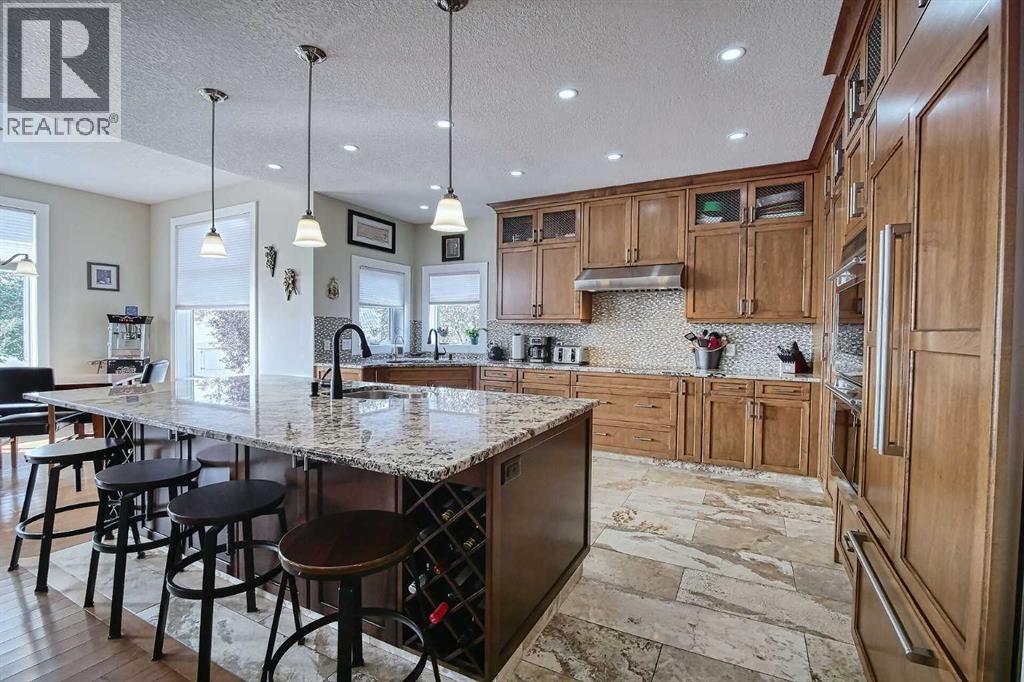 Top-of-the-line home packed with EXTRAS! Step into a grand foyer that opens to soaring ceilings and an impressive open-concept main floor. At the heart of the home is a bright, modern kitchen with PREMIUM appliances: Double Wolf Wall Ovens, an Induction Cooktop, UNDER COUNTER built-in microwave, Miele dishwasher, and a Sub-Zero Refrigerator. Thick Granite counters span the space, including a large breakfast bar with sink and garburator, plus an additional sink and garburator by the windows. Custom cabinetry offers abundant storage throughout. The spacious dining area is wrapped in windows, showcasing sweeping prairie views—perfect for entertaining. A cozy gas fireplace anchors the living room, while remote-control blinds add convenience. From the dining room, step out to a covered deck with glass railing for seamless indoor-outdoor living. Rounding out the main floor are a stylish powder room, a well-planned laundry, and a practical mudroom.Up the first landing, you’ll find a bright bonus room with soaring ceilings, oversized windows and another fireplace—ideal for movie nights or a kids’ play zone. On the next level are two generously sized bedrooms with large closets. The primary suite is a true retreat with prairie views, a spacious walk-in closet and a four-piece ensuite featuring custom lighting—even in the shower, low flow toilet and heated floor. The fully finished basement offers in-floor heating, a flexible area currently used as a fourth bedroom and a full four-piece bathroom. The oversized double garage is fully finished with epoxy floors, drywall, insulation, and in-floor heat. Outside, the massive 10,000 sq. ft. yard is fully fenced with low-maintenance vinyl, RV parking, and sweeping farm views; there may even be enough room for an additional garage. More features include hardwood and premium carpet throughout, central air conditioning, underground sprinklers, RO systems, a water softener, LED lighting (everywhere), built-in vacuum system and even a Eu ropean plug for specialty appliances. This Layne Home is solidly built, well maintained and truly move-in ready. (id:63190)