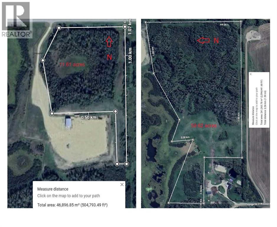 Spanning 141.25 acres, this exceptional property is a prime opportunity for buyers seeking space, versatility, and modern amenities. Nestled amidst dense evergreens with Sylvan Lake's water edge nearby, it offers both natural beauty and practical functionality. The property features a state-of-the-art 40x60' insulated shop with overhead radiant heat, 16’ door, concrete floor with drain, a poured concrete apron, metal siding inside and out, perfect for heavy-duty projects. A massive, level gravel staging area is ideal for oilfield, industrial, or storage needs. Fully serviced with natural gas, water and electricity (100amp), the land is completely fenced and cross-fenced, boasting a premium steel gate entrance for added security and appeal. Additional highlights include a 8X53' trailer skid shack and a septic tank (shop drain), making this expansive property a rare find for industrial, agricultural, or recreational buyers looking for a blend of utility and serene surroundings. The land opens up to the SW. The seller grazes between 80-100 head of bucking horses on this land. You could log some additional room depending on needs, everything is fenced/gated for grazing without issues around the wet areas; including the gravel area, which is enclosed back to the gate. Rainy Creek Rd. does not ban in the spring for heavy equip making this property ideal for commercial use. New water well has been drilled in December 2025, 10-20 GPM fresh water. (id:63190)
