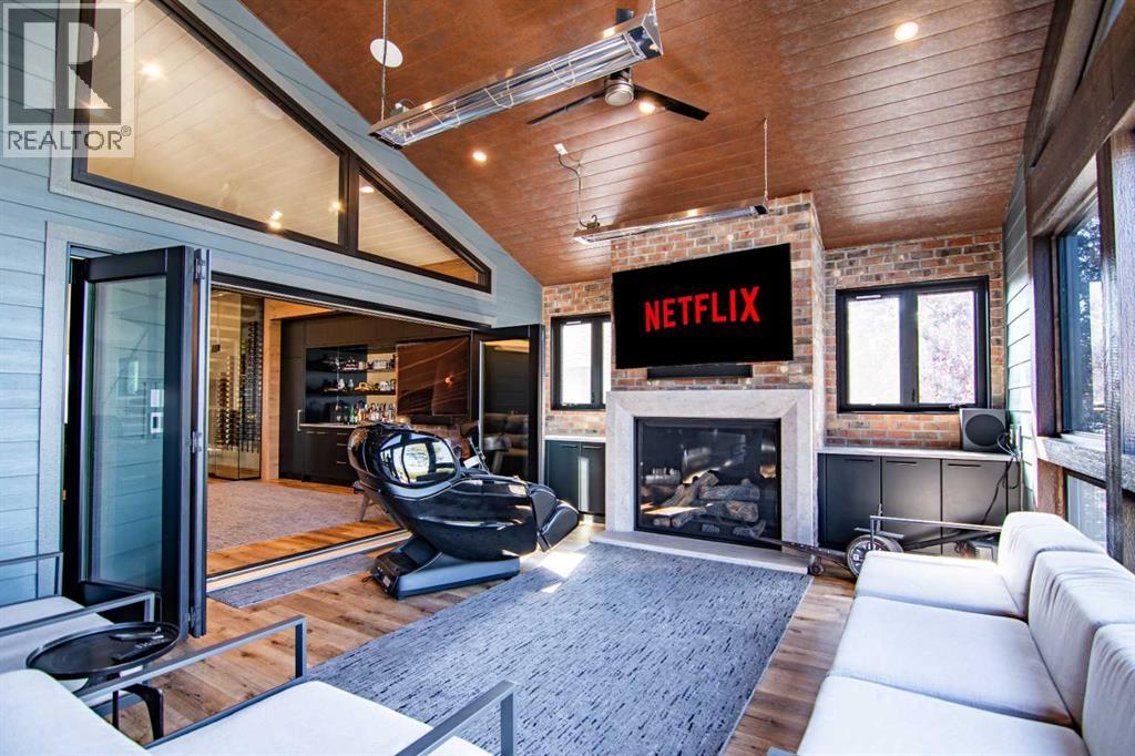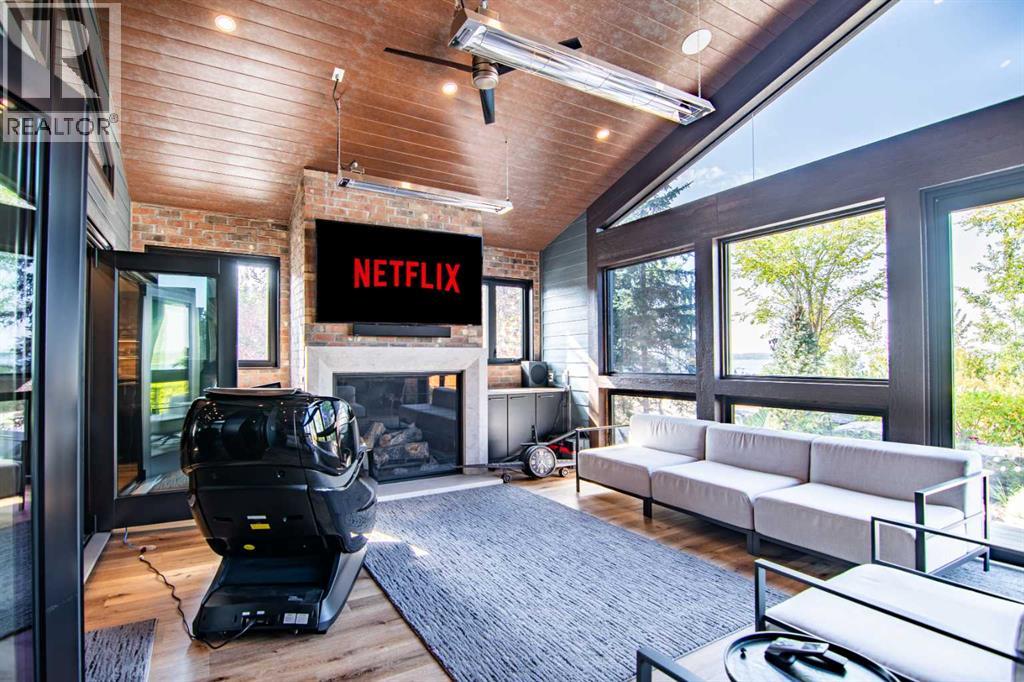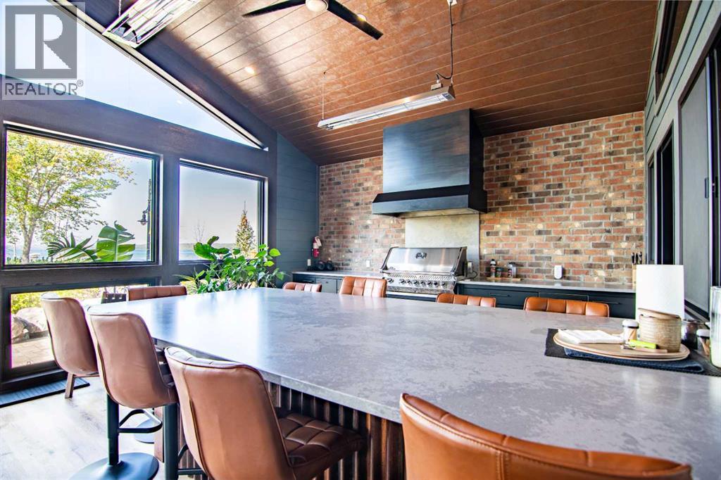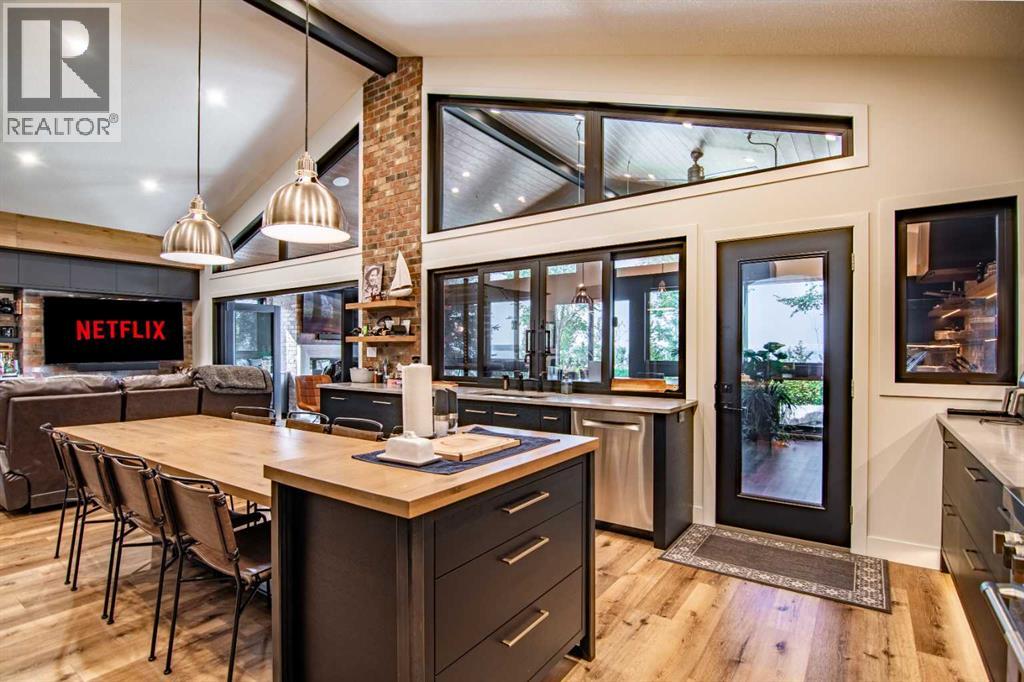 Step into unparalleled lakeside elegance with this architecturally stunning, custom-built 2021 modern bungalow nestled on prestigious Lakeshore Drive in Sylvan Lake’s coveted Cottage Area. This 2,044 sq. ft. Fully developed masterpiece (on a spacious 5,662 sq. ft. lot) blends cutting-edge contemporary design with high-end finishes, delivering the ultimate in sophisticated lakeside living. With 4 bedrooms (including a main-floor master), 6 bathrooms (3 ensuites), and seamless indoor-outdoor flow, every detail has been meticulously crafted for comfort, entertaining, and effortless enjoyment of Alberta’s most desirable lakefront community. Imagine waking up to serene lake views and stepping straight onto walking paths that lead to pristine beachfront, vibrant downtown shops, and world-class dining – all just moments from your door. This home offers direct access to Sylvan Lake’s recreational paradise, including boating, swimming, and year-round community events. Whether you’re hosting sunset gatherings or enjoying quiet mornings by the water, this is lakeside living at its finest. Plus, a built-in boat slip and private entrance make waterfront adventures effortless. Inside, the open-concept design flows beautifully with high ceilings, vaulted accents, and premium flooring throughout. The chef’s kitchen is a showstopper – featuring top-of-the-line stainless steel appliances, expansive granite countertops, custom cabinetry, a large island, and a walk-in pantry. Perfect for culinary creations or casual family meals. A gas fireplace adds cozy ambiance to the living spaces, while in-floor heating keeps every room warm and inviting year-round. This isn’t just a home; it’s a fully integrated smart sanctuary. Enjoy **lighting control throughout** the entire property for effortless ambiance at the touch of a button or via app. Standout **built-in wave lighting** wraps around the home’s exterior, creating dramatic, customizable illumination that highlights the modern archit ecture by day or night. The home is pre-wired for **Sonos** with integrated speakers in key areas, delivering immersive audio for music, movies, or entertaining. High-efficiency HVAC, smart home integration, and wired-for-sound capabilities mean every convenience is at your fingertips – from climate control to entertainment systems. No detail was overlooked: wine storage tucked under the stairway, a wet bar, closet organizers, and a half-bath on the upper balcony for seamless hosting. The main-floor master suite offers a luxurious escape with its ensuite and walk-in closet. Three additional spacious bedrooms (each with ensuites) provide flexibility for family, guests, or a home office. A fully finished basement expands your living options with extra recreation or relaxation space. Outside, unwind on the balcony, fire up the built-in gas BBQ, or gather in the private yard – all enhanced by the home’s striking lighting features. Oversized double attached garage with refrigerator and room for 5 vehicles to (id:63190)
