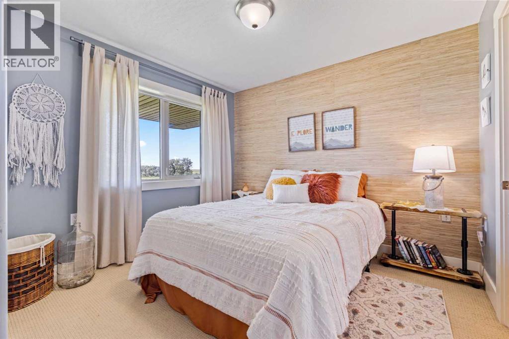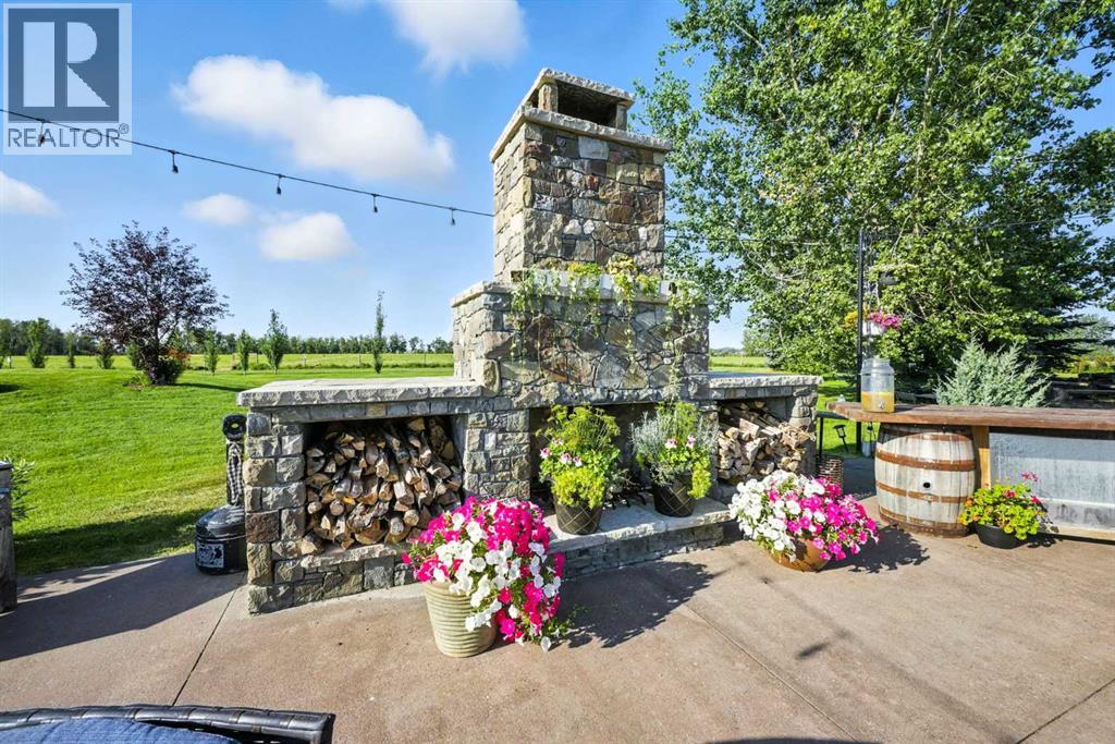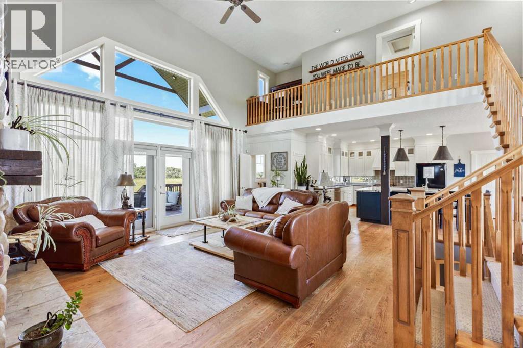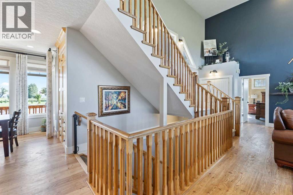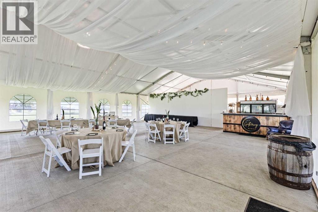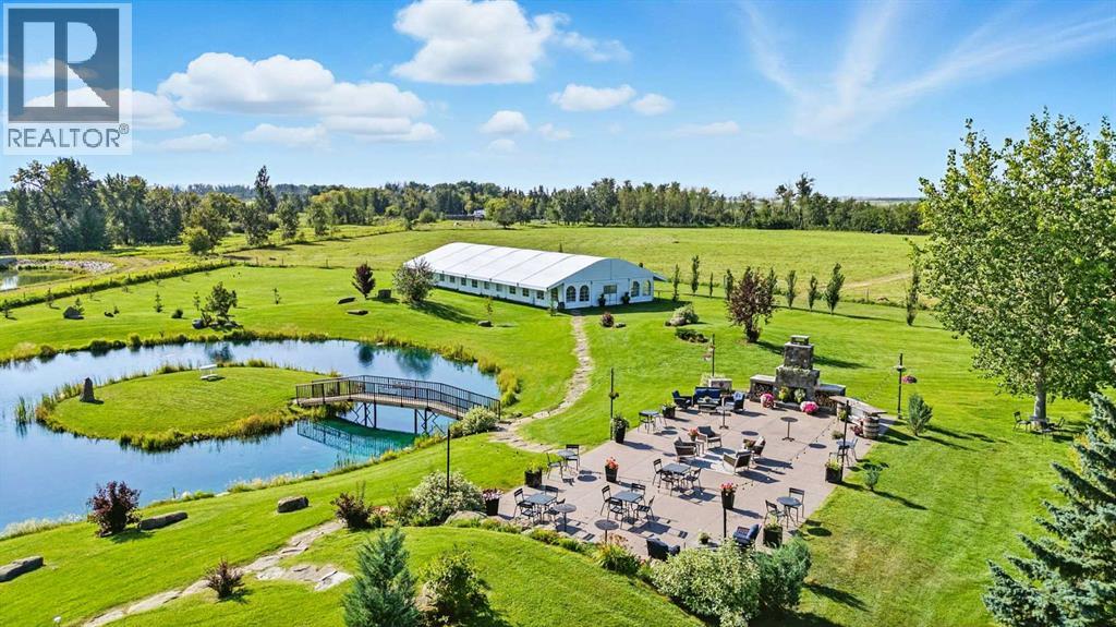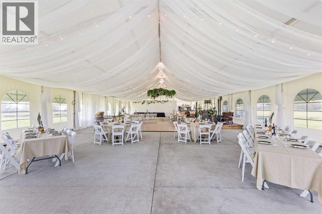 ~ Don’t miss the opportunity to own such a rare gem as this! ~ This exceptional 28+ acre estate just 7 km from Strathmore and under 45 minutes from Calgary offers luxury living and income potential. With a fully developed 3,700+ sq ft estate home and an established wedding venue, the opportunities are unmatched. The beautifully designed home features wraparound decks on three sides, a grand living room with a 20-ft wood-burning fireplace and west-facing floor-to-ceiling windows, an open-concept chef’s kitchen with an 8-ft island, granite countertops, custom cabinetry, huge walk-through pantry, and a spacious mudroom connecting to an oversized attached garage. The main floor also includes a laundry room, 2-piece bath, and a luxurious primary suite with a walk-through closet, custom built-ins, 4-piece ensuite with in-floor heat, and built-in tub overlooking the Rocky Mountains. Not to mention the private access to the hot tub and south deck, along with an adjoining nursery/den. Upstairs features two bedrooms with a Jack & Jill 6-piece bath, a den with views of Eagle Lake, and a cozy library nook. The lower level offers three more bedrooms (one with custom bunk and Murphy beds), a 5-piece bath with steam shower, large rec room, and in-floor heating throughout. The exterior is finished with Hardie Board siding, and the professionally landscaped grounds include a pond with waterfall and island, rock pathways, mature trees, underground sprinklers, a detached double garage, small horse corral and shelter, and secure electric gate access. The property also includes a 40'x99' commercial event tent with concrete floor, bar, and prep area, seating for 150, a wedding ceremony space with antique doors and custom benches, and a camping area with fire pits—making it a turnkey wedding venue with negotiable equipment and supplies. This property is truly one you cannot pass up—connect with your AWESOME REALTOR® & book a showing today! (id:63190)