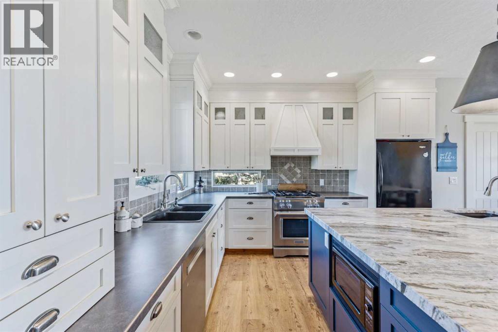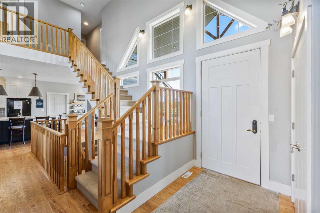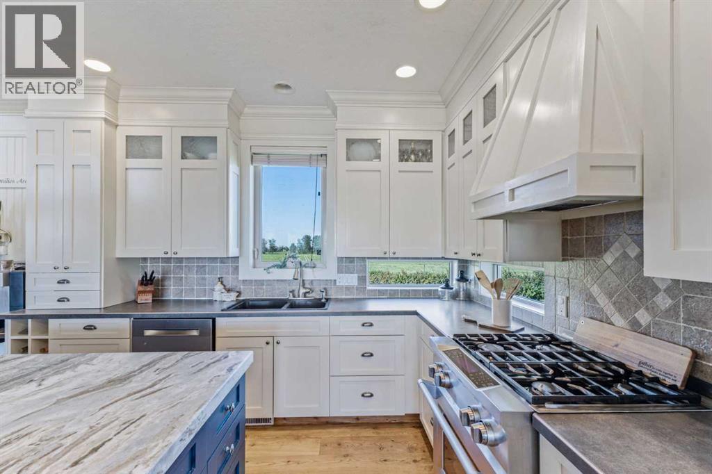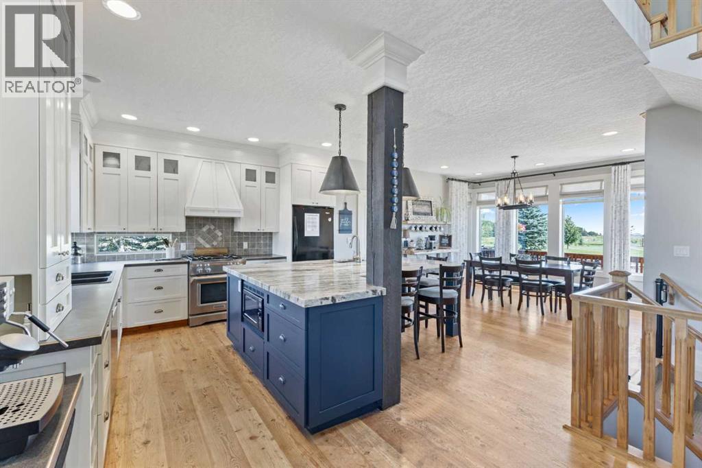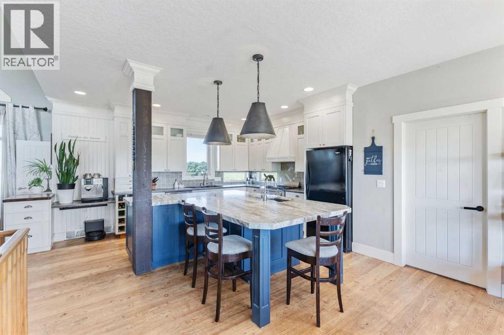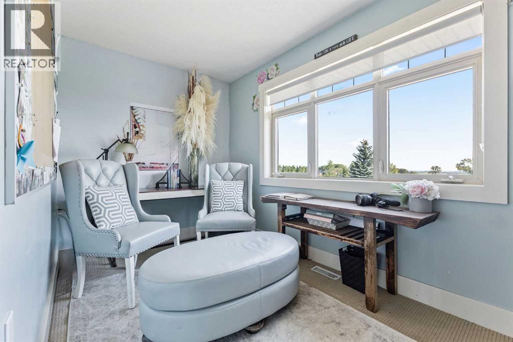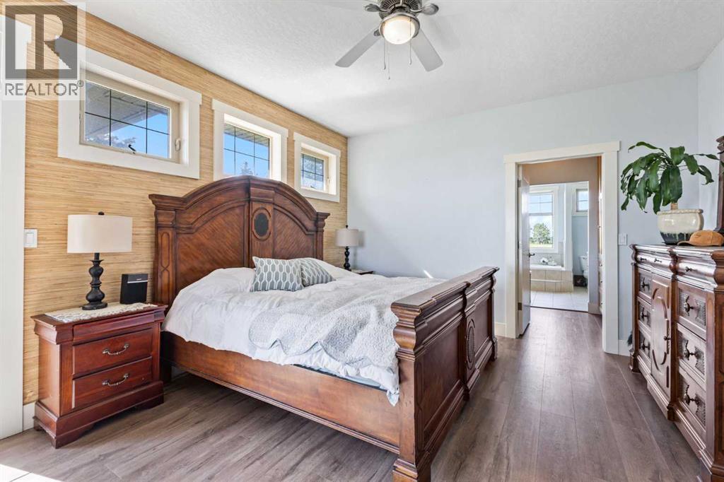 ~ Don’t miss the opportunity to own such a rare gem as this! ~ This exceptional 28+ acre estate just 7 km from Strathmore and under 45 minutes from Calgary offers luxury living and income potential. With a fully developed 3,700+ sq ft estate home and an established wedding venue, the opportunities are unmatched. The beautifully designed home features wraparound decks on three sides, a grand living room with a 20-ft wood-burning fireplace and west-facing floor-to-ceiling windows, an open-concept chef’s kitchen with an 8-ft island, granite countertops, custom cabinetry, huge walk-through pantry, and a spacious mudroom connecting to an oversized attached garage. The main floor also includes a laundry room, 2-piece bath, and a luxurious primary suite with a walk-through closet, custom built-ins, 4-piece ensuite with in-floor heat, and built-in tub overlooking the Rocky Mountains. Not to mention the private access to the hot tub and south deck, along with an adjoining nursery/den. Upstairs features two bedrooms with a Jack & Jill 6-piece bath, a den with views of Eagle Lake, and a cozy library nook. The lower level offers three more bedrooms (one with custom bunk and Murphy beds), a 5-piece bath with steam shower, large rec room, and in-floor heating throughout. The exterior is finished with Hardie Board siding, and the professionally landscaped grounds include a pond with waterfall and island, rock pathways, mature trees, underground sprinklers, a detached double garage, small horse corral and shelter, and secure electric gate access. The property also includes a 40'x99' commercial event tent with concrete floor, bar, and prep area, seating for 150, a wedding ceremony space with antique doors and custom benches, and a camping area with fire pits—making it a turnkey wedding venue with negotiable equipment and supplies. This property is truly one you cannot pass up—connect with your AWESOME REALTOR® & book a showing today! (id:63190)