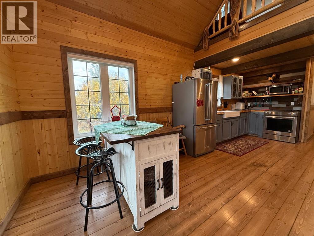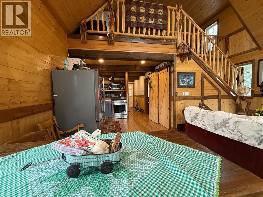 In the community of Joussard, Alberta, on the shores of Lesser Slave Lake, this charming 7-year-old story-and-a-half cottage offers a unique blend of modern comfort and rustic character. The 1,200 square foot main home features a welcoming open-concept layout where the living room, kitchen, and dining area are unified by a cozy wood-burning stove; perfect for chilly evenings. The rustic kitchen is equipped with stainless steel appliances, including a gas stove, and offers the convenience of main-floor laundry tucked away in a closet. The main floor hosts one comfortable bedroom and a full 3-piece bathroom, while a custom-crafted diamond willow railing leads you upstairs to a private loft. This secluded primary bedroom retreat features its own 3-piece ensuite bathroom, complete with a walk-in mobility shower. The property’s exceptional value is amplified by a massive 32' x 38' heated detached garage and a fully fenced, large yard. Above the garage, a versatile suite complete with a bathroom and balcony offers incredible potential for guests, family, or rental income. This is a truly special property that combines craftsmanship, functionality, and a highly sought-after lakeside location. Call today to book your viewing. (id:63190)
