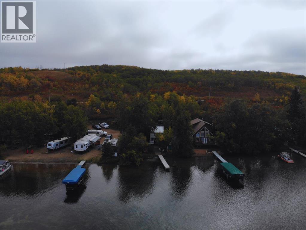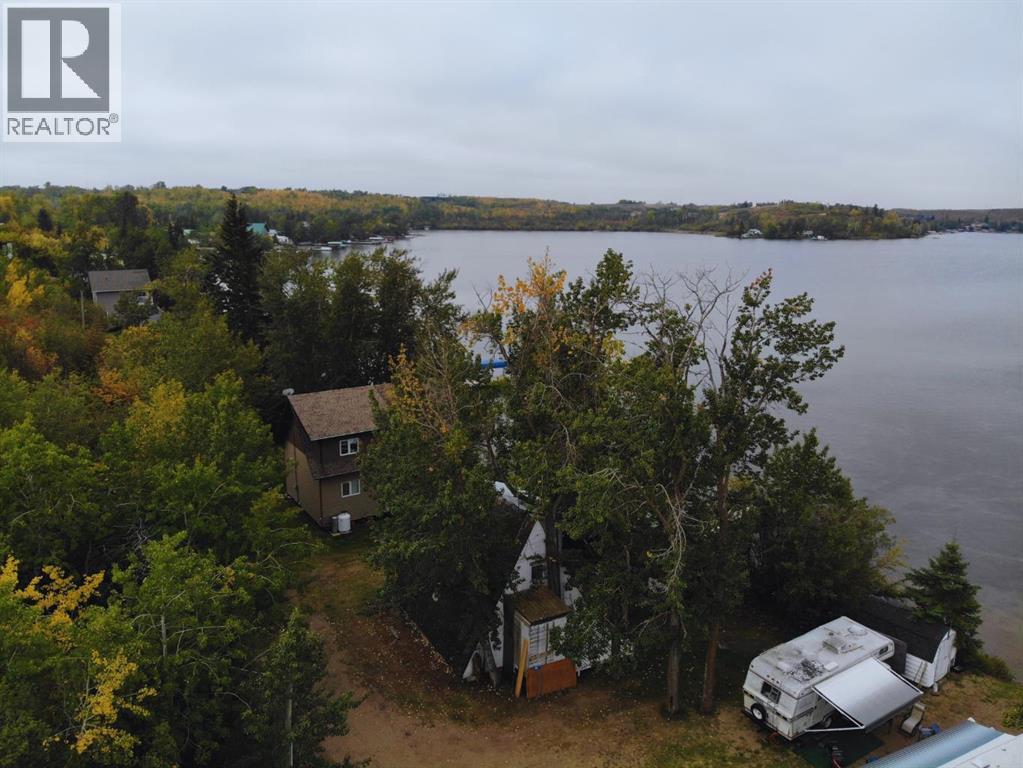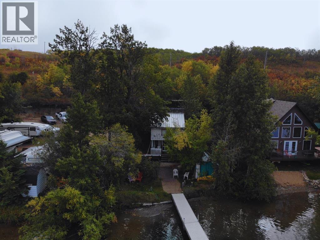 Escape to the lake and enjoy sunshine all day long in this cozy 3-season A-frame cabin nestled on the east side of Clear Lake, just a short drive from Wainwright, Alberta. Surrounded by beautiful mature trees, this property offers peace, privacy, and the perfect setting for making memories with family and friends. Some of the property highlights include but are not limited to: an open-concept main floor with kitchen, dining, and living areas – ideal for relaxing and entertaining; a loft-style second floor features two defined bedrooms within a spacious, designated sleeping area (room for the whole crew); a one-piece bathroom upstairs, plus a convenient outdoor shower house just steps from the covered front deck; a covered deck that offers a shaded sitting area for morning coffee or evening relaxation; a firepit area perfect for roasting marshmallows under the stars; a private dock (included) – just bring your boat or paddle board and parking for up to 4 vehicles. Depending on lake levels, enjoy a small beach area, and always great, sandy-bottom swimming right in front – perfect for the kids! The cabin is located on the sunny, east-side of the lake, where you’ll enjoy full sunshine all day and beautiful sunsets across the water. Whether you’re looking for a weekend getaway, a place to unplug, or a summer home base for outdoor adventures, this cabin checks all the boxes. Move-in ready and full of lakeside charm, it’s time to start your next chapter at the lake. (id:63190)