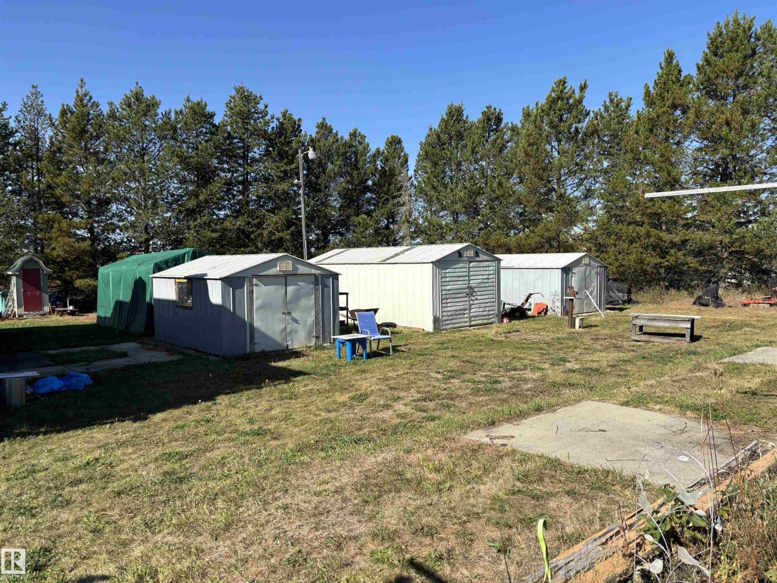 Discover your own private getaway at Vincent Lake in the picturesque summer village of Horseshoe Bay, 15 minutes north of St. Paul. This charming 1,006 sq ft two-storey home offers 2 bedrooms, 1.5 bathrooms, nestled on a massive 3.29-acre lot. The property is fully-serviced with natural gas, electricity, a drilled well (2015), and septic field (2019), creating an ideal setting for a peaceful summer retreat or comfortable year-round living. The property includes 4 large sheds to store all your toys and tools, and a 30' x 40' concrete pad which could provide a solid foundation for a future garage or workshop. Enjoy tons of space for gardening, recreation, or simply soaking in the natural surroundings. (id:63190)