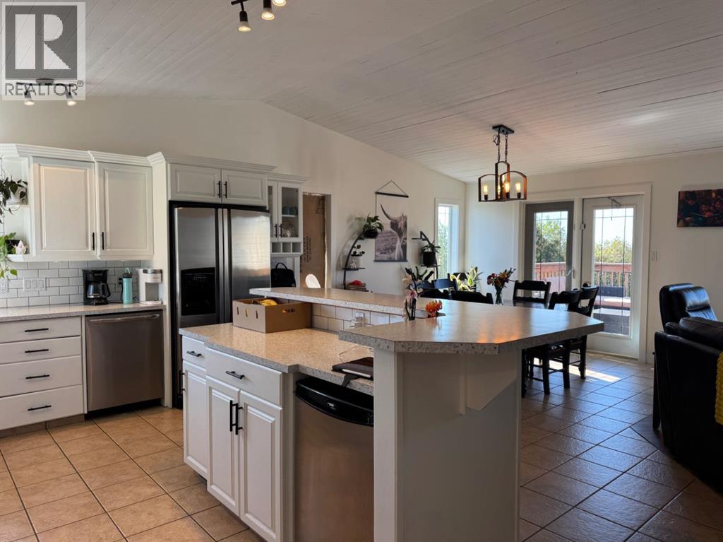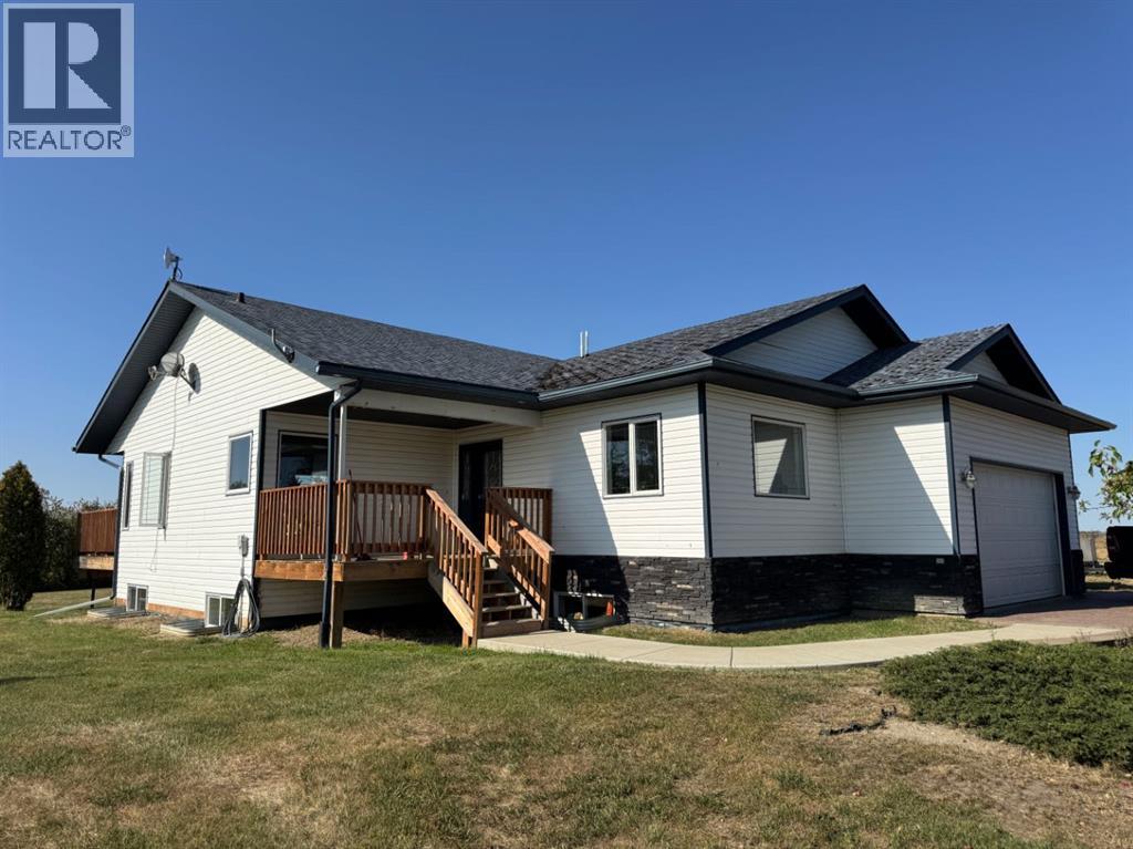 Recently Renovated Acreage Home on 20.98 Acres – Fairview, AB Just 1 km south of Fairview on Hwy 2 (across from Co-op Cardlock)This spacious 6-bedroom, 3-bathroom home sits on a beautifully developed 20.98-acre parcel and offers both modern updates and practical acreage living.Home Features:•Built in 2001 with 1,534 sq. ft. main floor + fully finished basement•Bright open-concept kitchen and living area with access to the brand-new south-facing deck•Main floor includes:•Primary bedroom with ensuite, walk-in closet, and deck access•2 additional bedrooms, full bathroom, and laundry room•Basement includes:•3 large bedrooms, full bathroom, family room, cold room, and storage•In-floor heating and brand-new vinyl plank flooring•Recent updates: fresh paint throughout, new countertops in kitchen and 2 bathrooms•Mechanical: furnace & hot water tank (2015)•Attached heated 21X24 garage•New front entry stairs and south-facing deck•On town waterOutbuildings & Yard Improvements:•40x100 Quonset – front 30x40 heated with upstairs living space & bathroom•40x60 Quonset – 1/3 concrete with mechanical room & shelving•Pole Sheds: 16x48 and 12x40 (metal siding & roofing)•Additional outbuildings: chicken coop, older pole shed, wooden granary•Approx. 10 acres of pipe & cable fencing (corrals)•4 heated watering bowls in corrals•Outer buildings serviced by 2 dugouts•Septic field installed in 2015This property is move-in ready and offers an excellent mix of comfortable family living with the space and infrastructure needed for livestock or hobby farming. (id:63190)