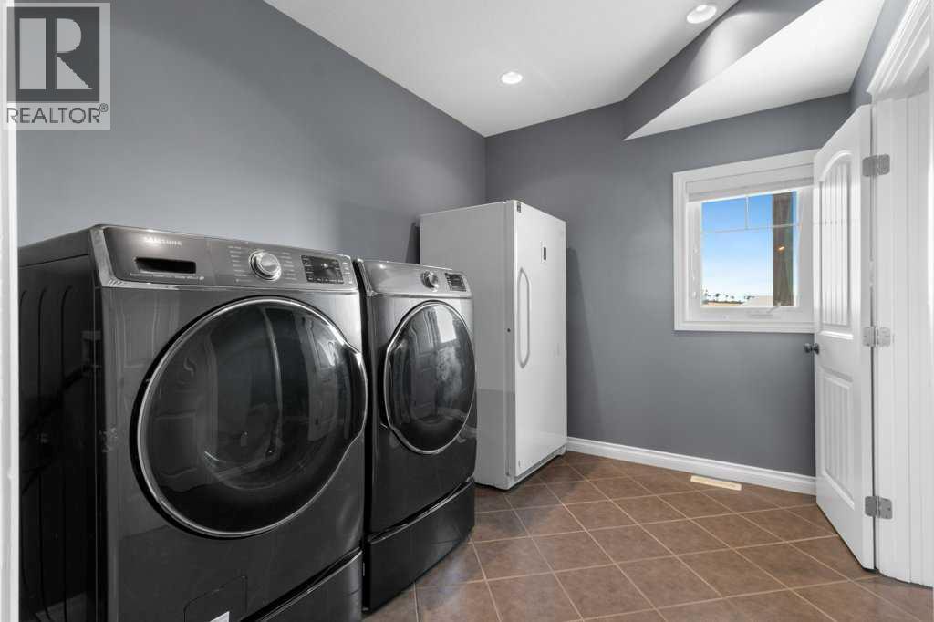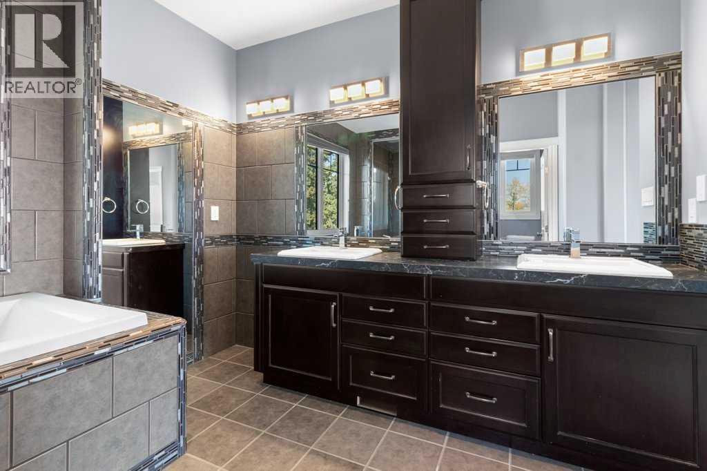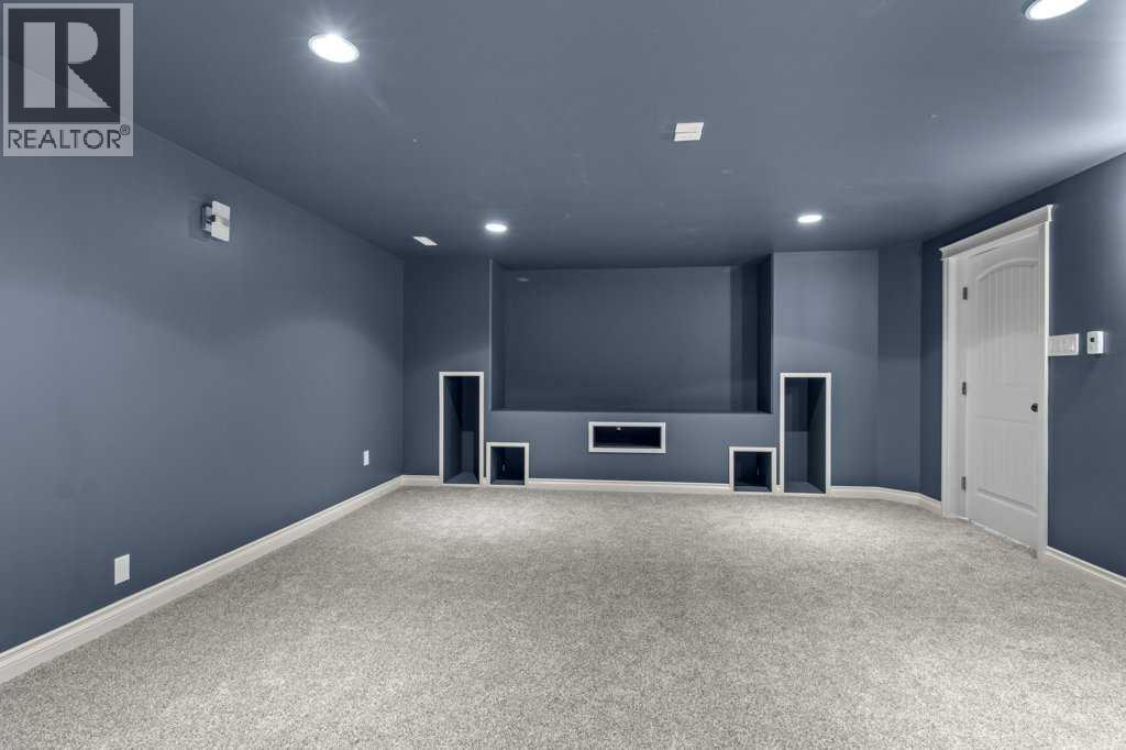 Stunning fully finished 2-storey walkout on 3.83 acres, located just minutes from Red Deer with only approximately 1 km of gravel to house (from Red Deer on the Burnt Lake Trail route). This spacious home is designed for modern family living, offering 6 bedrooms, 5 bathrooms, multiple living areas, a theatre room, and several decks with incredible views. The main floor features a grand 2-storey staircase, an open living room with a gas fireplace with oversized windows, and a chef’s kitchen with ceiling-height cabinetry, granite counters, gas range, and an extra-large island. The main floor primary suite includes a walk-in closet with laundry and a spa-inspired ensuite with jetted tub, dual sinks, upgraded cabinetry and a shower prepped for steam with digital thermostat, dual heads & body jets. Upstairs you’ll find 4 bedrooms including a second primary bedroom with a private ensuite and deck, and a large family room. The finished walkout basement offers a large rec room, theatre room, bedroom, full bathroom, and wet bar rough-in. This property boasts extensive upgrades and infrastructure: Land & Services: All black dirt removed and clay packed for a future shop (pad with water, gas, and power already run). Water and power also available at camping area. Septic includes a large 2-compartment tank with 500 ft field. 97 ft well with constant pressure system and new lines running to both house and garage. Shop: Fully insulated with concrete floor, forced air propane furnace, exhaust/roof fans, 220 & 110 wiring, mezzanine storage, and finished offices with laminate flooring.House Systems: All-weather windows & doors, Liberty security system with exterior cameras, automation wiring, and in-ceiling stereo wiring (2 speakers per room, media room prepped). In-floor heating (garage & basement) with individual thermostats. Two furnaces (main/basement + upstairs), 2 A/C units, humidifiers, large IBC boiler system with extra hot water tank and full HVAC. LED lighting throughout with exterior pot lights. The theatre room is fully insulated and soundproofed, wired for speakers and projector, all connected to a temperature/moisture-controlled media room. Additional highlights include a heated 4-car garage with drains to septic, RV pad with amp service, glass deck railings, dual electrical panels, water softener, upgraded blind package (some electric), and fresh paint. This acreage offers a rare blend of luxury finishes, thoughtful design, and long-term planning, making it ideal for a large or blended family looking for space, comfort, and convenience just outside the city. Garage is 29 x 58 and the shop is 29 x 48 plus office space of 14 x 12 and storage 15 x 12. Main level 1890 square feet, upper level 1614 square feet, lower level 1817 square feet, total developed is 5321 square feet. (id:63190)
