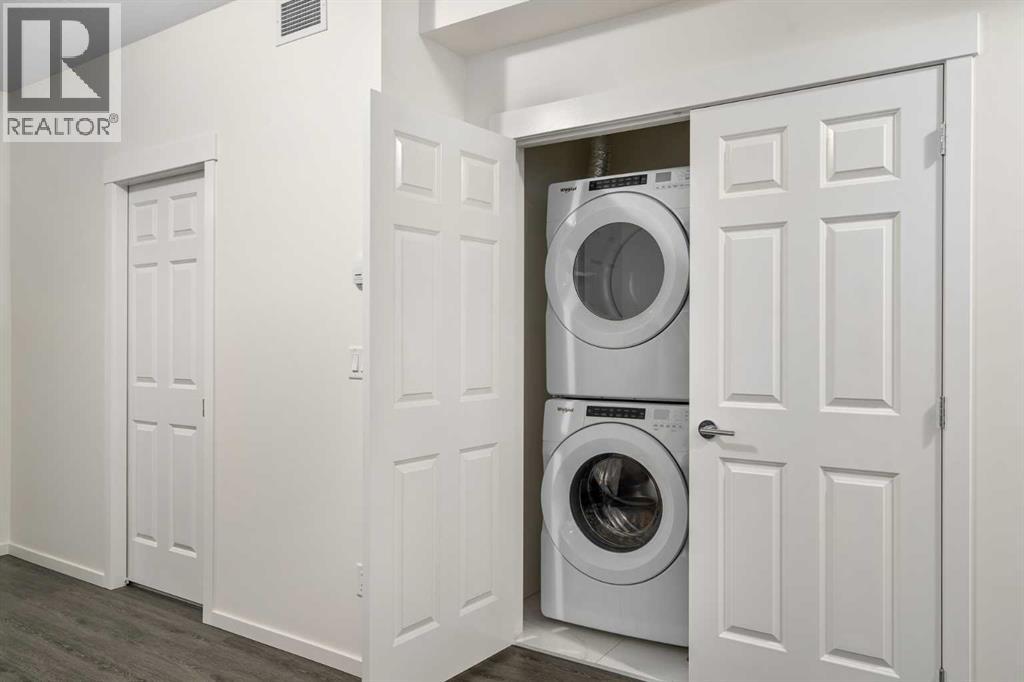 Welcome to a truly exceptional offering — a very rare CORNER EXTRA LARGE (NEARLY 1000 SQ.FT) apartment condo in the highly sought-after Legacy Park. This residence is EXTREMELY CLEAN and feels virtually BRAND NEW. Built by award-winning Brad Remington Homes, one of Calgary’s most respected and high-quality builders, this property delivers exceptional craftsmanship and attention to detail.This particular unit remained unoccupied until August 2023 and has been used only very gently since. All Whirlpool appliances are in pristine condition, and you’ll enjoy the incredible bonus of 2 UNDERGROUND TITLED PARKING STALLS — a rarity in today’s market — along with a secure storage locker ideal for tires, bikes, and seasonal belongings.Inside, you are greeted by 9' ceilings that create a sense of openness and light. The kitchen is a chef’s delight, featuring GRANITE COUNTERTOPS, extended cabinetry and abundant cupboard space. Luxury vinyl flooring flows through the main living areas, while the bedrooms are finished with lush, soft carpet for a touch of warmth and comfort. The spacious laundry room provides excellent additional storage, keeping your home organized and functional.The primary suite is a private retreat, complete with a WALKTHROUGH CLOSET with built-in shelving and a stunning, state-of-the-art 5PC ENSUITE bathroom. The second bedroom is equally impressive, boasting 3 WINDOWS for natural light and its own WALK-IN CLOSET with built-in cabinetry. Every inch of this home has been immaculately cared for, leaving it absolutely squeaky clean and move-in ready.The location is second to none — within walking distance to a vibrant shopping plaza with restaurants, coffee shops, and Sobeys, a nearby high school, and a vast park that connects to the beautiful Fish Creek Park. Two serene ponds sit just across the street, along with a network of walking and biking pathways, offering endless opportunities for outdoor enjoyment. With LOW CONDO FEES and an unbeatable combin ation of style, quality, and convenience, this home is an outstanding opportunity that must be seen to be appreciated. (id:63190)