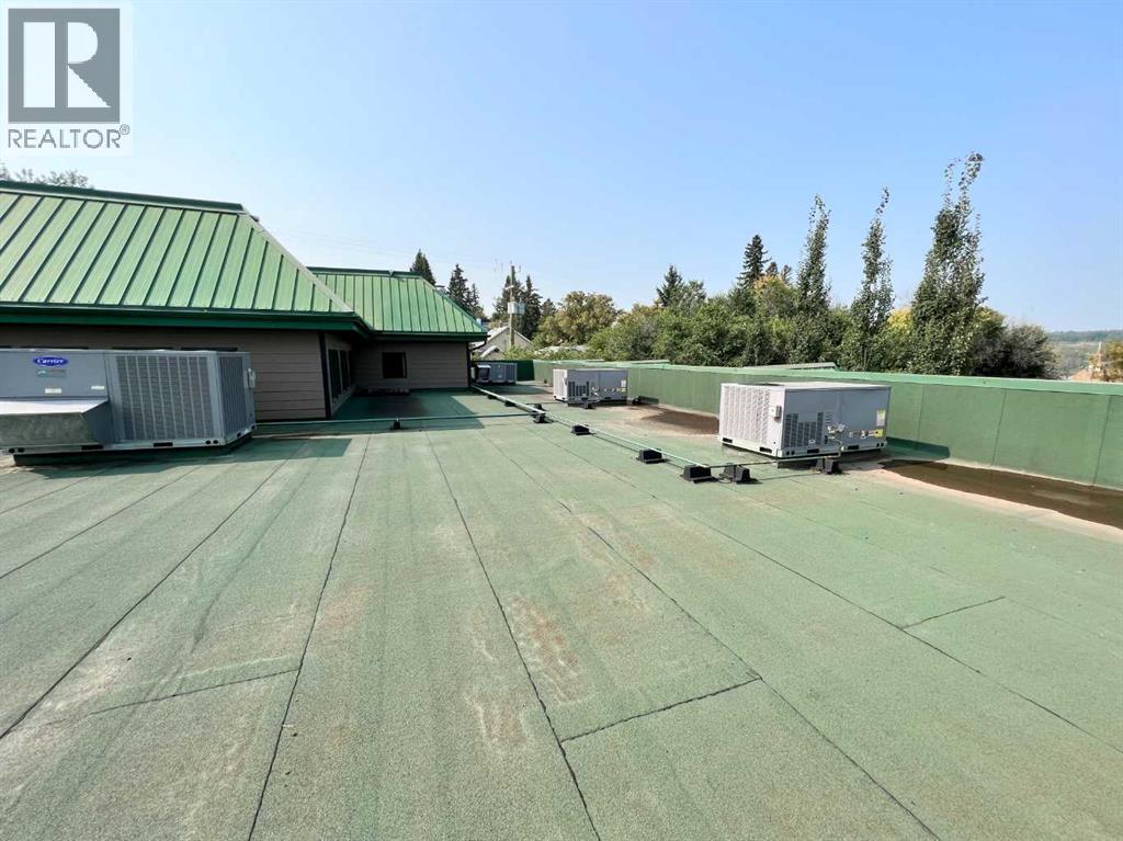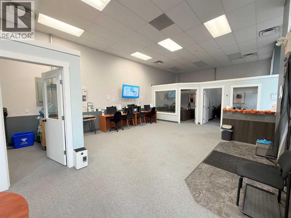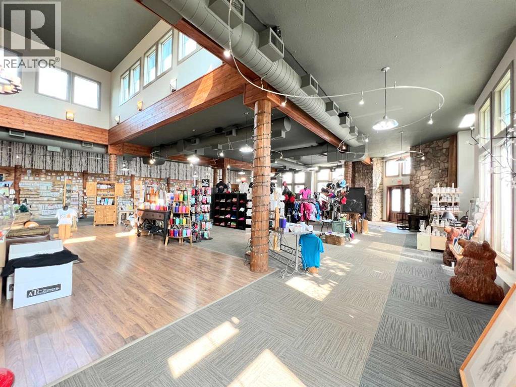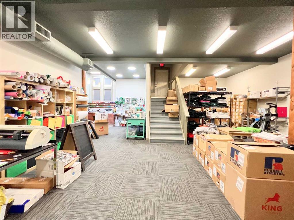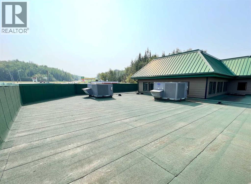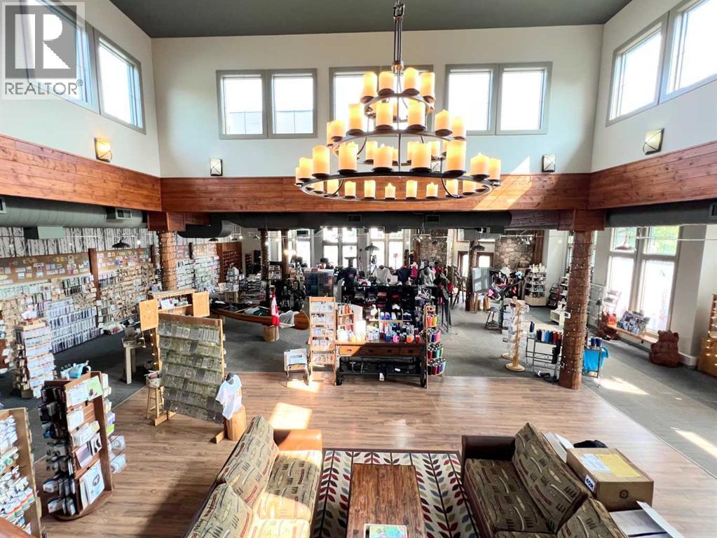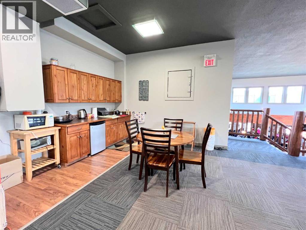 One of Athabasca's signature retail/office buildings on two corner lots with Highway 2 frontage. Offering an elevated customer experience, no expense was spared on the details of this development. 12 ft high ceilings throughout, plus additional vault in Unit A to the open second level. Unit A is just over 4700 sq ft on the main level with a 1400 sq ft mezzanine. Additional enclosed room with enhanced ventilation, currently used as a printing room. Mezzanine with kitchen is wide open to the main level, showcasing the custom built solid log staircase and railing. Both Units B and C are just under 1000 sq ft, fully open and customizable spaces, with self contained kitchen and bathroom. Prime location on main street, spacious side boardwalk. Low maintenance building has a metal roof and hardy board siding, with river rock trim. In-floor heat throughout. (id:63190)