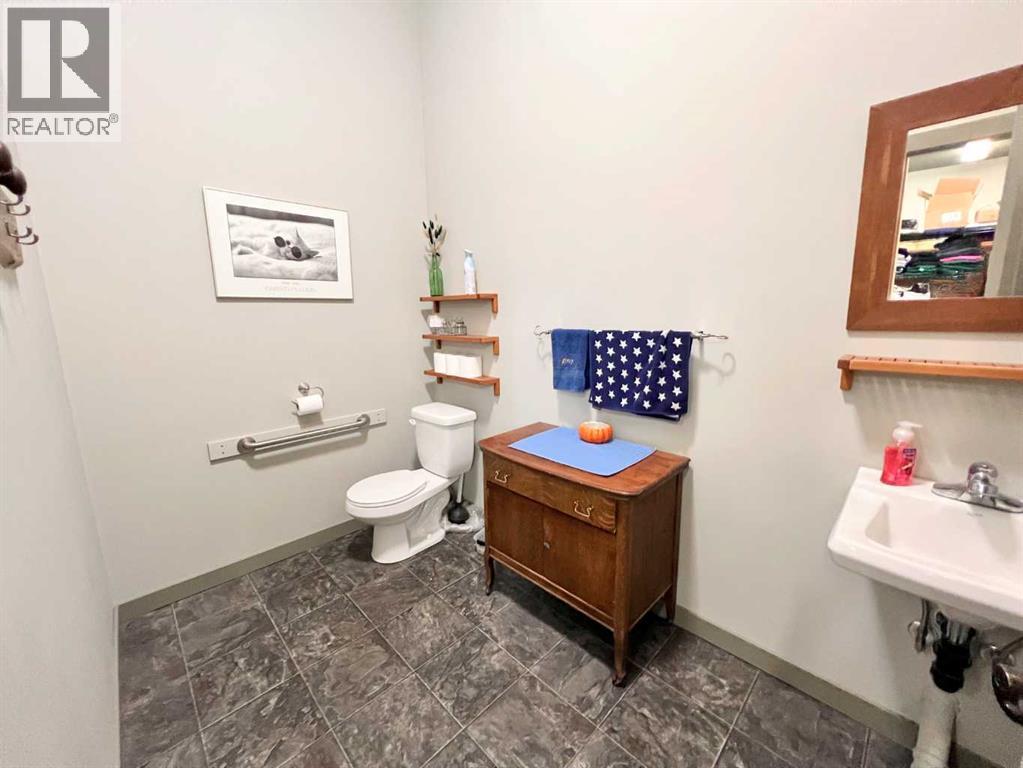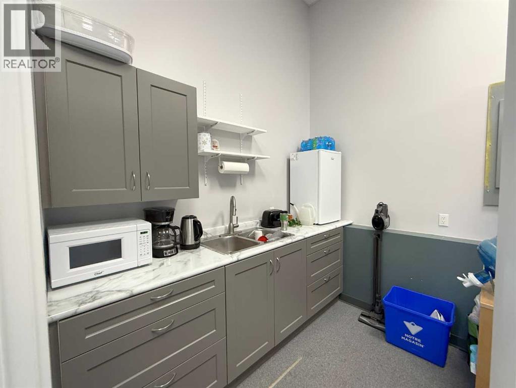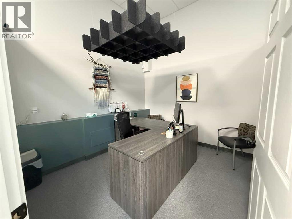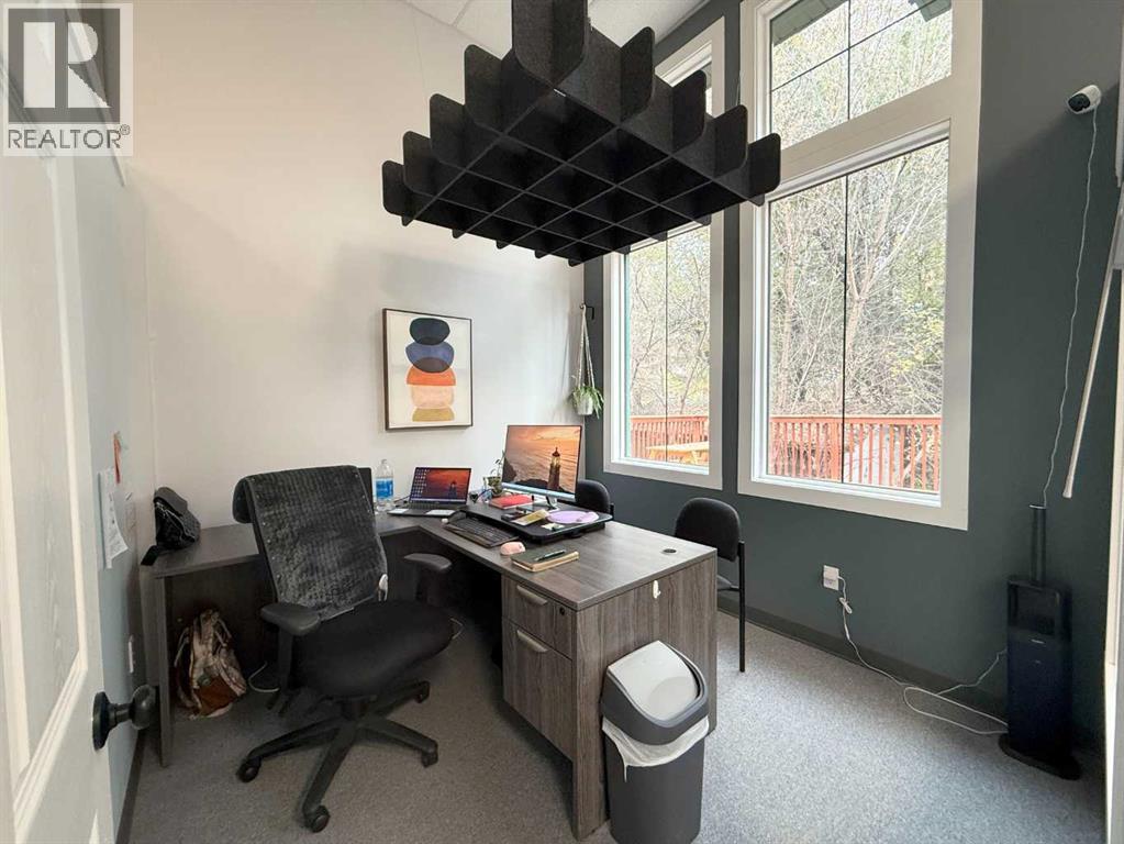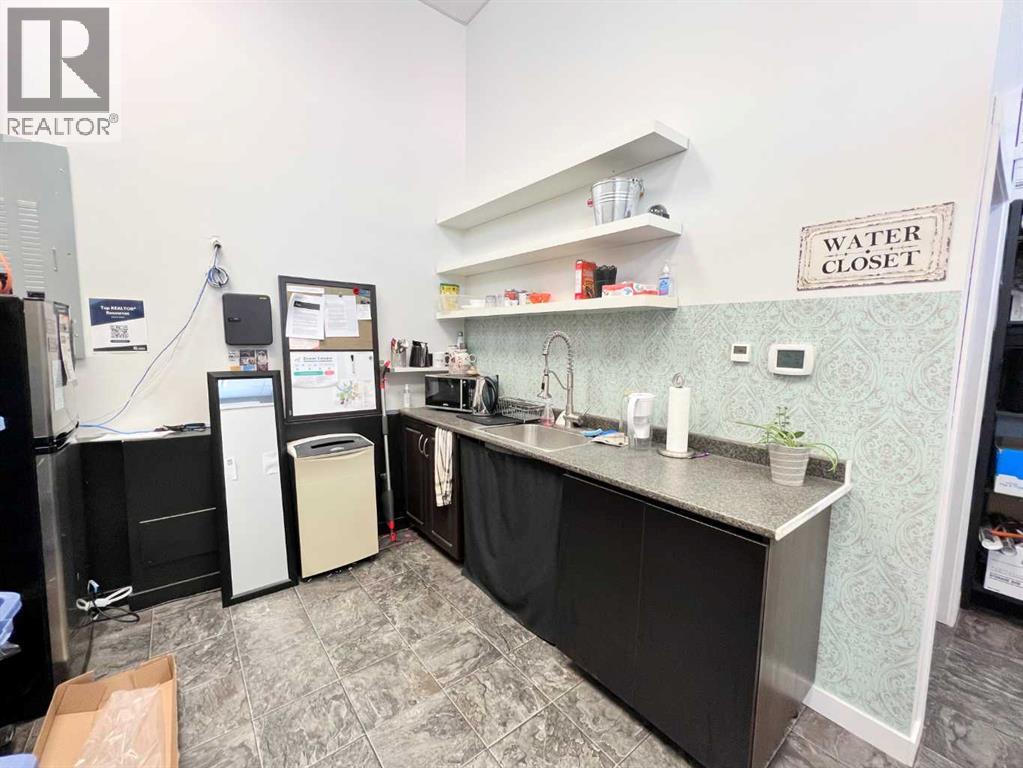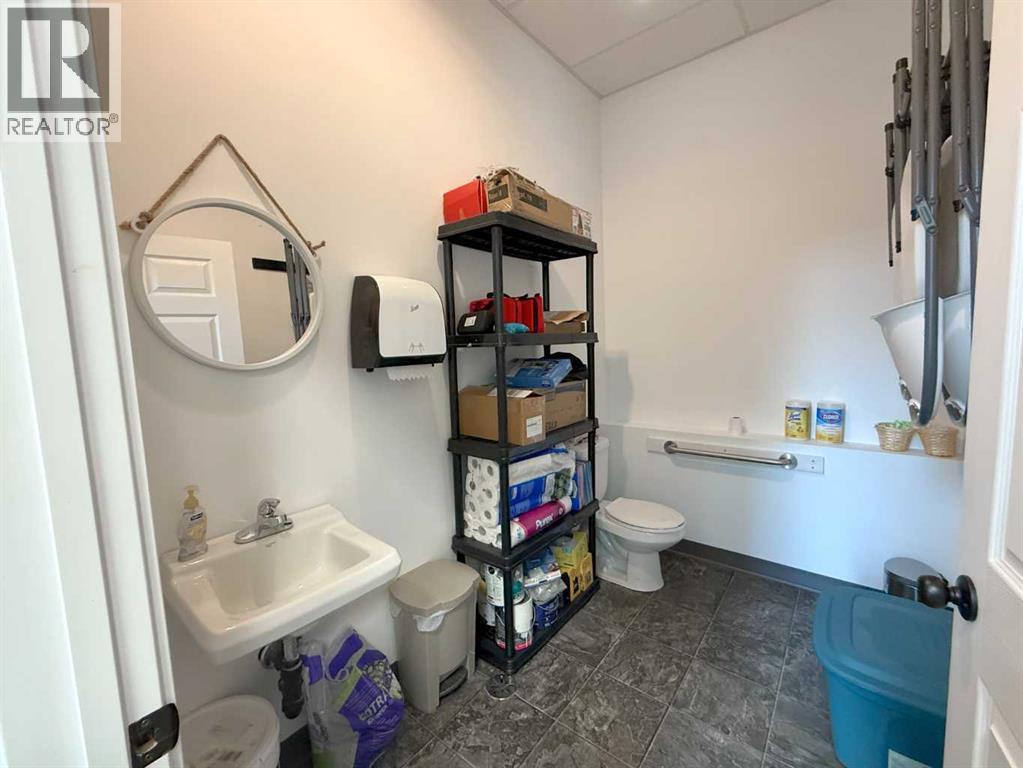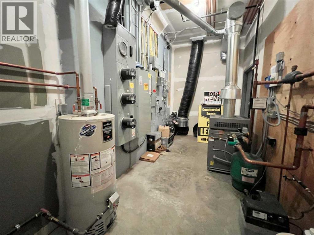 One of Athabasca's signature retail/office buildings on two corner lots with Highway 2 frontage. Offering an elevated customer experience, no expense was spared on the details of this development. 12 ft high ceilings throughout, plus additional vault in Unit A to the open second level. Unit A is just over 4700 sq ft on the main level with a 1400 sq ft mezzanine. Additional enclosed room with enhanced ventilation, currently used as a printing room. Mezzanine with kitchen is wide open to the main level, showcasing the custom built solid log staircase and railing. Both Units B and C are just under 1000 sq ft, fully open and customizable spaces, with self contained kitchen and bathroom. Prime location on main street, spacious side boardwalk. Low maintenance building has a metal roof and hardy board siding, with river rock trim. In-floor heat throughout. (id:63190)