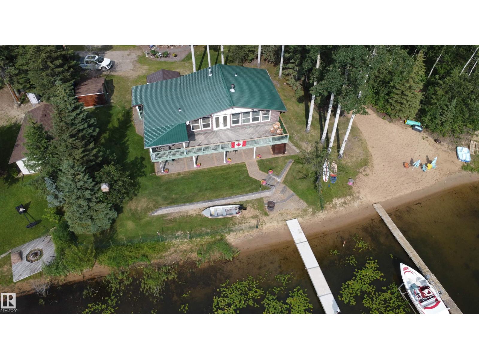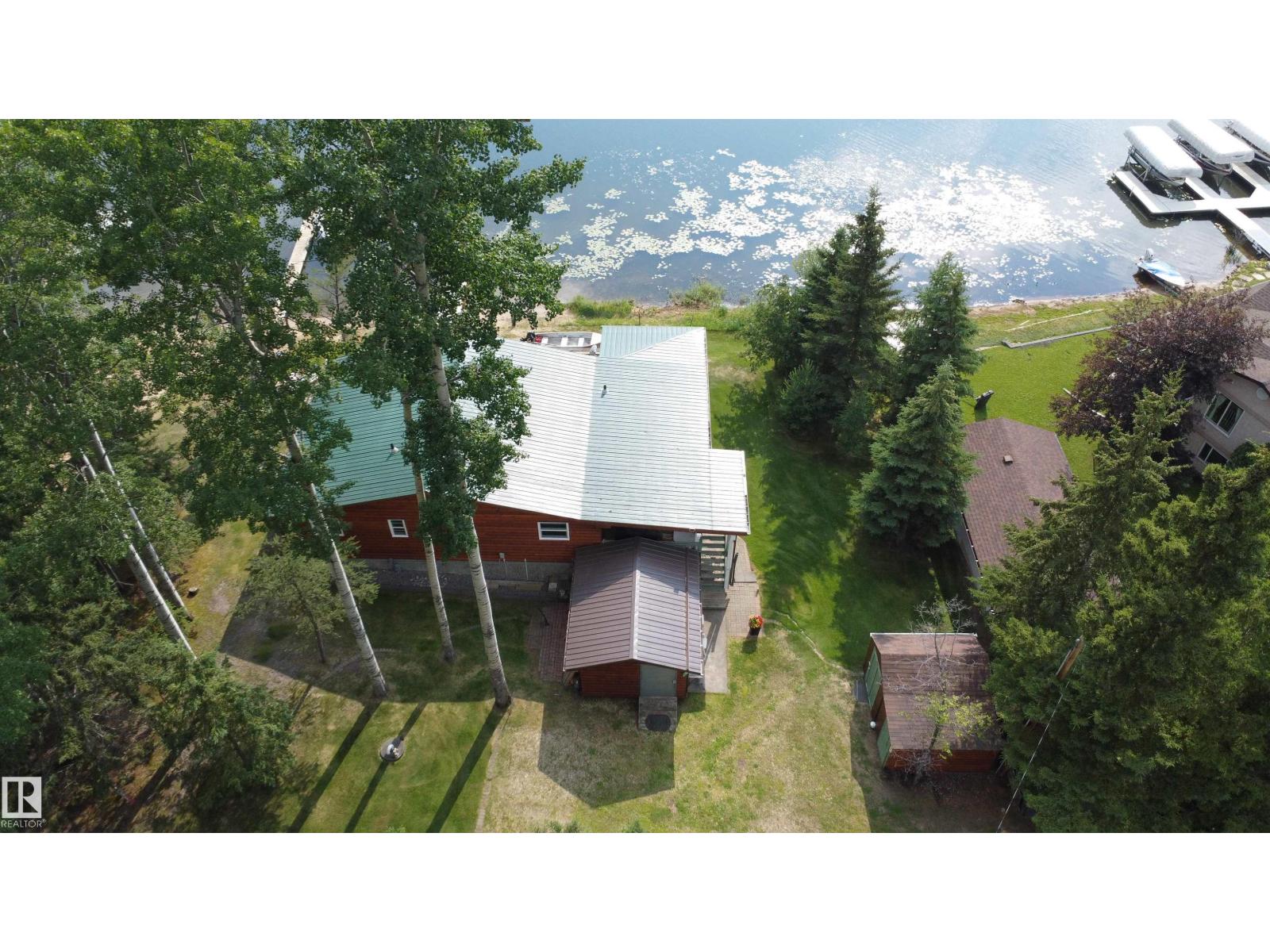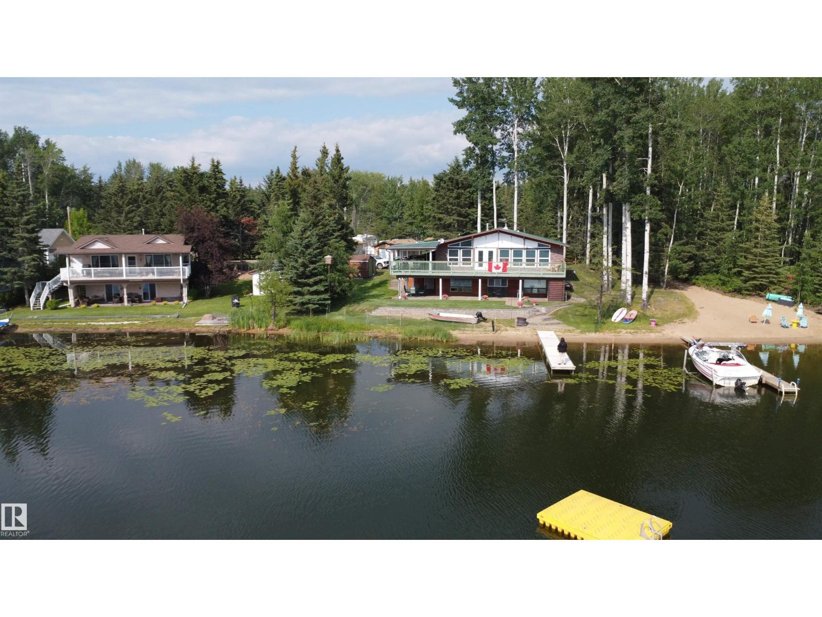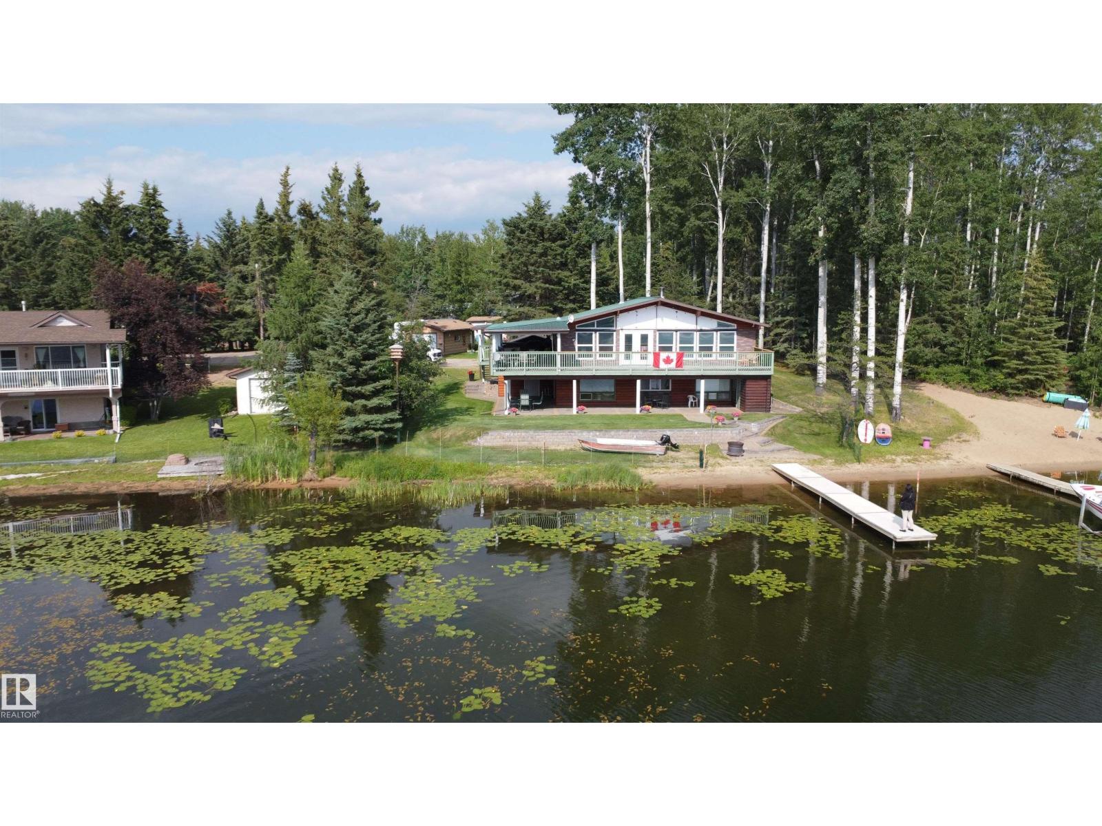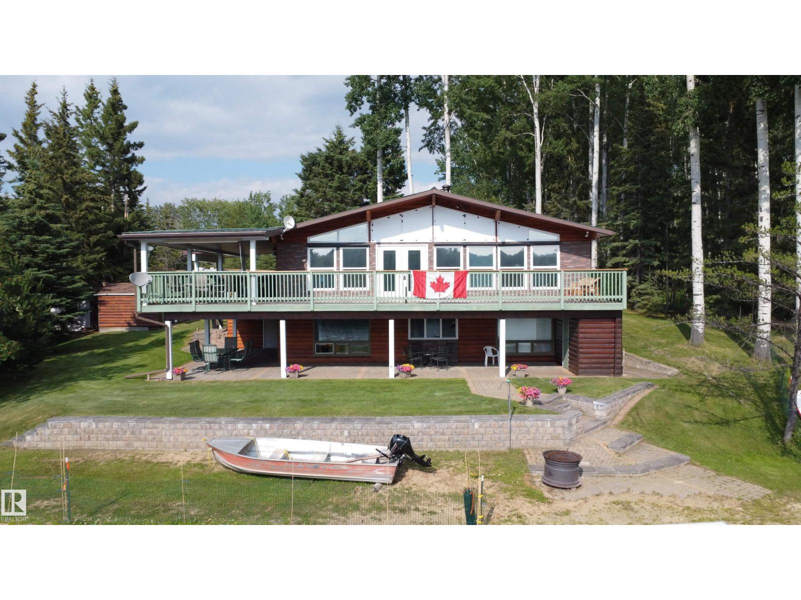 LAKEFRONT GETAWAY AT LONG ISLAND LAKE—just 25 min N of Westlock! This clean, spring-fed lake is perfect for boating, fishing & year-round fun with crown land access to the North. Enjoy stunning views from the massive wrap-around deck (partially covered) or relax on the covered patio below. Inside, the main floor features vaulted wood ceilings, a bright kitchen with eat in nook, living room with floor to ceiling stone fireplace, 2 bedrooms & 3-pc bath. The walkout basement offers a huge family room, bedroom with 3-pc ensuite, bonus room (currently used for additional bedroom) & mechanical. Outside you’ll find a workshop with workbench & shelving, storage sheds (to house lawn equipment, etc) & beautifully landscaped yard with retaining wall leading to your own sandy beach. Numerous upgrades include metal roof, vinyl windows, exterior doors, etc. Property is well maintained and move in ready. An ideal spot for family gatherings or weekend escapes—don’t miss this rare lakefront opportunity! (id:63190)