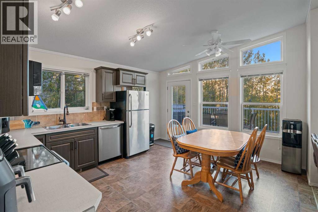 Life at the lake feels different at Braseth Beach. This gated community on Buffalo Lake’s north shore offers a sense of welcome and a balance of peace and recreation. Here, you’ll find a home that is completely turnkey—offering everything you need to enjoy lake life full time or as the perfect seasonal escape, without paying the premium of lakefront pricing. Inside, the layout is designed for easy living. An open-concept kitchen, dining, and living area flows beneath vaulted ceilings, giving the space both charm and openness. The wall of windows draws your eye to the pond just beyond and captures the kind of sunsets that turn evenings into something special. It’s no wonder this is known as the “Sunset Home”—you’ll find yourself pausing each night to watch the colors reflect across the water. With three bedrooms, including a primary suite complete with a private four-piece ensuite, there’s plenty of space for family or friends. The home’s square footage is comfortable and manageable, and AC is in place to keep things comfortable after a long day in the summer sun. Outdoors, the west-facing deck is where you’ll spend evenings unwinding, with plenty of room for patio furniture and guests. The oversized, heated double garage is a true bonus, with space for vehicles, lake toys, and even a Tesla charger already in place. Positioned at the end of a quiet close, you’ll enjoy privacy and a slower pace, yet still be just a short walk to the community’s sandy beach, private playground, and boat launch. The setting is enhanced by open pasture views and a warm, neighborly atmosphere. For essentials, Bashaw is only a few minutes away, making this location as practical as it is beautiful.This is more than a house—it’s a lifestyle, a gathering place, and a chance to experience all that Buffalo Lake has to offer, every season of the year.Here, the lake is more than a backdrop—it’s a lifestyle you can step into, ready-made, from the moment you arrive. (id:63190)