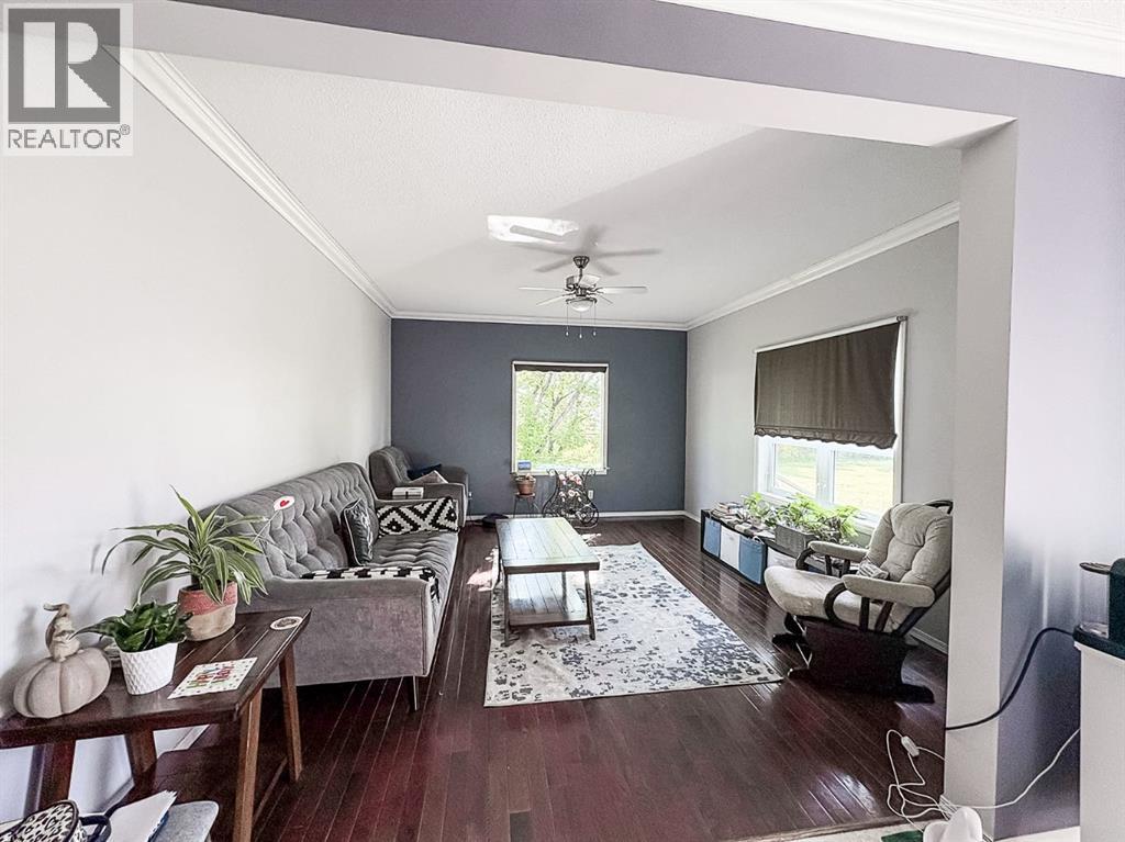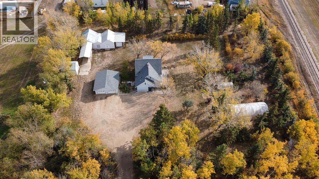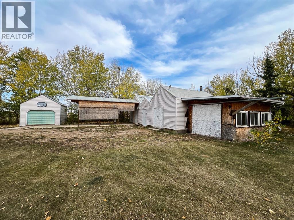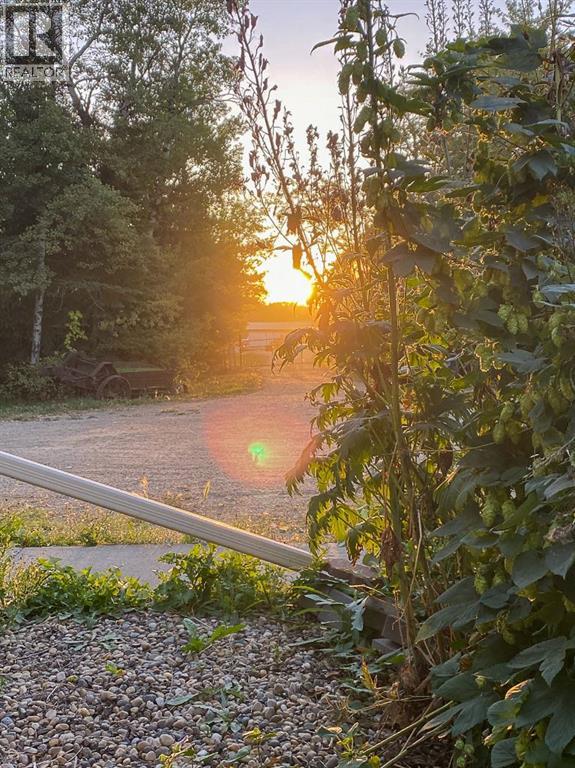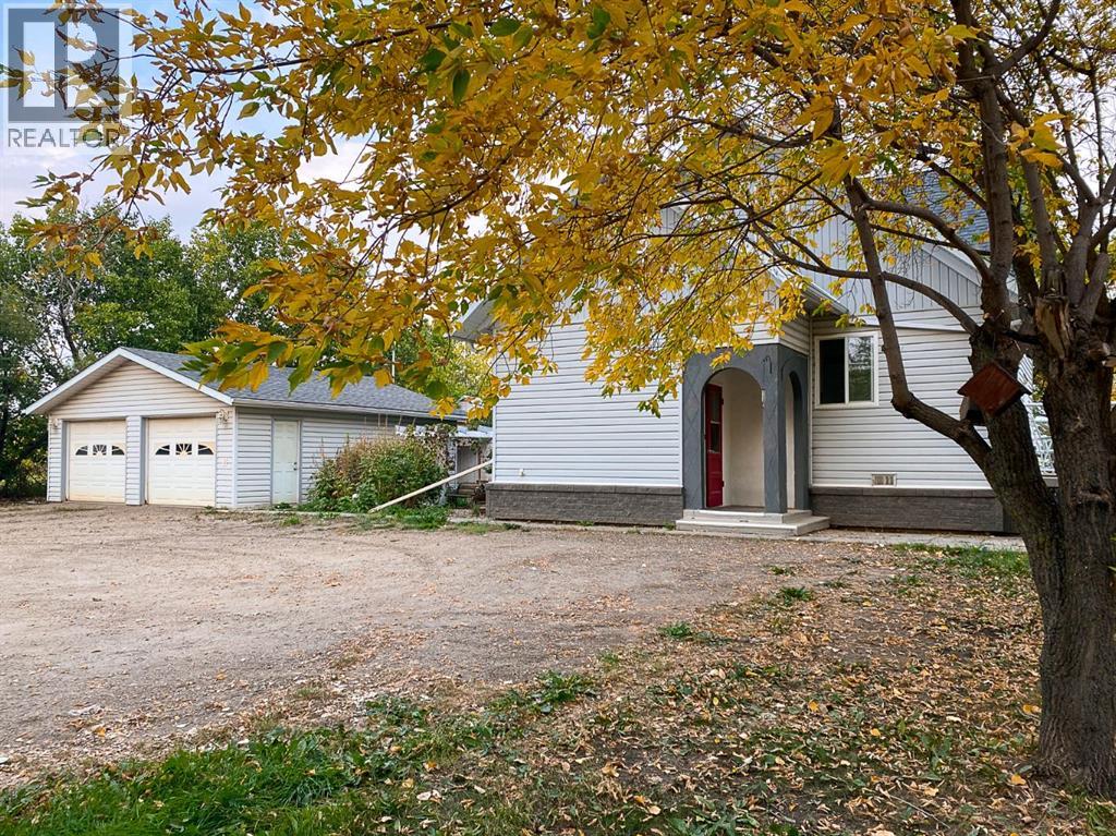 Welcome to a beautifully updated home that combines the character of a farmhouse with modern comfort. The open-concept kitchen, dining, and living spaces flow effortlessly, with patio doors leading to a sunny south-facing deck. The kitchen boasts newer appliances, a modern backsplash, updated counters, and the timeless touch of hardwood floors that continue through the living room and hallway. Upstairs, a bright landing filled with natural light welcomes you to two cozy guest bedrooms and a 3-piece bathroom, complete with charming dormer windows and angled ceilings. The fully finished basement adds even more living space, featuring a spacious family room, an additional bedroom, a bathroom, a laundry area, and a temperature-controlled cold storage room. Outdoors, the yard feels like a private sanctuary, surrounded by mature trees and brimming with fruit trees, perennials, saskatoons, raspberries, chokecherries, grapes, and a garden ready for planting. Enjoy summer evenings around the firepit, or put your green thumb to work in one of the two greenhouses, including an impressive 20’ x 40’ structure. For the hobbyist or handyman, this acreage is a dream come true. Multiple outbuildings provide ample dry storage, along with two large heated shops. One with 220 wiring and gas heat, the other with both gas and wood heat. Offering town water, privacy, and 2.5 acres of beautifully maintained land, it’s the perfect blend of country living and in-town convenience. Don’t miss this rare opportunity to enjoy acreage life without compromise! (id:63190)