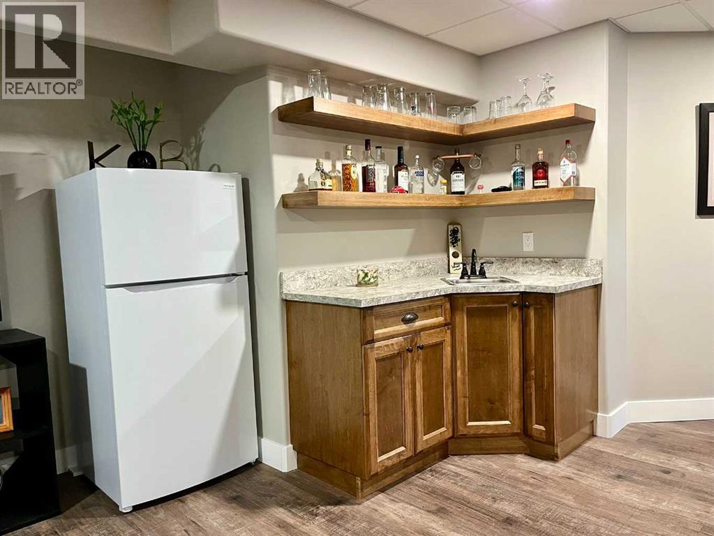 Quality built bungalow with parking and space to tinker for any hobbyist or car enthusiast! This 1366 sq ft home built in 2020 offers 4 bedrooms, 3 bathrooms plus a stunning custom kitchen with stainless steel appliances, luxury vinyl plank flooring and a generous sized living room. An entertainment area downstairs features a wet bar with open shelving, cabinet space plus a large family room for everyone to spread out. This home saw extensive planning and nothing was overlooked- from the spray foam insulation and ICF Block foundation, to triple pane windows, to a built-in ironing board, and built-in jewelry organizer, plus a built-in safe! The ensuite, basement and garage all feature in-floor heat; and stay cool on those hot summer days with central air-conditioning. Ample storage within the home, in the attached double garage, in the 8x12 shed PLUS a 26x34’ detached heated shop in the back with alley access. The shop has 14’ walls, with a mezzanine and 2 piece bathroom. Two overhead 12x12’ doors offer flexible parking for 2 or 3 vehicles and is fully tinned inside with a floor drain, 220 power and an RV plug. Outside, you can enjoy your lawn out front with a nice Trex decking porch; and you can enjoy your maintenance free yard out back with a Trex deck sturdy enough for a hot tub. (id:63190)