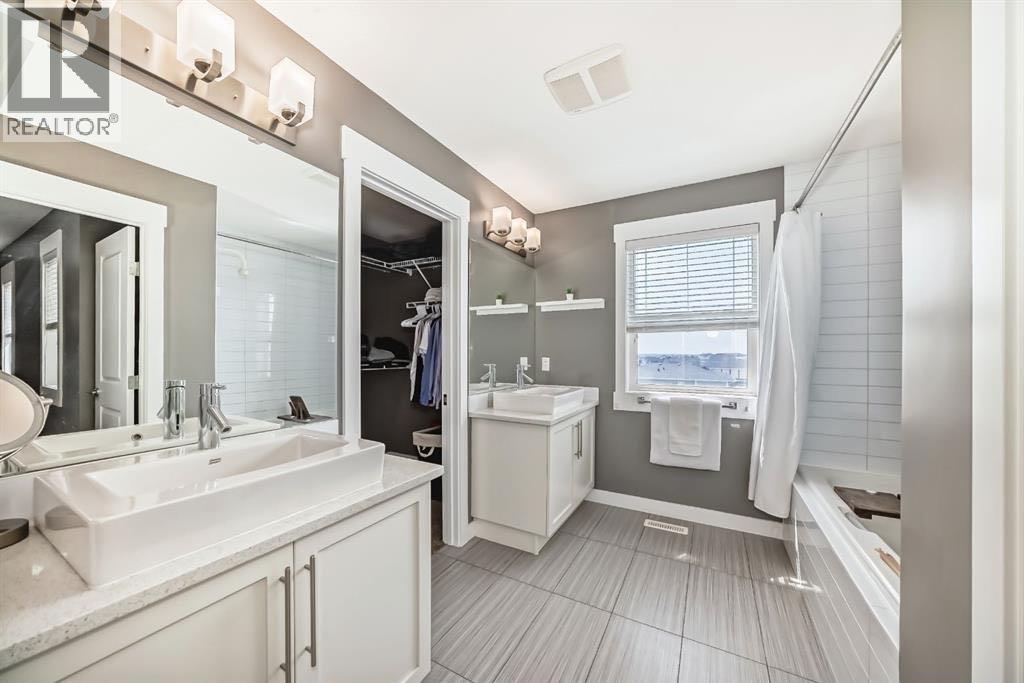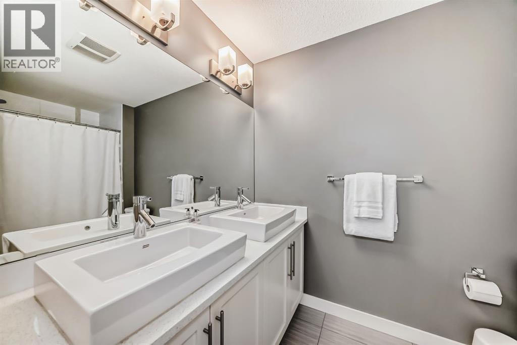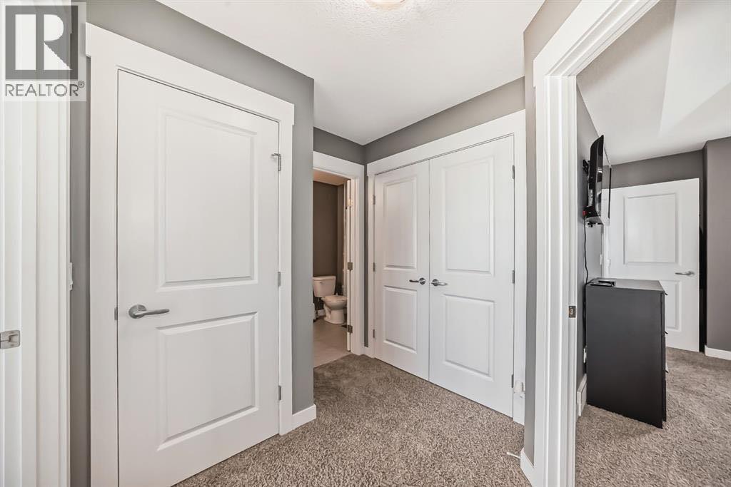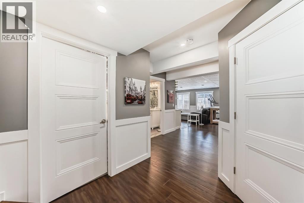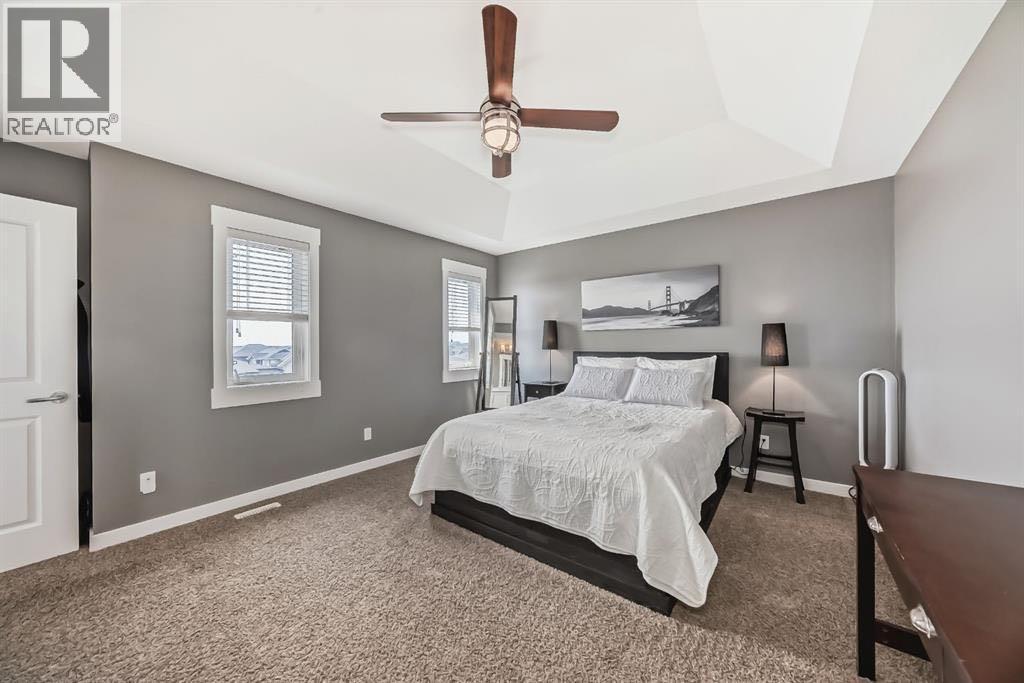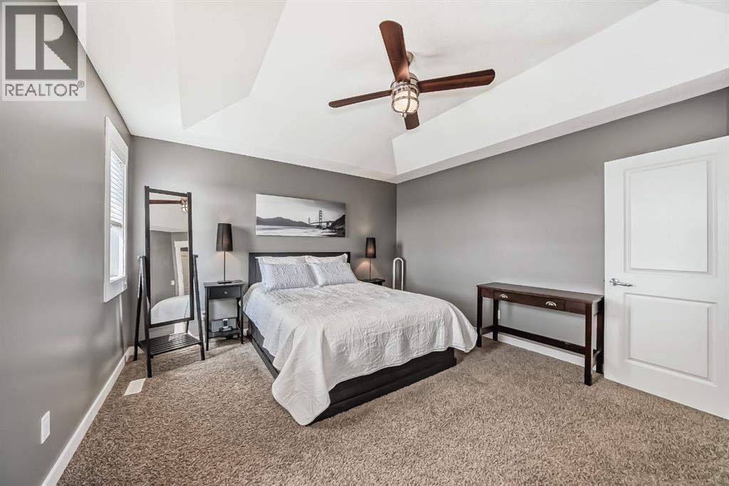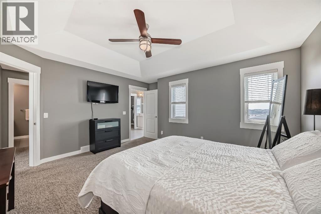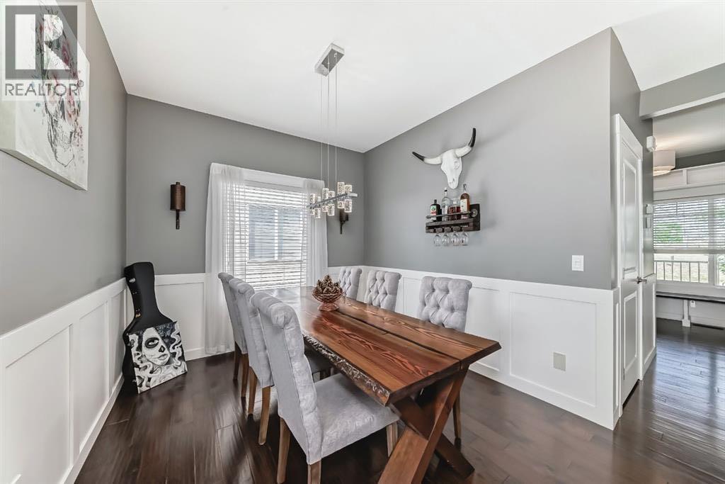 Stunning Duplex in Chestermere’s Rainbow Falls Welcome to a world of elegance and modern luxury in this breathtaking duplex, nestled in the heart of Chestermere’s coveted Rainbow Falls within the vibrant Lake Community. Meticulously crafted, this showhome-worthy residence dazzles with thoughtful upgrades and a fresh, inviting aesthetic. Exterior & Curb Appeal Charming Front Patio: Full-length patio overlooks a lush green belt, offering a warm welcome. Landscaped Backyard: Low-maintenance design with ample lounging areas for relaxation. Extended Back Deck: Complete with privacy fencing, perfect for outdoor entertaining. Oversized Double Garage: Insulated with extra-high doors, ideal for larger vehicles like trucks. Main Level Inviting Foyer: Features custom-built bench seating and intricate woodworking. Gleaming Hardwood Floors: Flow throughout, leading to a versatile flex room (office, bedroom, or more). Gourmet Kitchen: Ceiling-height white cabinetry Walk-in pantry Upgraded stainless steel appliances & gas range Expansive quartz island for prep and gatherings Sunlit Living & Dining Areas: South-facing for natural light, with a sleek gas fireplace and elegant mantel. Upper Level Primary Suite: Expansive with coffered ceilings Spa-like ensuite with dual vanities Walk-in closet with locking door for valuables Additional Bedrooms: Two generously sized rooms for flexibility (id:63190)