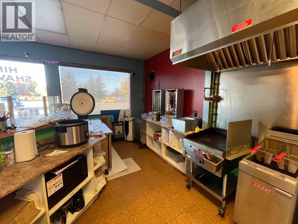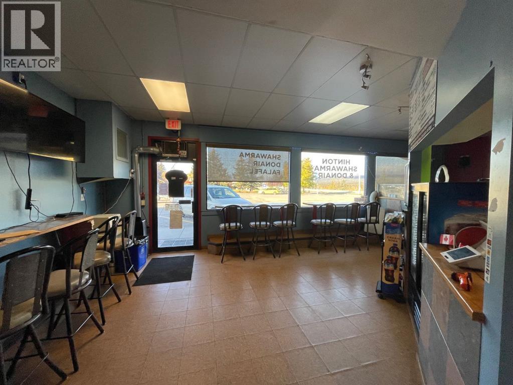 Business Only Sale. Hinton Sharma & Donair is located in the Green Square of Hinton AB, a high traffic area just off Highway 16, located just 15 mins away from Jasper National Park. Offering a variety of take out food with a seating area this business is located in the front of a hotel with its own access to outside as well as the lobby and is located next to a bar. All equipment included in the sale of the business (grill, deep fryers, small fridge deep freezer etc). New owner to assume lease, 5 year lease renewal signed December 1, 2024. Lease rate includes additional rent, utilities paid separately. (id:63190)