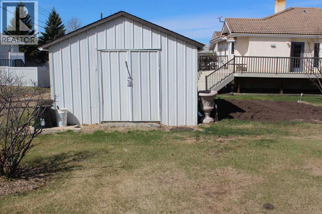 In the perfect location, now for sale, is this beautiful custom-built home is move in ready and perfect for the homeowner who wants comfort and style! It is situated on the northeast end of town just steps to our new hospital and across from the Millennium playground and splash park. Pride of ownership is evident as you step into this delightful bungalow. You will be impressed with the open dining area with large windows and the practical but bright kitchen with pantry. It leads into the formal dining and living room area. Here the openness with large windows provides a warm and welcoming feeling. Step out onto the wrap around deck for your relaxing coffee or the perfect place for hosting parties and family gatherings on those warm summer days. This property features 3 larger sized bedrooms, and a beautifully set up main floor laundry room with cabinets. The master bedroom comes complete with a 3-piece en-suite and large closet space. The basement is fully developed with a large family room, office area, a 4-piece bathroom, bedroom, and good-sized cold room. The in-floor heat makes this space warm and cozy in the winter. The attached double car garage has in-floor heat, plenty of space for parking and extra storage. This home has been newly painted and new led lights throughout! Stepping outside, the beautifully landscaped yard with underground sprinkler system has plenty of shrubs, flowers and garden space to provide a peaceful oasis. Seller is motivated and open to reasonable offers. Book your appointment today! (id:63190)