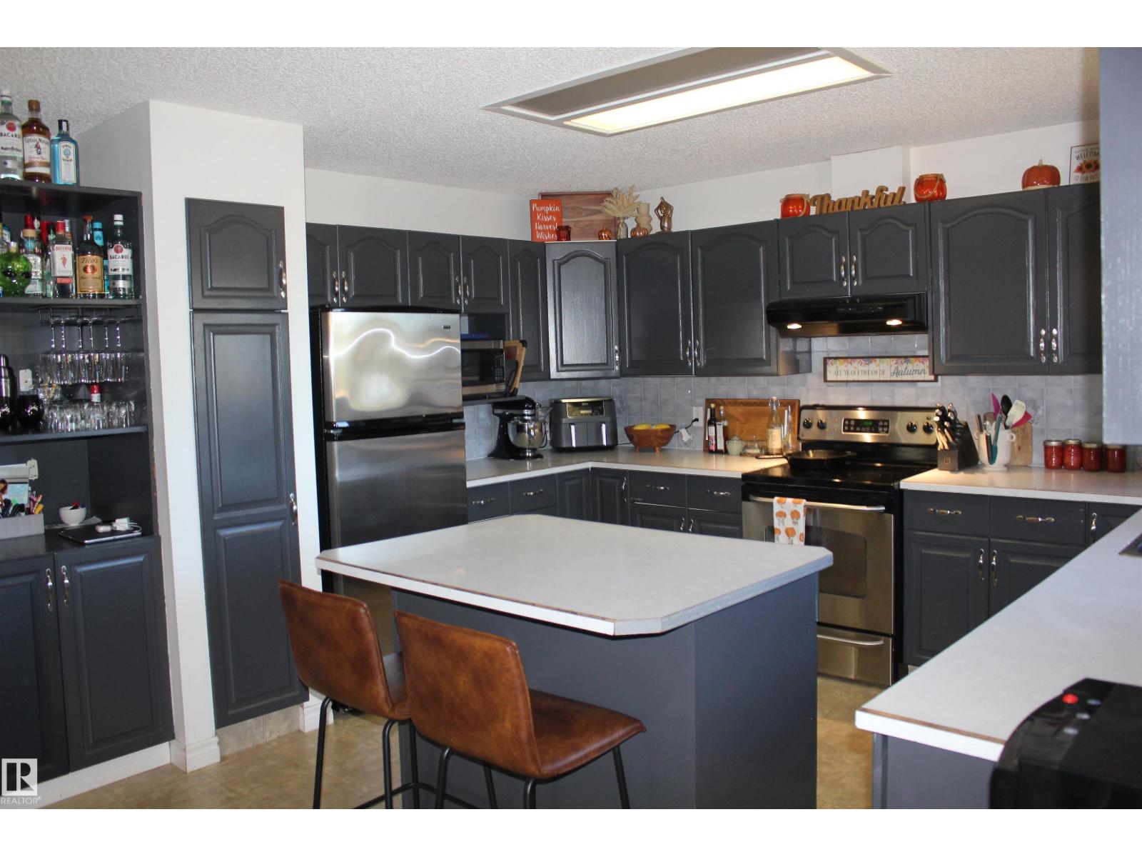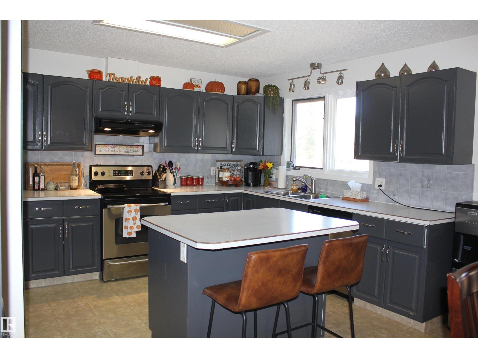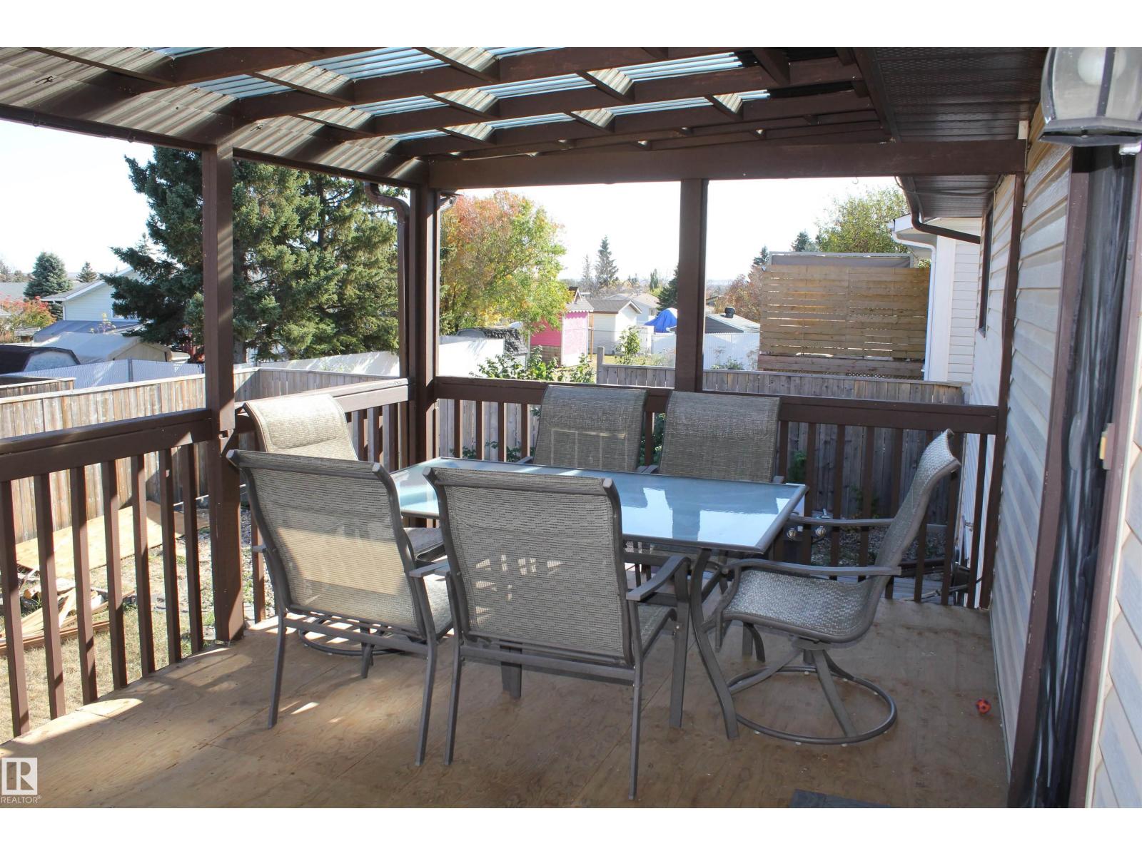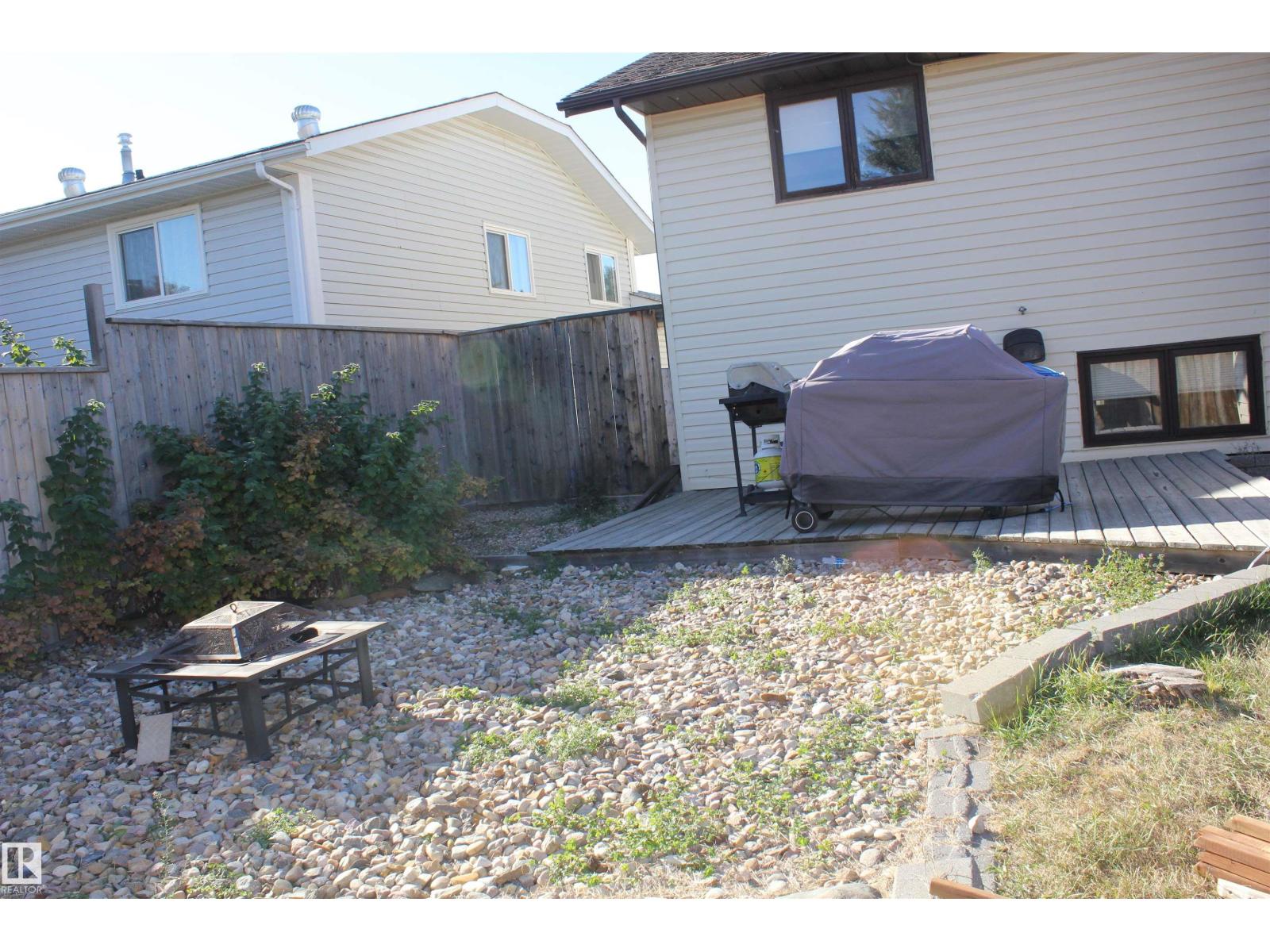 Welcome to the perfect family home in Elk Point. This 1987, 1269 sq ft home is located on a corner lot in a quiet crescent. With five bedrooms and three baths there is room for everyone. The large open concept kitchen, with an island and lots of cabinetry and a good size dining area can accommodate a growing family PLUS there is access to the east facing covered deck. On the main floor is 3 bedrooms and two baths, including a 3pc ensuite and a sunken living room. The fully finished basement boasts a large family room, 2 more bedrooms with large windows, a 3pc. bath, large laundry/utility room with a sink, cupboards and a hook-up for an electric stove, a cold room and tons of storage. To provide warmth and comfort on both levels is a boiler (2012) for hot water heat and under slab heat. The double attached garage has a workshop area and a large garage door. The backyard is fully fenced with 2 gates and provides a private sitting area with a fire pit area and storage under the deck. (id:63190)