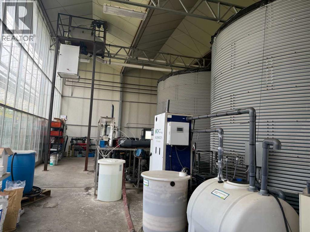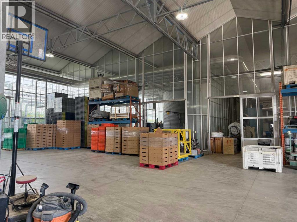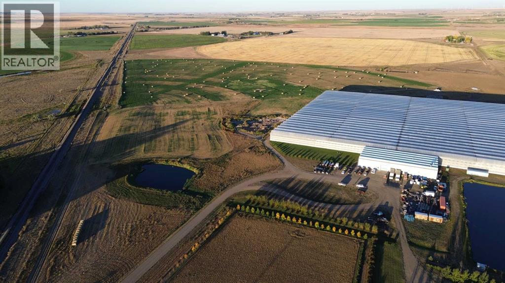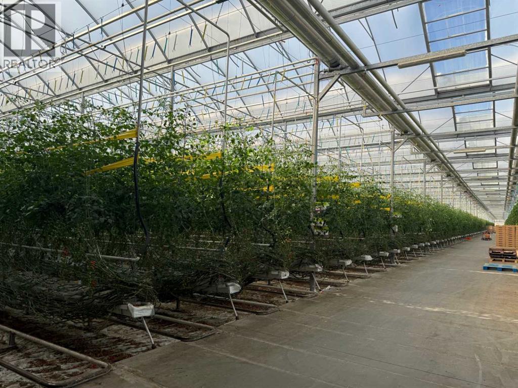 Modern 10-Acre Greenhouse Facility on 93 Irrigated Acres – Near Medicine Hat, Alberta. Outstanding opportunity to acquire a modern, large-scale greenhouse operation located just 15km from Medicine Hat. This 93-acre irrigated property is zoned Horticulture, offering significant room for expansion and future development. The centerpiece of the property is a state-of-the-art 10-acre (419,328 sq. ft.) Venlo-style poly greenhouse featuring 26 bays (24’ x 672’ x 21’ gutter height) designed for efficient, high-output production. The operation is supported by an 84’ x 170’ Venlo shop that houses the boiler and irrigation rooms (separated by glass walls) and includes a fully air-conditioned office, accessible washrooms, lunchroom, and mezzanine—all built to commercial code standards. A 17’ x 11’ walk-in cooler provides additional storage capacity. The water management system is designed for sustainability and efficiency. Rainwater is collected from the greenhouse roof and directed to a 5,000,000-gallon dugout, which is replenished via the SMRID system during summer months to ensure ample supply through the winter. Heating is provided by two 800 HP Crone boilers with Zantingh burners, distributing heat through an integrated pipe and rail system that doubles as transport for electric and hand carts. Key operational highlights include:-CO2 capture system improving plant growth and heat efficiency-Central inflation system for optimal insulation-Argus Titan climate and irrigation control software with 24-hour support-Backup diesel generator with automatic switchover-Fog cooling system for summer operation-Two 41,000-gallon water silos (fresh and recirculated) with advanced filtration-Electric, hand, and maintenance carts included. The property also features a modern Valley pivot with pumping unit irrigating approximately 40 acres of hayland, and a wheel line with PTO pump servicing an additional 10 acres. A 2007 mobile home (20’ x 76’, 1,520 sq. ft.) provides comfortable on-sit e accommodation with 3 bedrooms, 2 bathrooms, central air conditioning, and a 14’ x 24’ deck—ideal for staff housing or management use. Currently employing approximately 35 workers through the Foreign Worker Program, the operation packages its produce through Redhat Co-op in Redcliff, located just 22 km away. The property is easily accessible, with a paved road within 800 meters of the entrance. This well-maintained and fully equipped facility represents a rare opportunity to acquire a turnkey commercial horticultural enterprise with modern infrastructure, expansion potential, and excellent logistics in a prime Southern Alberta location. (id:63190)