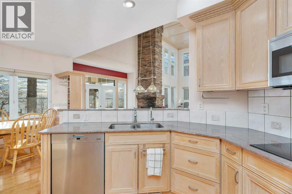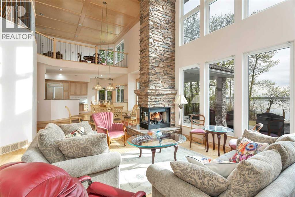 Welcome to this rare opportunity to purchase this highly sought after Birchcliff home on the sunny side of Sylvan Lake! This stunning 2 storey home on a 75 x 213 lot offers breathtaking panoramic views and endless possibilities for lakeside living. This exceptional home boasts 2 primary bedrooms with ensuites and both rooms feature amazing SW views of the legendary Sylvan Lake Sunsets. This beautifully crafted home featuring soaring ceilings, rich wood detailing, granite countertops and elegant hardwood floors throughout. The upper family room and great room feature serene lake views from the expansive windows that flood the space with natural light, or relax by the cozy fireplace on cooler evenings. Step outside to the covered deck, gas fire pit, perfect for entertaining, unwinding, or simply soaking in the natural beauty of your surroundings. With plenty of space to expand or customize, this property offers incredible potential for a luxurious year-round residence or a weekend retreat. (id:63190)