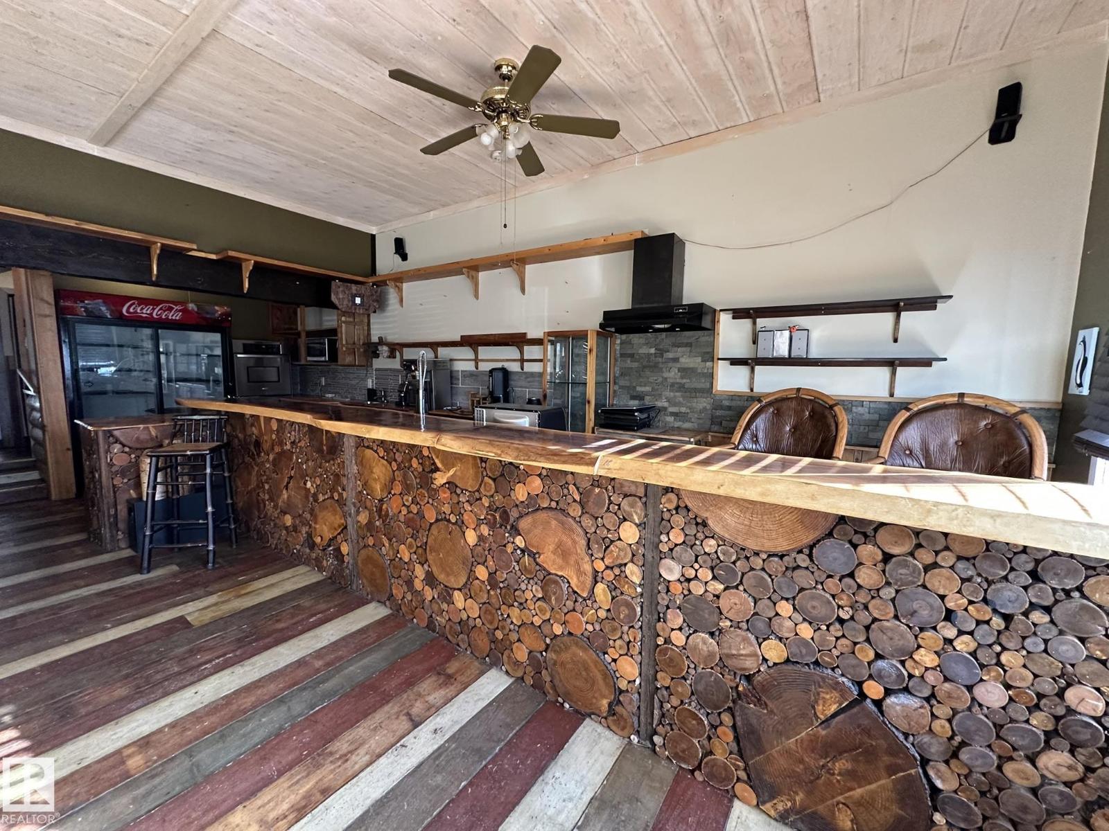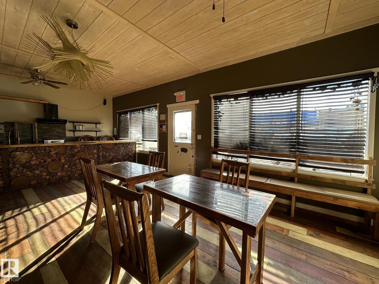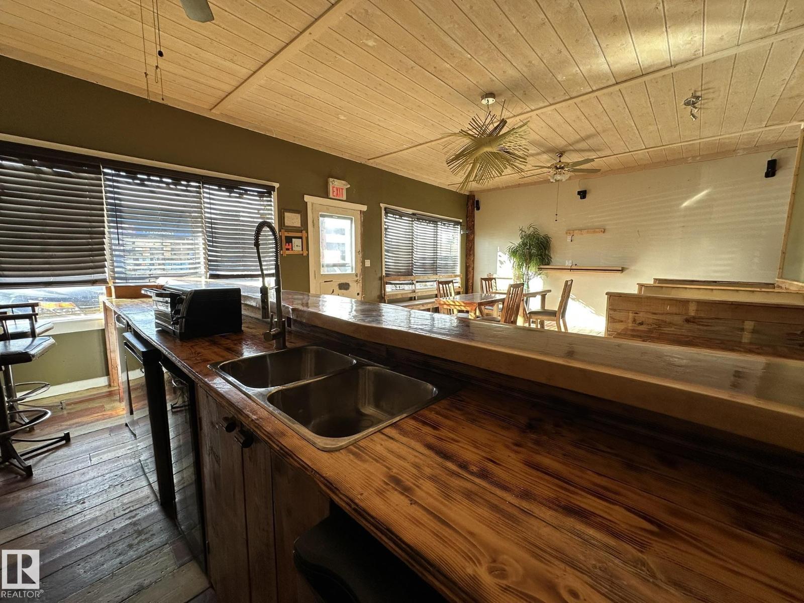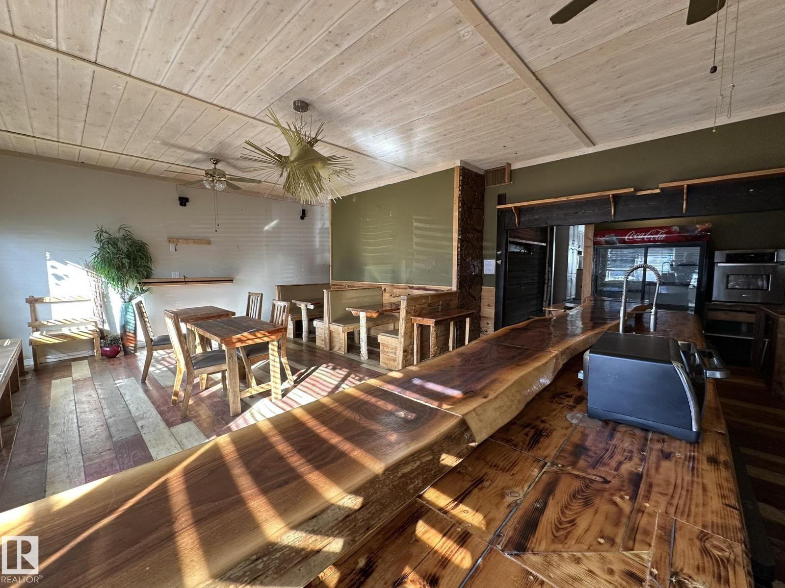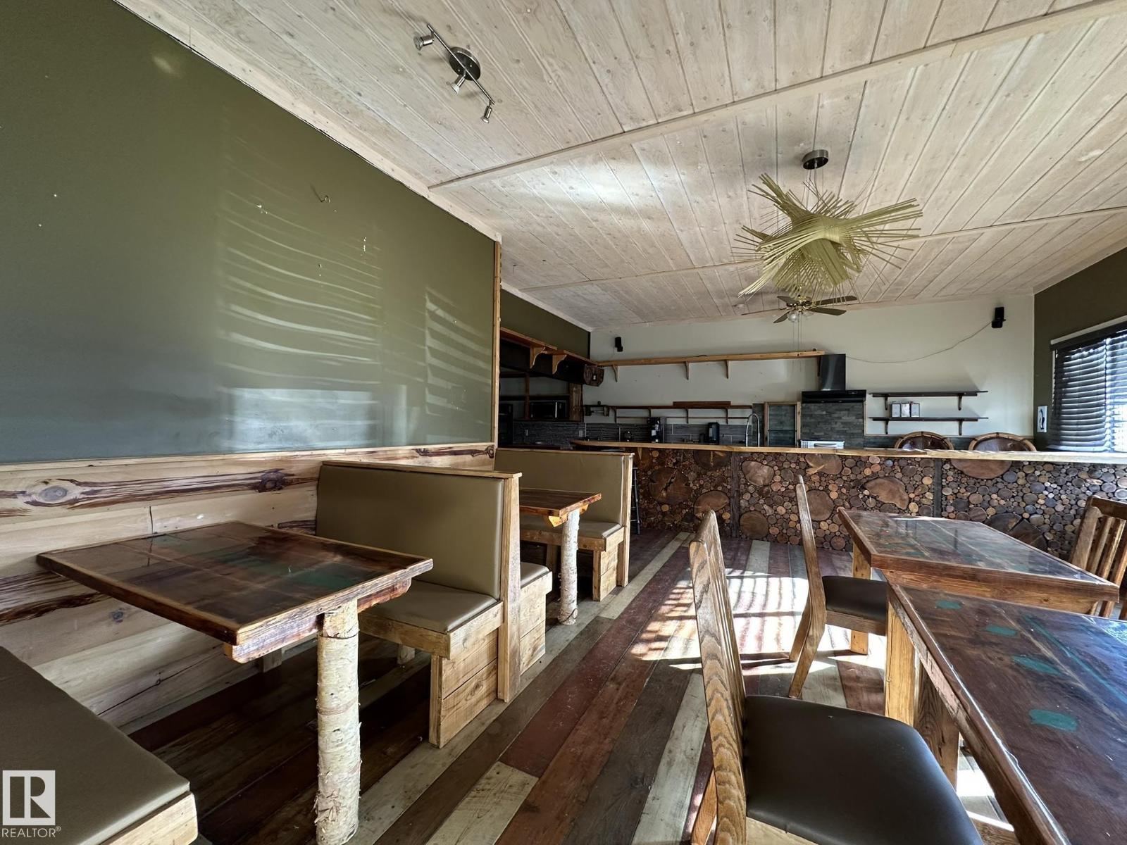 Here is your chance to live your dream.. Perfect property for a small business such as a cafe, resto, bring your ideas. And live right behind your workplace in a nicely appointed 2 + 1 bedroom smack in the middle of downtown Smoky Lake. The front of the property boats a wide-open concept with bar and lots of seating, you'll love how cozy and warm the room is, a cute bathroom is there for your potential customers. The owner's quarters offers a functional kitchen, a large living room with patio door to the rear covered porch, backyard and single garage. 2 good size bedrooms and full bath complete this floor. Downstair you'll find another bedroom, tons of storage space, laundry and utilities. Best location in town, busiest street, located between well-established businesses. You won't find a better opportunity. (id:63190)
