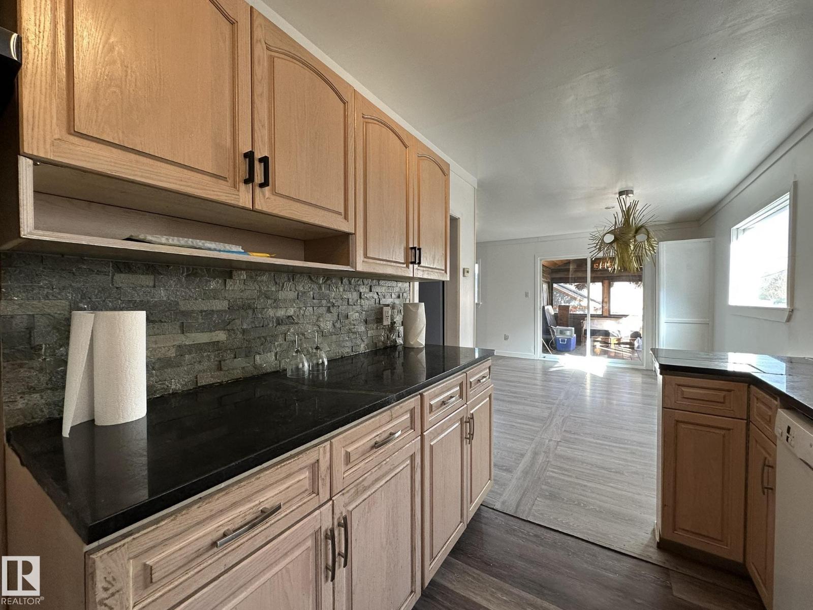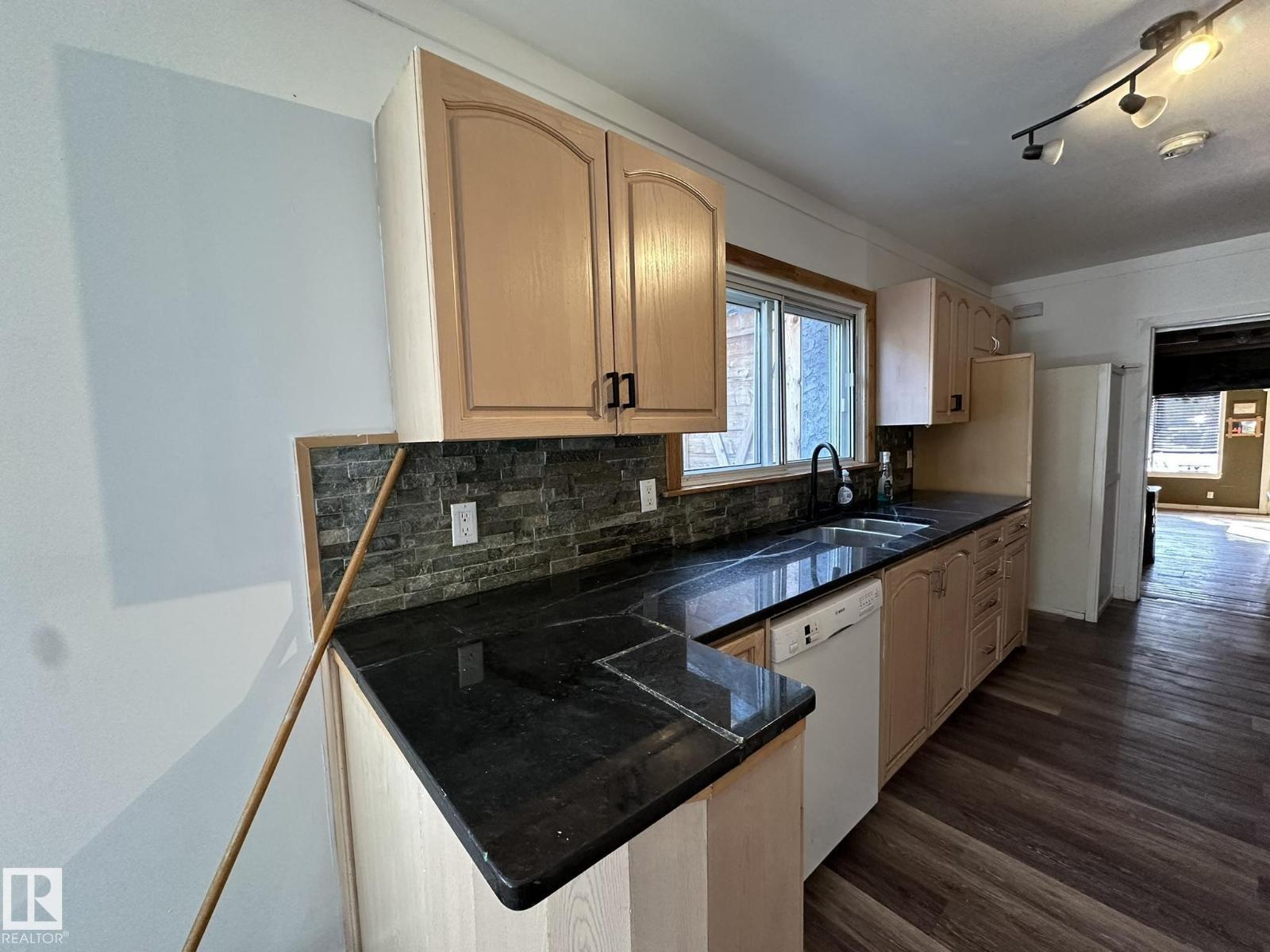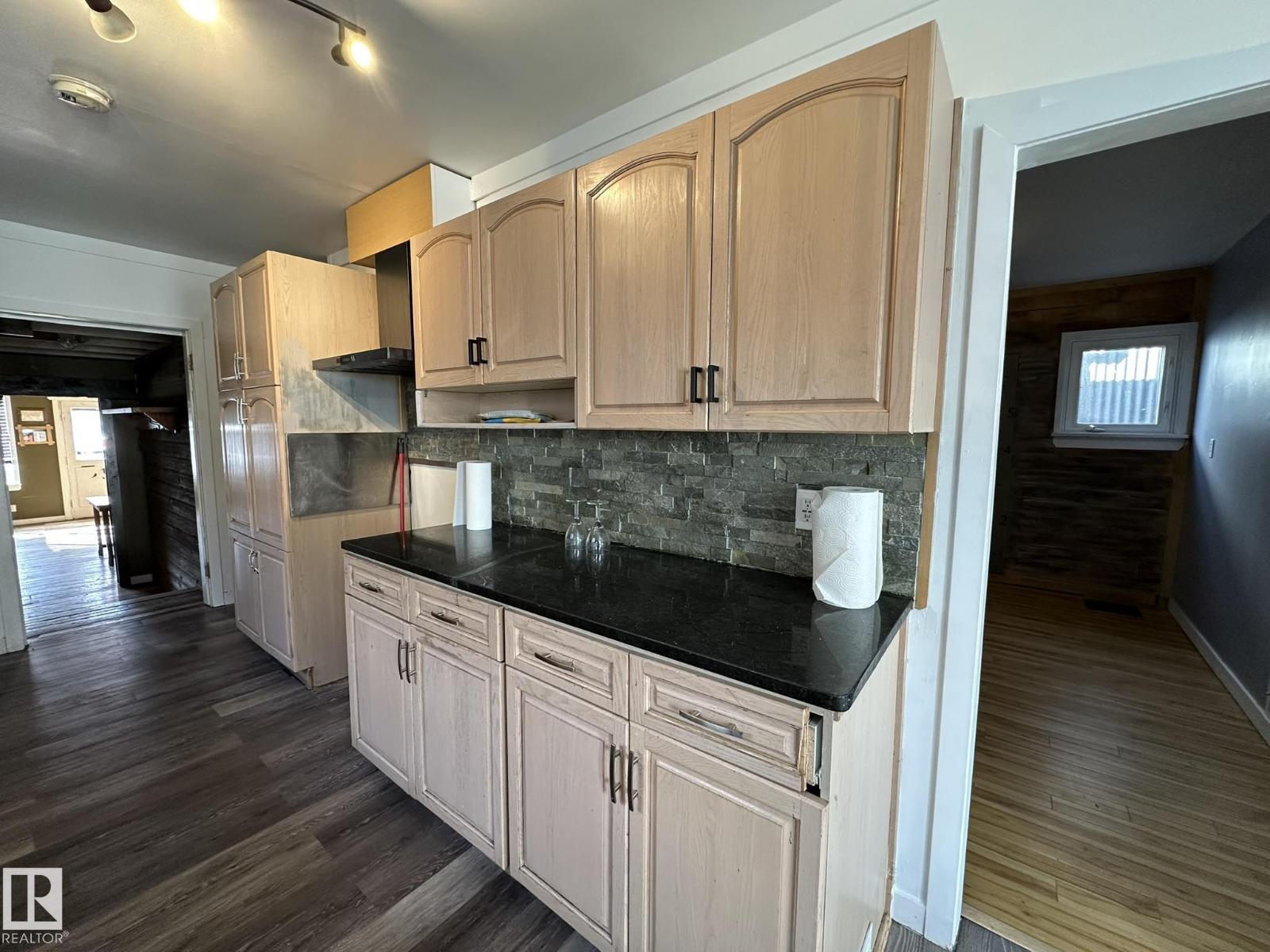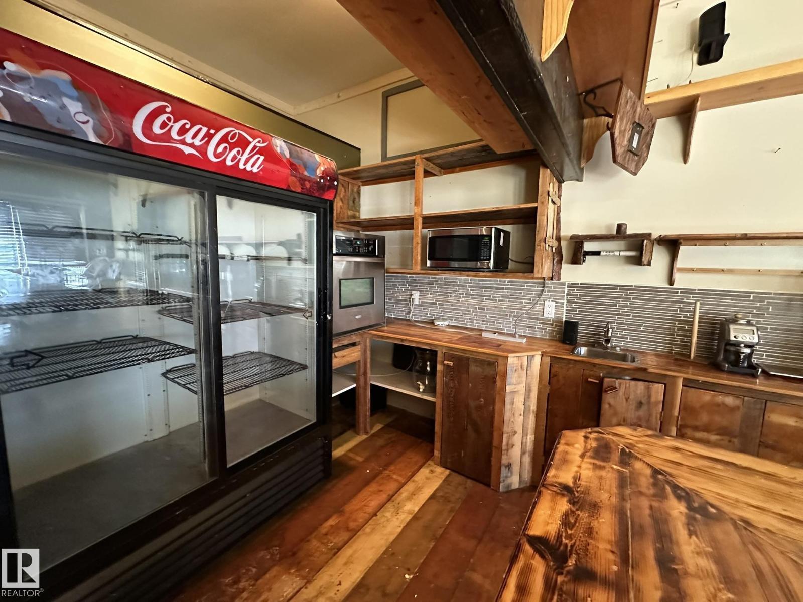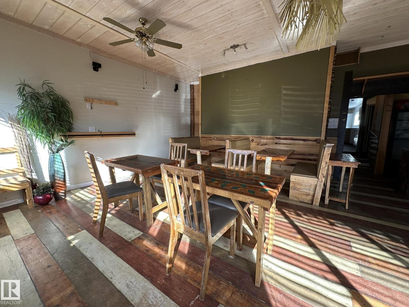 Here is your chance to live your dream.. Perfect property for a small business such as a cafe, resto, bring your ideas. And live right behind your workplace in a nicely appointed 2 + 1 bedroom smack in the middle of downtown Smoky Lake. The front of the property boats a wide-open concept with bar and lots of seating, you'll love how cozy and warm the room is, a cute bathroom is there for your potential customers. The owner's quarters offers a functional kitchen, a large living room with patio door to the rear covered porch, backyard and single garage. 2 good size bedrooms and full bath complete this floor. Downstair you'll find another bedroom, tons of storage space, laundry and utilities. Best location in town, busiest street, located between well-established businesses. You won't find a better opportunity. (id:63190)