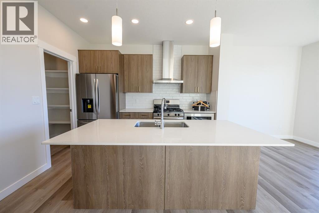 Front Drive 190 Craftsman Elevation New Construction Home | 2 Storey | 1596sq.ft. | 3-Bedrooms | 2.5-Bathrooms | Open Floor Plan | 9’ High Ceilings | Chef’s Kitchen | WALK-THRU Pantry | Luxury Vinyl & Tile Plank Flooring | Upper Level Laundry | Loaded with Upgrades | Attached Double Garage | Nice Lot Backing onto Easement | Partially Fenced. Now let’s begin our tour and start to check the boxes on your list: main floor powder room, mudroom with bench, walk-thru pantry, stunning kitchen with great storage & shelving, open concept kitchen/dining/great room. This brand new home features quartz counters throughout, luxury vinyl plank & tiled floors, upgraded millwork, triple pane windows, floor drains in laundry area + garage, upgraded lighting/plumbing fixtures and so much more!!! Now onto the upper level: Primary suite large offers great privacy being separated from the other bedrooms by the laundry area and oversized window with great views of the backyard, four-piece ensuite with tile accented shower, dual sinks and all the style you would expect in an Anthem home, huge walk-in closet completes the package. A well-designed laundry room with a linen storage area and conveniently located near all three bedrooms. Bedrooms 2 + 3 offer large window for natural light. The adjoining 4pc. bathroom with bathtub is easily accessible. Kitchen appliancepackage included, 1yr. Builder Warranty + 10 yr. Traveler’s Home Warranty Program. Builder willing to provide pricing on extras such as deck, fencing, heated garage, basement development, A/C, Fireplace. Anthem doesn’t just build homes, they create communities. With over 30 years of experience Anthem is proud to be able to build homes designed for you. Similar Model Home available on 128 Avenure as well. Call a Realtor today to obtain further information on these great properties!! Photos are from another home, same floorplan, specs & finishes may vary. (id:63190)