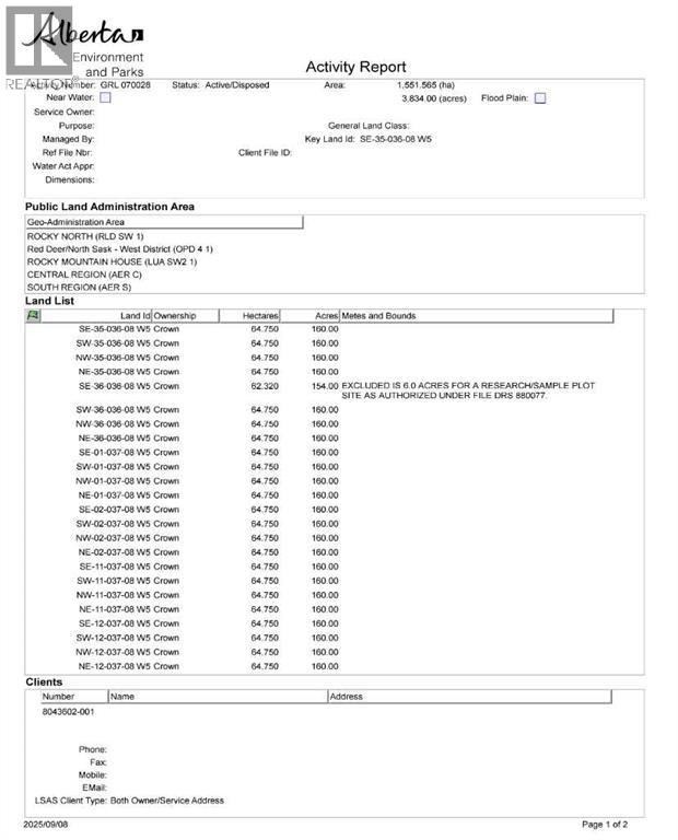A rare opportunity to secure a contiguous 3,834-acre Crown grazing lease located northwest of Caroline and southwest of Cow Lake in the foothills of West Central Alberta. This expansive tract of land is fully fenced and cross-fenced, offering exceptional grazing management and livestock control across rolling terrain with a blend of clear pasture and native grass.The lease includes multiple artesian wells, creek, a cattle handling pen, and several hundred acres of cleared grazing ground, providing reliable water and strong productivity. With current approved capacity for approximately 500 AUM, there is potential to expand carrying capacity through application.Surface revenue is generated from existing powerline, gas, and oil infrastructure, adding steady supplementary income to the operation. The property features river frontage and access, offering both practical and natural appeal.This lease presents an excellent long-term agricultural investment in one of Alberta’s most desirable ranching regions — well-maintained, self-contained, and suited for serious cattle producers seeking scale, water security, and operational continuity in a single block of connected land. LAND INCLUDED AS FOLLOWS W5 35-36-08 NE,NW,SE,SW / W5 36-36-8 SE,SW,NE,NW / W5 01-37-08 NE,NW,SE,SW/ W5 02-37-08 SE,SW,NE,NW / W5 11-37-08 SE,SW,NW,NE / W5 12-37-08 SE, SW,NE,NW LEASE SALE SUBJECT TO PROVINCAL APPLICATION AND APPROVAL. LEASE RE-NEWED SEPT. 25, 2025 AND GOOD FOR 10 YEARS WITH OPTION FOR CONTINUED RENEWAL (id:63190)
