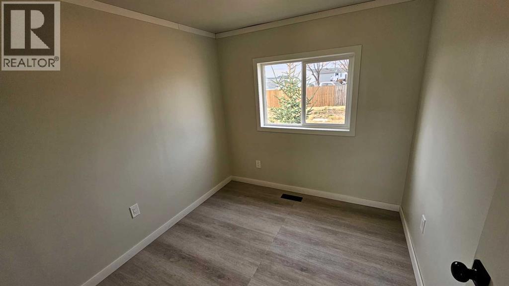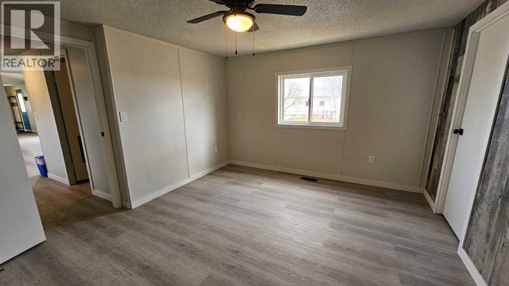 Totally renovated 1994, 16x74 mobile, with three bedrooms and two bathrooms, sitting on its own(no fees) lot in Coronation has the following- new vinyl plank glue down flooring, new asphalt singled roof, new siding, some new windows, new hot water tank, new water lines, insulated and painted skirting, new eaves troughs, leveling of the home, and heat trace on the water lines below. The furnace has been fixed and is operating as normal. This home comes fully painted, with some new fixtures in the bathrooms, new gorgeous glass shower doors in the main bathroom, the 4 piece en suite all done up, painted cupboards, new range hood, , new sink and near new fridge and stove. The walls are accented with wood style paneling, giving it a very stylish look. The light fixtures throughout the home have also been upgraded to modern style ones. There is outside parking off the street with empty lots beside you. With a ton of work put into this one, there is only the thought of how long it will take you to pack you bags and enjoy the renovated home. Early possession for the approved buyer is available. Mobile is professionally tied down. (id:63190)