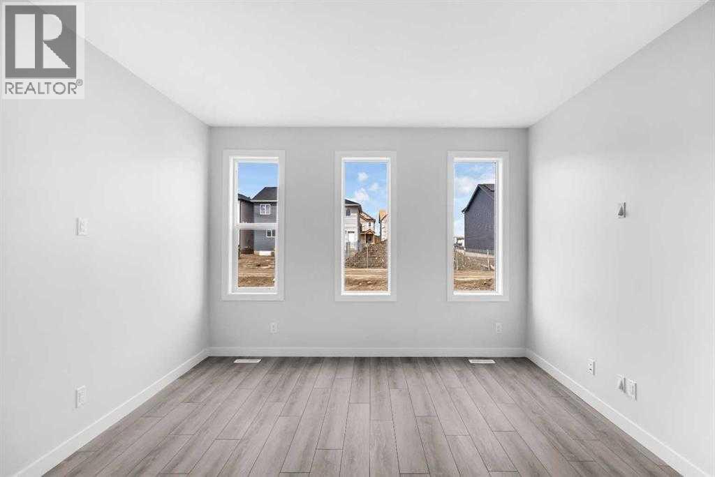 OPEN HOUSE SATURDAY NOVEMBER 1st 1:00 - 3:00 PM. Welcome to this impressive, newly built home located in the sought after NW community of Ambleton. Thoughtfully crafted with modern finishes and a functional layout, this home offers exceptional comfort and style. Step inside to find luxury vinyl plank flooring extending throughout the main floor, leading you into a bright and open layout that includes a spacious living room, dining area, modern kitchen, and a flex room—perfect for a home office, playroom, or den. The kitchen is a chef’s dream, showcasing quartz countertops, stainless steel appliances, a gas stove, full ceiling-height cabinets with elegant crown molding, and a glass-door pantry for added storage. Upstairs, soft plush carpets and large windows throughout bring comfort and natural light into all three generously sized bedrooms. The primary bedroom is impressively sized, easily fitting a king-size bed with nightstands and dressers, and features a walk-in closet with a window and a large ensuite. The upper level also includes a shared 4-piece bathroom and a separate laundry room. The unfinished basement offers high ceilings, rough-ins, and a separate side entrance, providing endless opportunities for future development, including a potential legal suite (subject to city approval and permitting). Out back, you'll find a double parking pad, ready for your future double detached garage. This home is ideally located within walking distance of a playground and just minutes to local schools, transit, and top shopping destinations such as Carrington Plaza and Creekside Shopping Centre, Walmart, Beacon Hill Costco, and T&T Supermarket. Plus, with easy access to Stoney Trail and Deerfoot Trail, commuting around the city is a breeze. This is your chance to own a stylish, move-in-ready home in one of Calgary’s most exciting new communities. Schedule your private showing today! (id:63190)