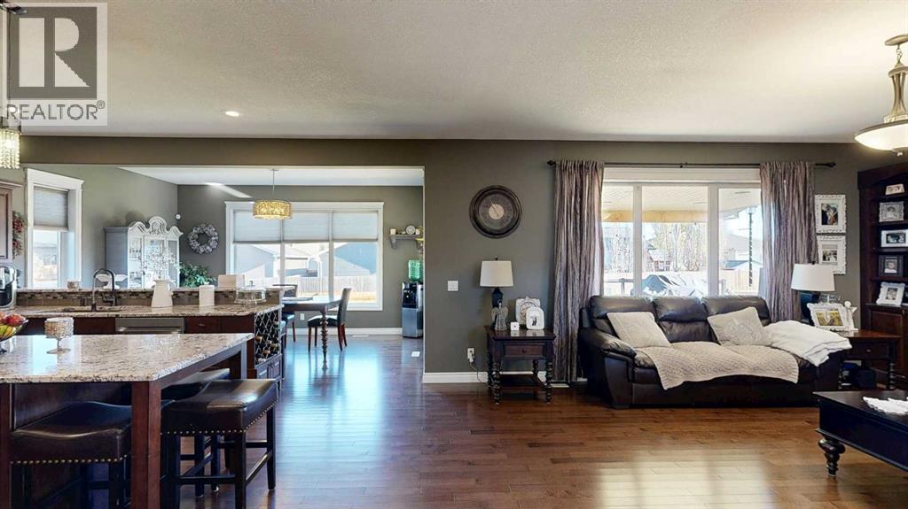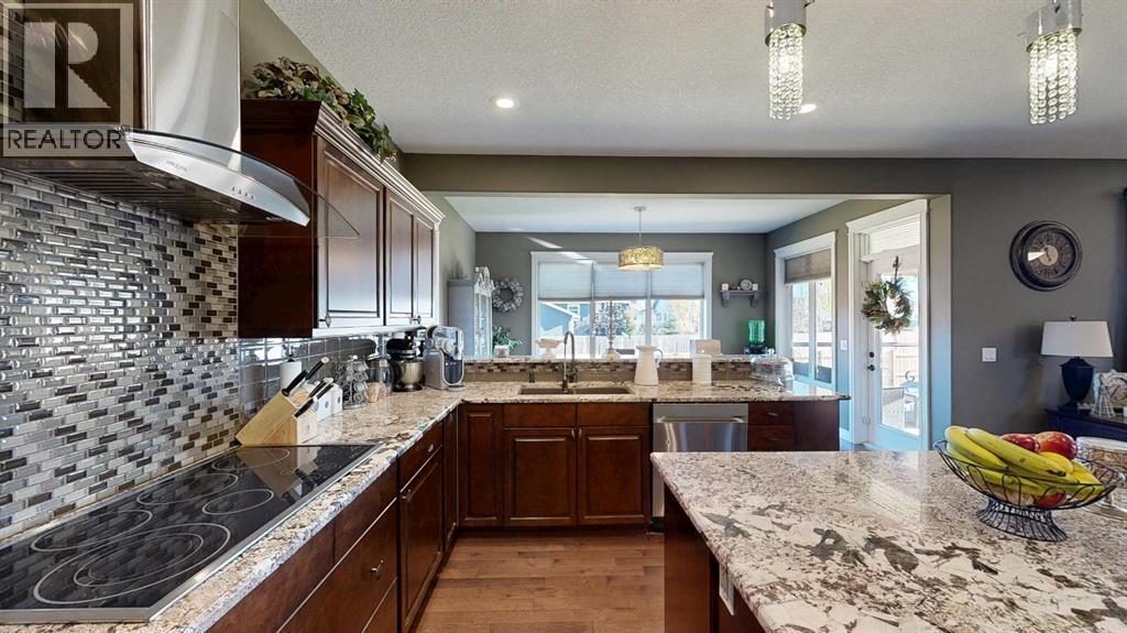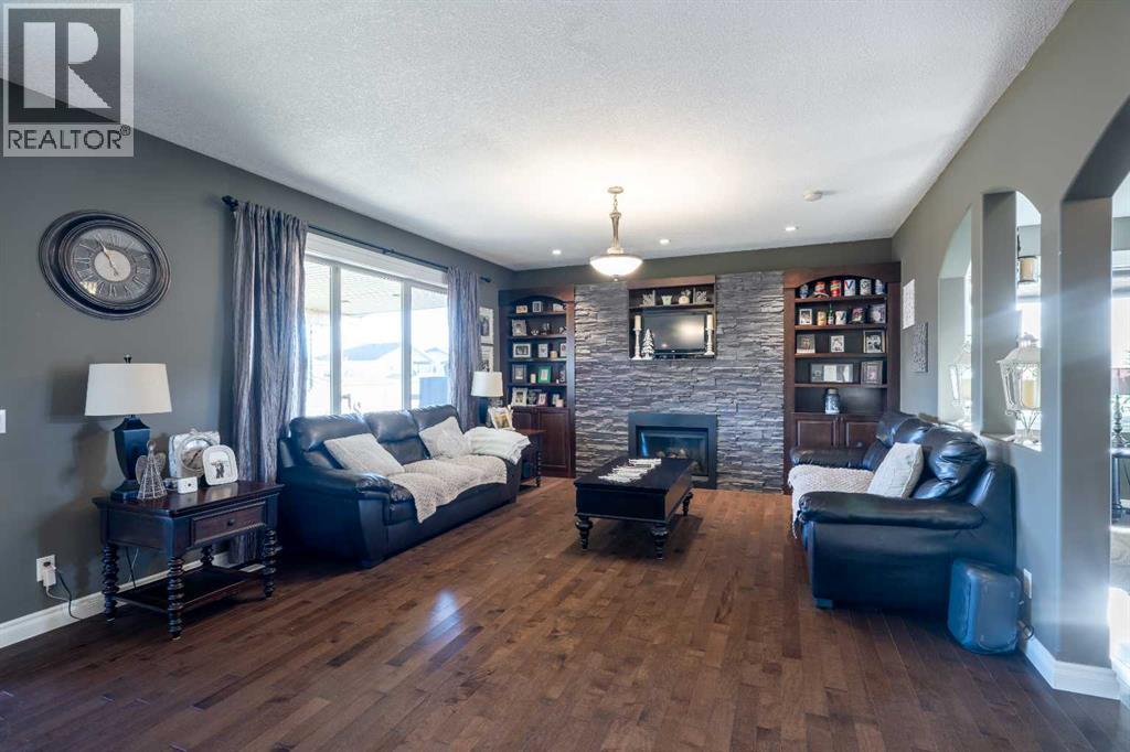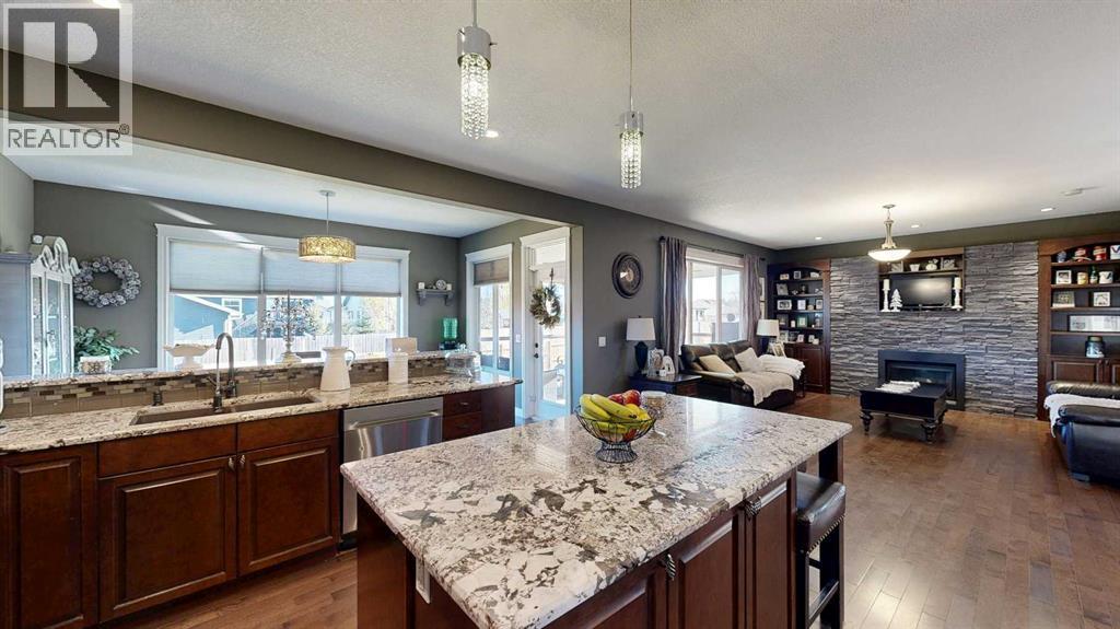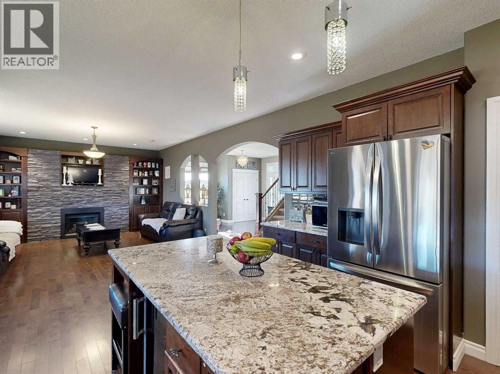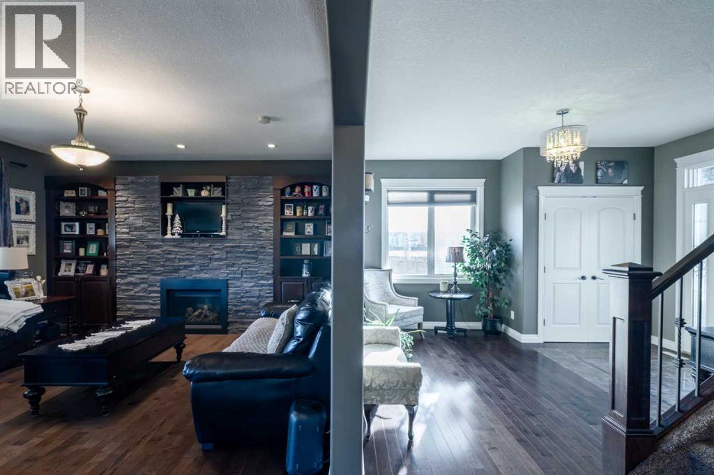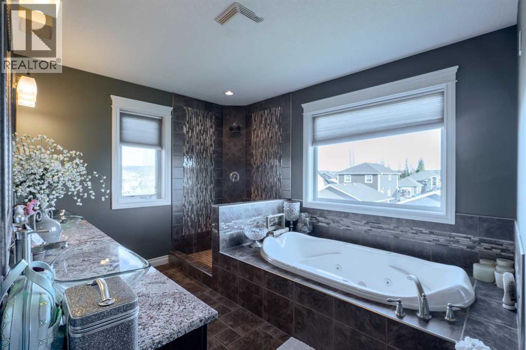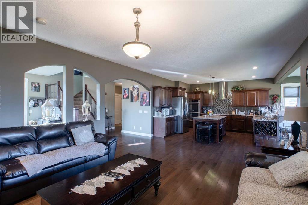 Luxury, Comfort, and Style—All in One Exceptional Home!This stunning 5-bedroom, 4-bathroom home offers over 2,500 sq. ft. of beautifully designed living space plus a fully finished 1,165 sq. ft. basement, combining elegance with everyday functionality.Step inside to a grand foyer that sets the tone for the quality and craftsmanship throughout. The open-concept main floor features a gorgeous kitchen complete with a double wall oven, custom walk-in pantry with built-in organizers, large island, and abundant counter space—perfect for entertaining and family gatherings.Off the garage, a spacious mudroom with a 2-piece bath provides a convenient and practical secondary entry.Upstairs, a bright and airy bonus room offers extra living space, along with the laundry room for added convenience. The primary suite is a true retreat, showcasing a spa-like ensuite and a massive walk-in closet with custom organization.The fully developed basement is designed for relaxation and entertainment, featuring in-floor heating, a large rec room, and a wet bar—the perfect space for movie nights or hosting friends.Additional highlights include central air conditioning, high-end finishes throughout, and thoughtful design at every turn.Located in a sought-after neighbourhood, this property backs onto a paved walking trail that leads to a large park and playground, and is close to schools, shopping, and all amenities.This home truly has it all—luxury, comfort, and an unbeatable location. (id:63190)