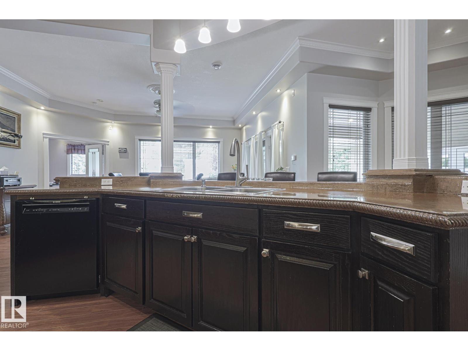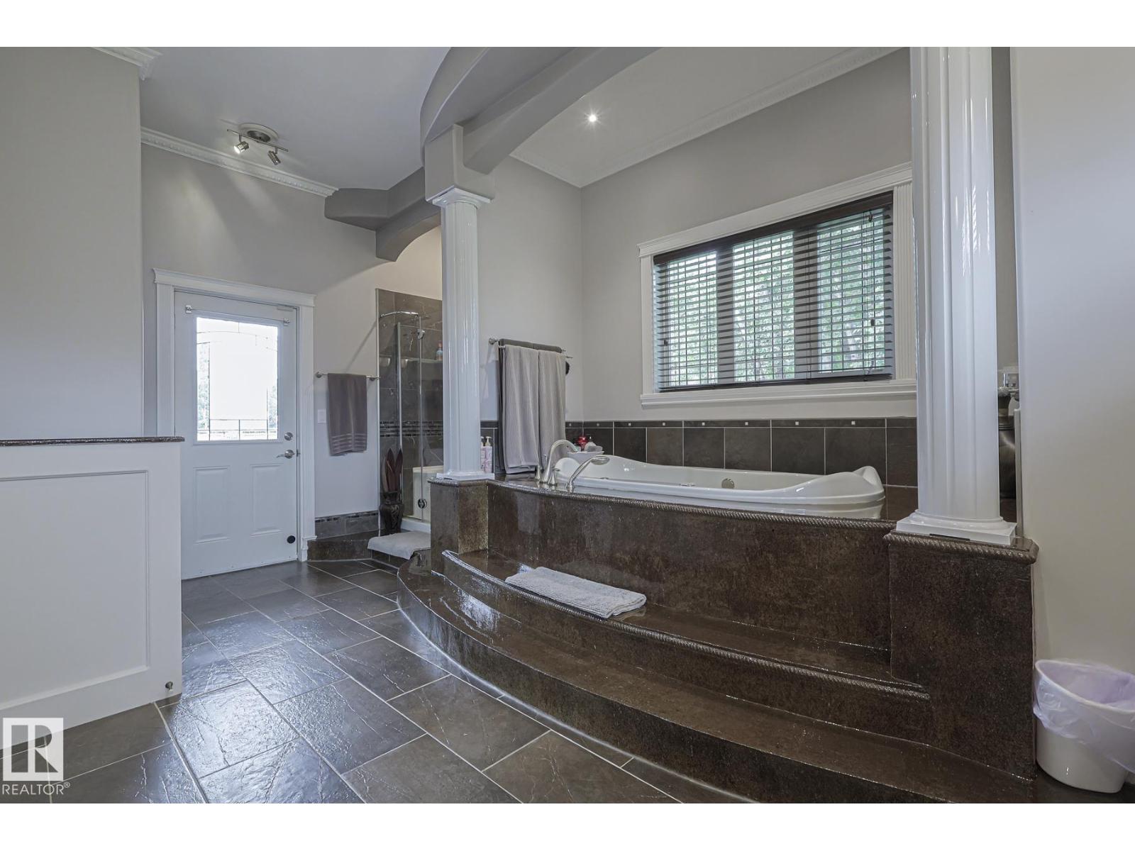 WOW. 40 minutes Due West of Spruce Grove lies this HIDDEN GEM. Take a look at this CUSTOM 2006 BUILT 3400+ sq ft Bungalow ALL ON ONE LEVEL on 0.75 of an acre! 5 Beds, 3.5 baths, FULL HEATED FLOORS, unreal patio/entertaining area, sound system, powered outdoor shed w concrete pad, 2nd large custom shed, zipline + so much more! WHEELCHAIR ACCESSIBLE bedroom and bathroom! Every square inch thoughtfully designed and executed to perfection! Main entrance is GRANDE with high recessed ceilings, crown molding to the moon, pot lights, two way fireplace into the primary, MASSIVE dining room and office! Beautiful Primary room that opens to the patio and a SPECTACULAR ENSUITE. Custom granicrete counters, luxury jetted air tub, glass shower, his/her sinks, heated floors. Kitchen is the ENTERTAINERS DREAM. Custom oak cabinets, granicrete, wall oven, countertop stove, timeless style! 3 more beds in the west wing. One has an ensuite, and the other two have a jack and jill bathroom. BIG Laundrym Double garage, SO MUCH! (id:63190)