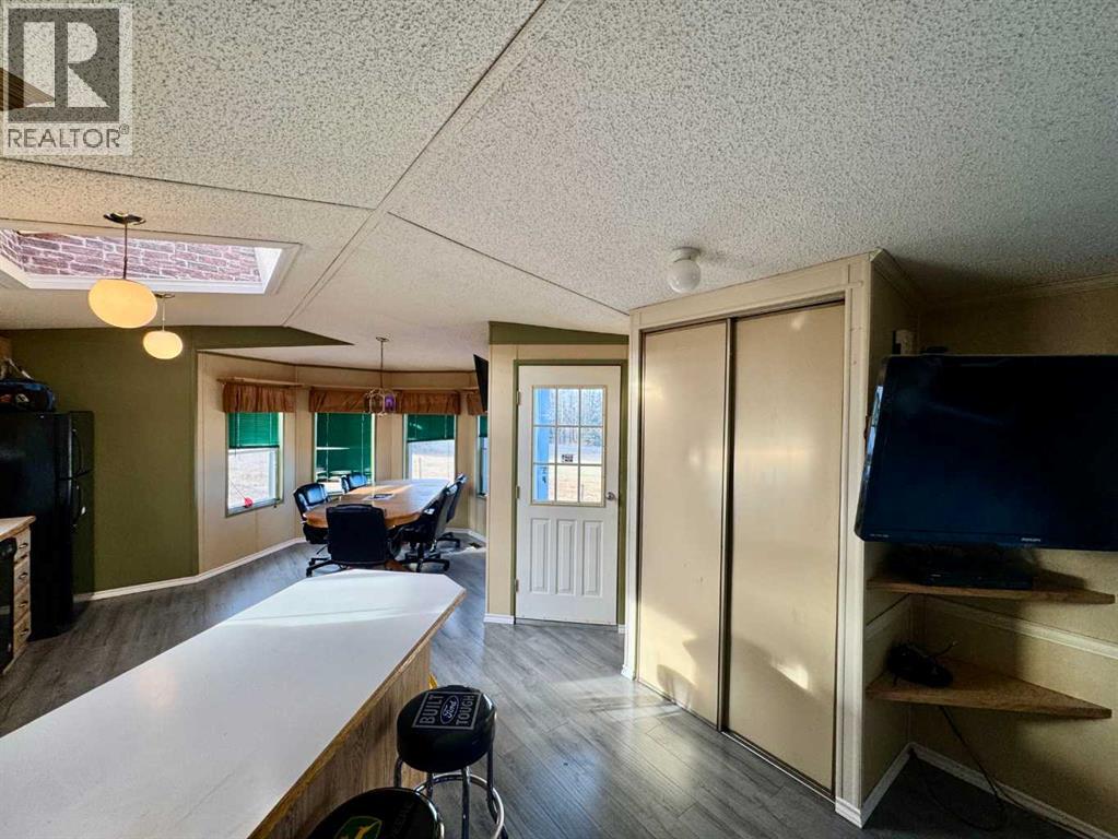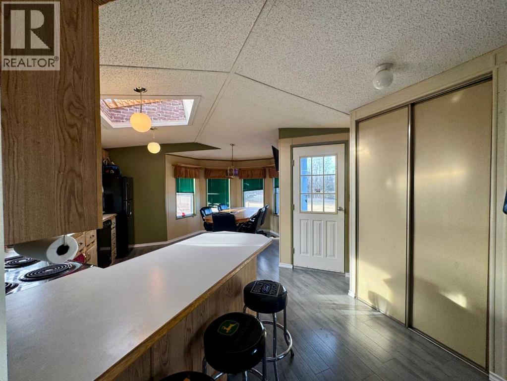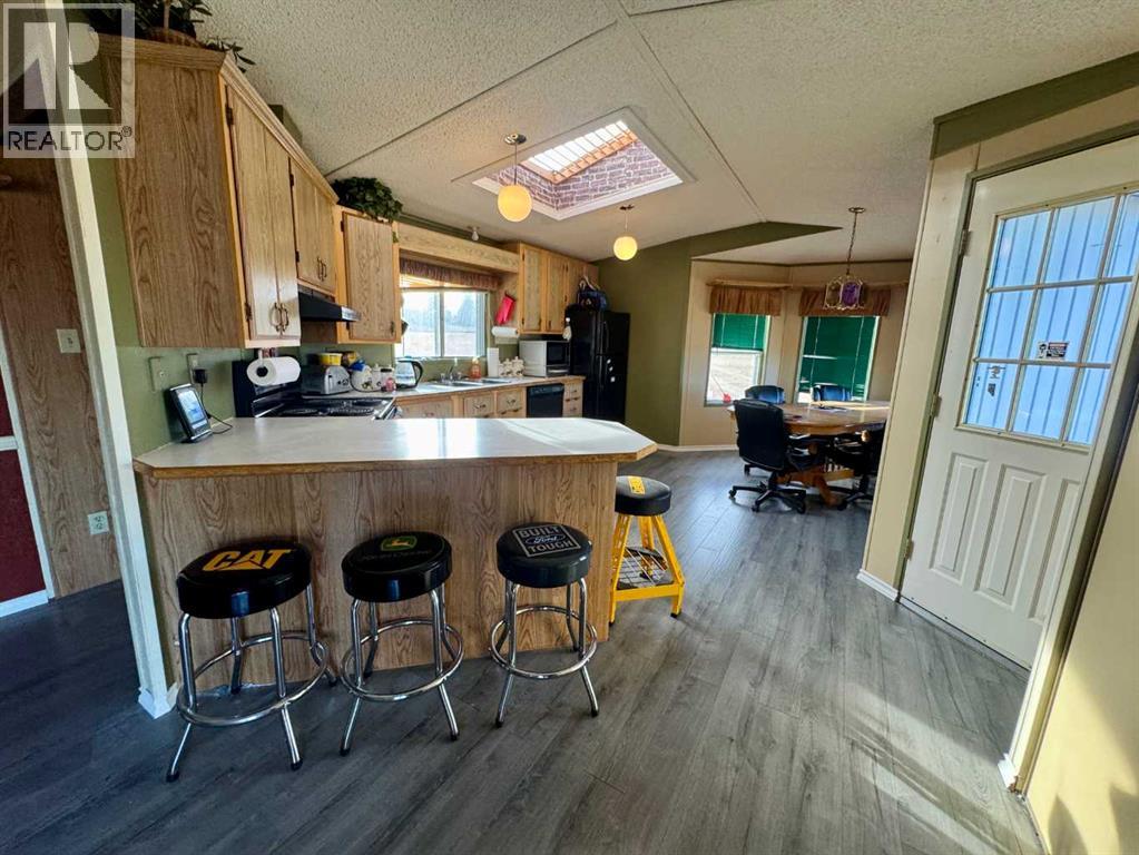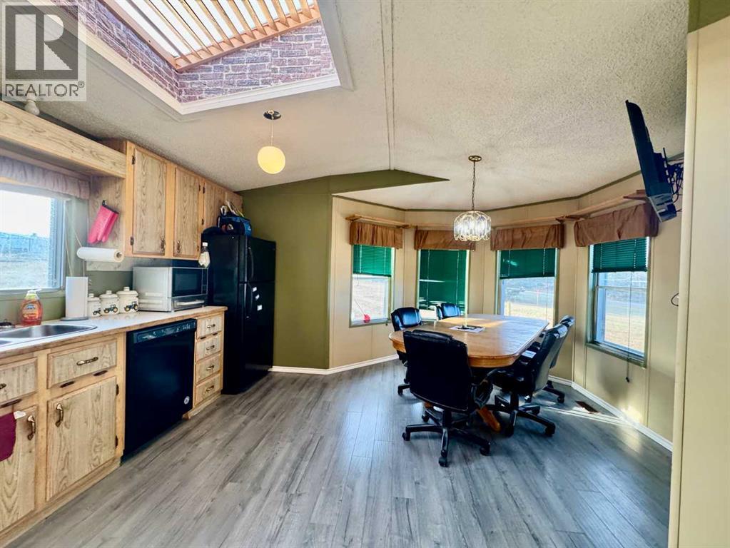 Affordable acreage on the outskirts of Leslieville - 1.49 acres with a custom designed mobile home. The home features a nice and open lay out with a large kitchen and a big bay window for extra dining space plus lots of cupboard and counter room. The two smaller bedrooms are of equal size and there's a full bathroom as well as an oversized ensuite in the master bedroom. The 8 x 10' addition offers lots of extra storage space and there are 3 storage sheds that are included as well. Bonus of central air, and the furnace is approximately 10 years old. (id:63190)