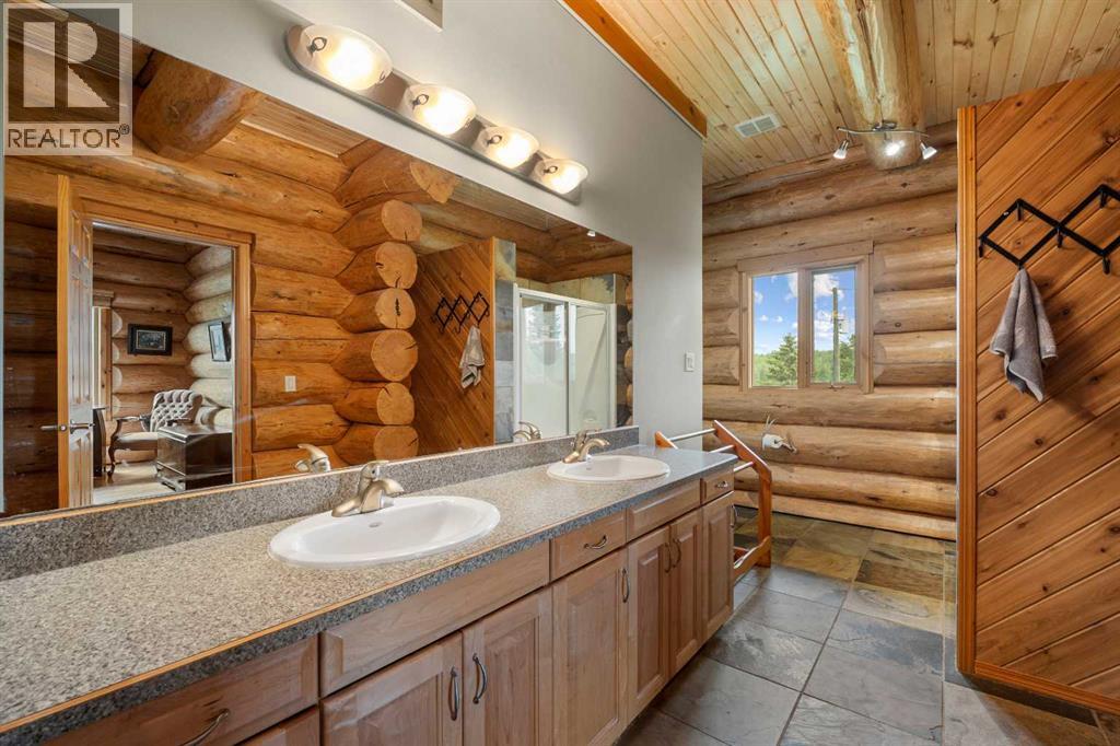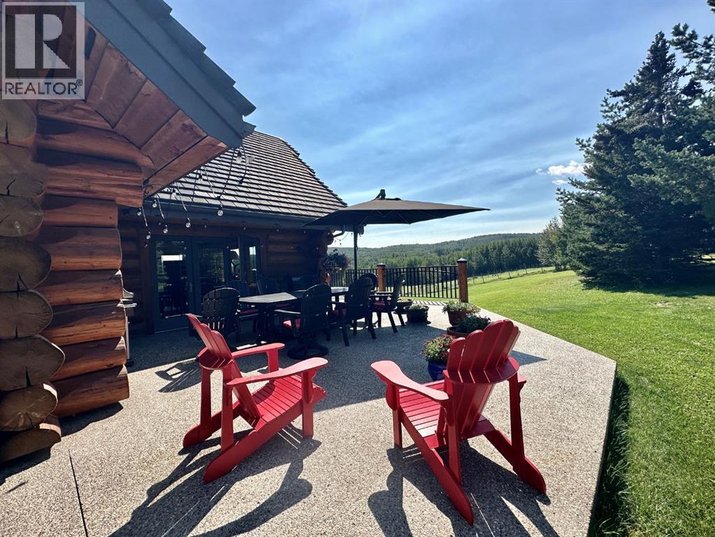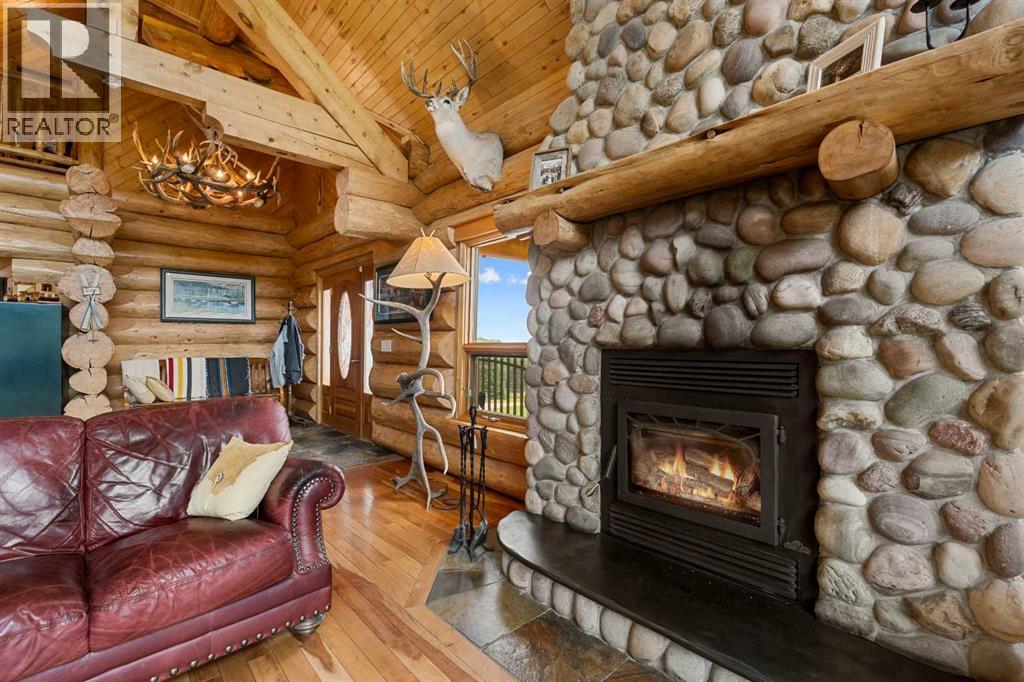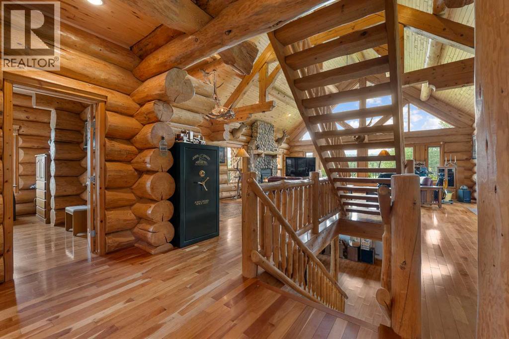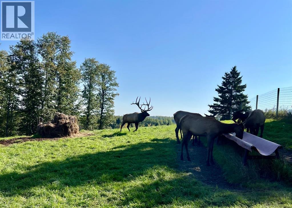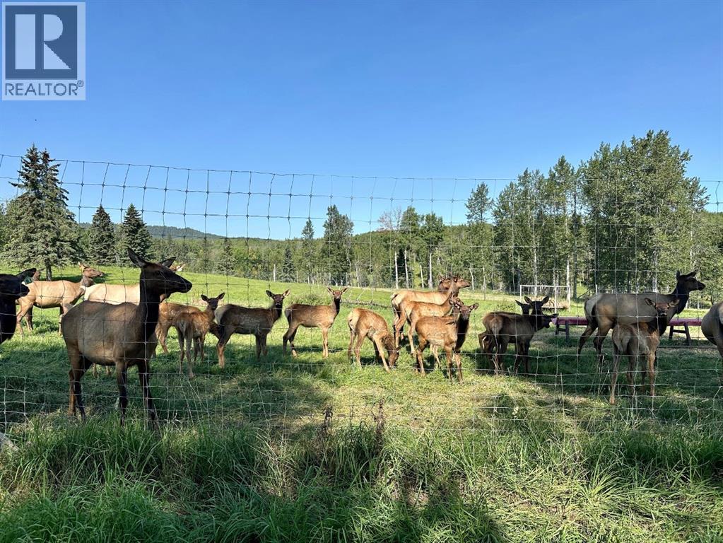 An extraordinary opportunity to acquire a spectacular 158-acre ranch in the heart of Alberta's best wilderness. This rare offering features a custom-built, full-log luxury home and direct border access to thousands of acres of government Crown Land—perfect for the serious rancher, hunter, or recreational enthusiast.The ranch is currently home to a successful, world-class Elk operation. Pasture, fence, barn, and watering bowls in operation. These could also be converted for horses, cows, and other large livestock. The Main Home is a Masterpiece: a truly stunning full-log residence built with massive logs and featuring high, vaulted ceilings. Located high on the quarter section, providing maximum privacy and panoramic views. Spacious entertaining kitchen with an enormous island, walk-in pantry, and built-in, high-end appliances. Grand Great Room and dining area designed to host large gatherings. Main floor luxury Master suite with a heated-floor ensuite. Unique design with two central half-log staircases leading to three levels of living space. Heated double-car garage and a secure, paved asphalt driveway with Texas Gate entrance.Farm Infrastructure: In addition to the main residence, the property includes a second dwelling, a barn, a garden, and essential outbuildings, providing excellent operational support for an established ranching lifestyle. (id:63190)