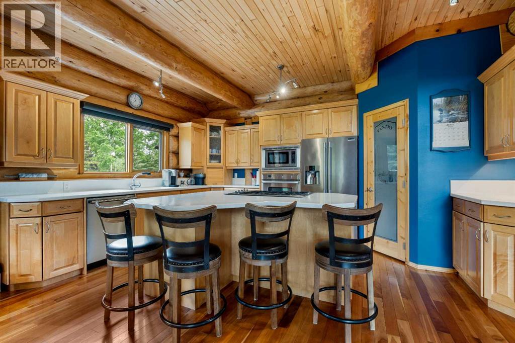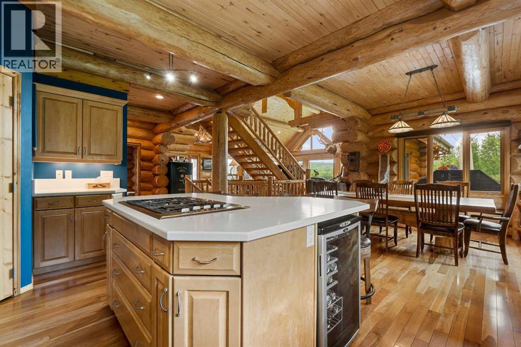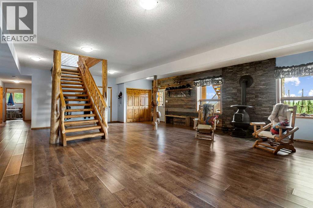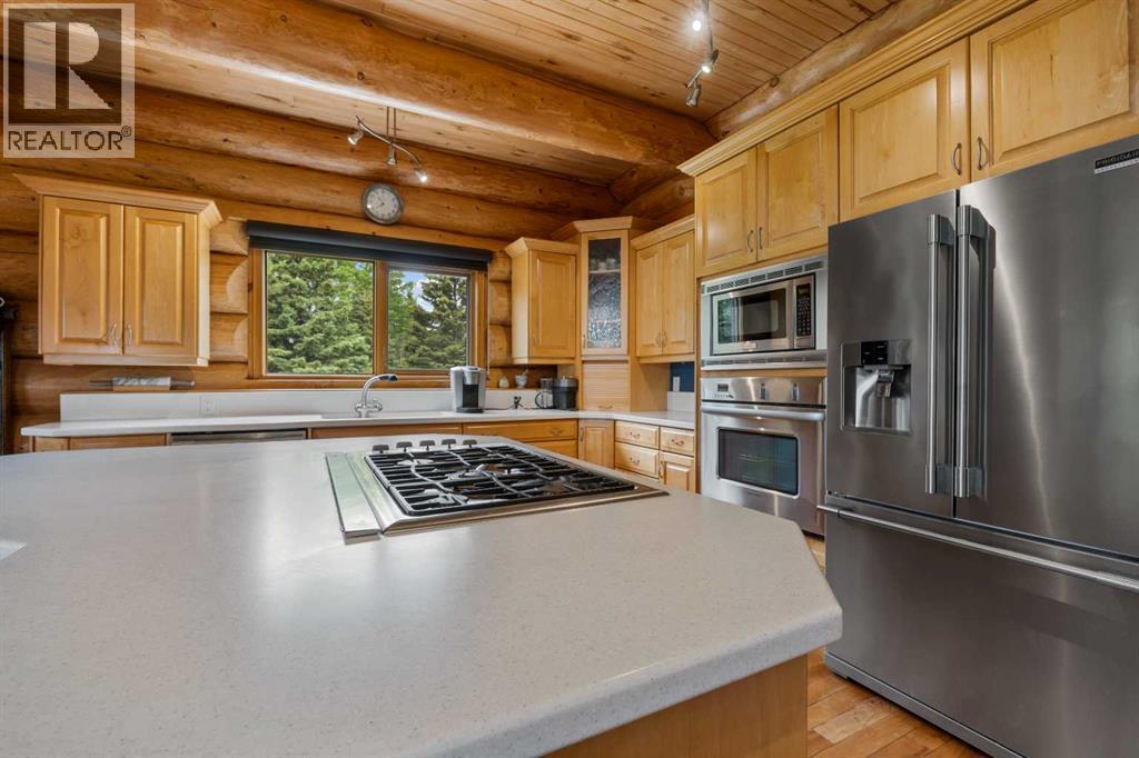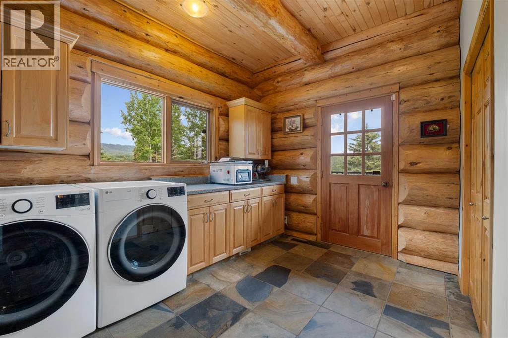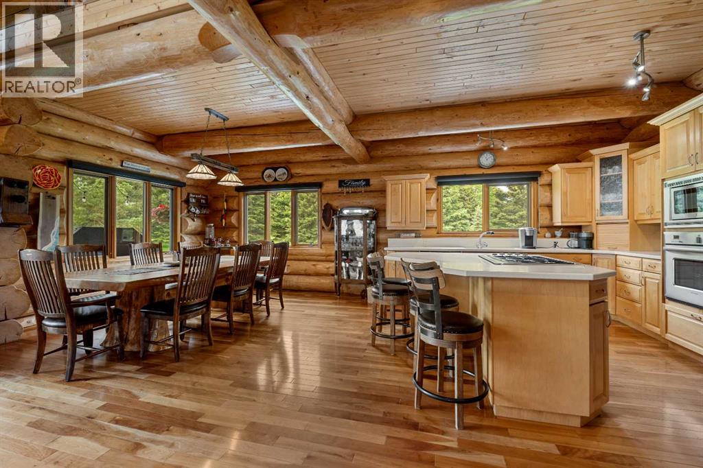 An extraordinary opportunity to acquire a spectacular 158-acre ranch in the heart of Alberta's best wilderness. This rare offering features a custom-built, full-log luxury home and direct border access to thousands of acres of government Crown Land—perfect for the serious rancher, hunter, or recreational enthusiast.The ranch is currently home to a successful, world-class Elk operation. Pasture, fence, barn, and watering bowls in operation. These could also be converted for horses, cows, and other large livestock. The Main Home is a Masterpiece: a truly stunning full-log residence built with massive logs and featuring high, vaulted ceilings. Located high on the quarter section, providing maximum privacy and panoramic views. Spacious entertaining kitchen with an enormous island, walk-in pantry, and built-in, high-end appliances. Grand Great Room and dining area designed to host large gatherings. Main floor luxury Master suite with a heated-floor ensuite. Unique design with two central half-log staircases leading to three levels of living space. Heated double-car garage and a secure, paved asphalt driveway with Texas Gate entrance.Farm Infrastructure: In addition to the main residence, the property includes a second dwelling, a barn, a garden, and essential outbuildings, providing excellent operational support for an established ranching lifestyle. (id:63190)